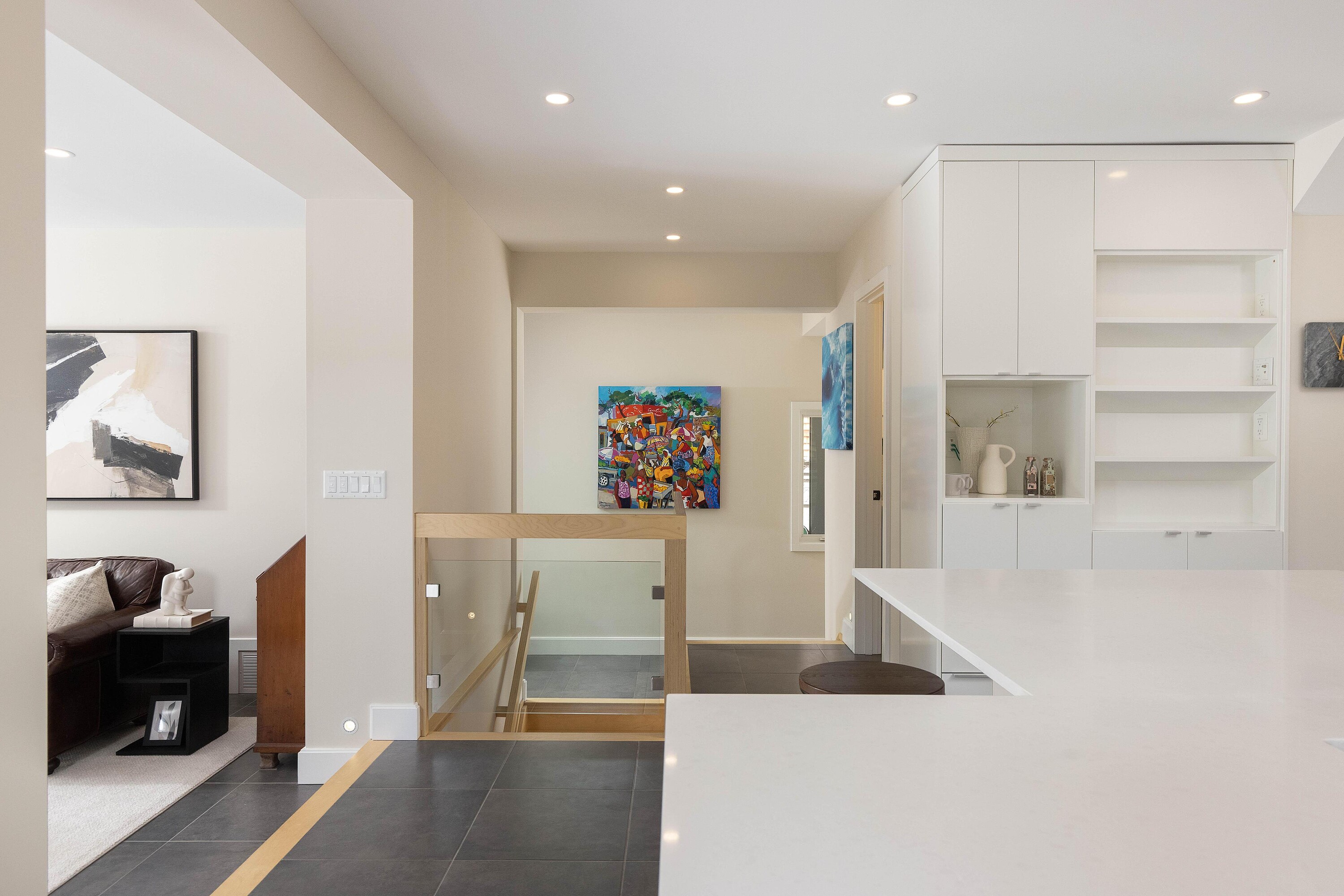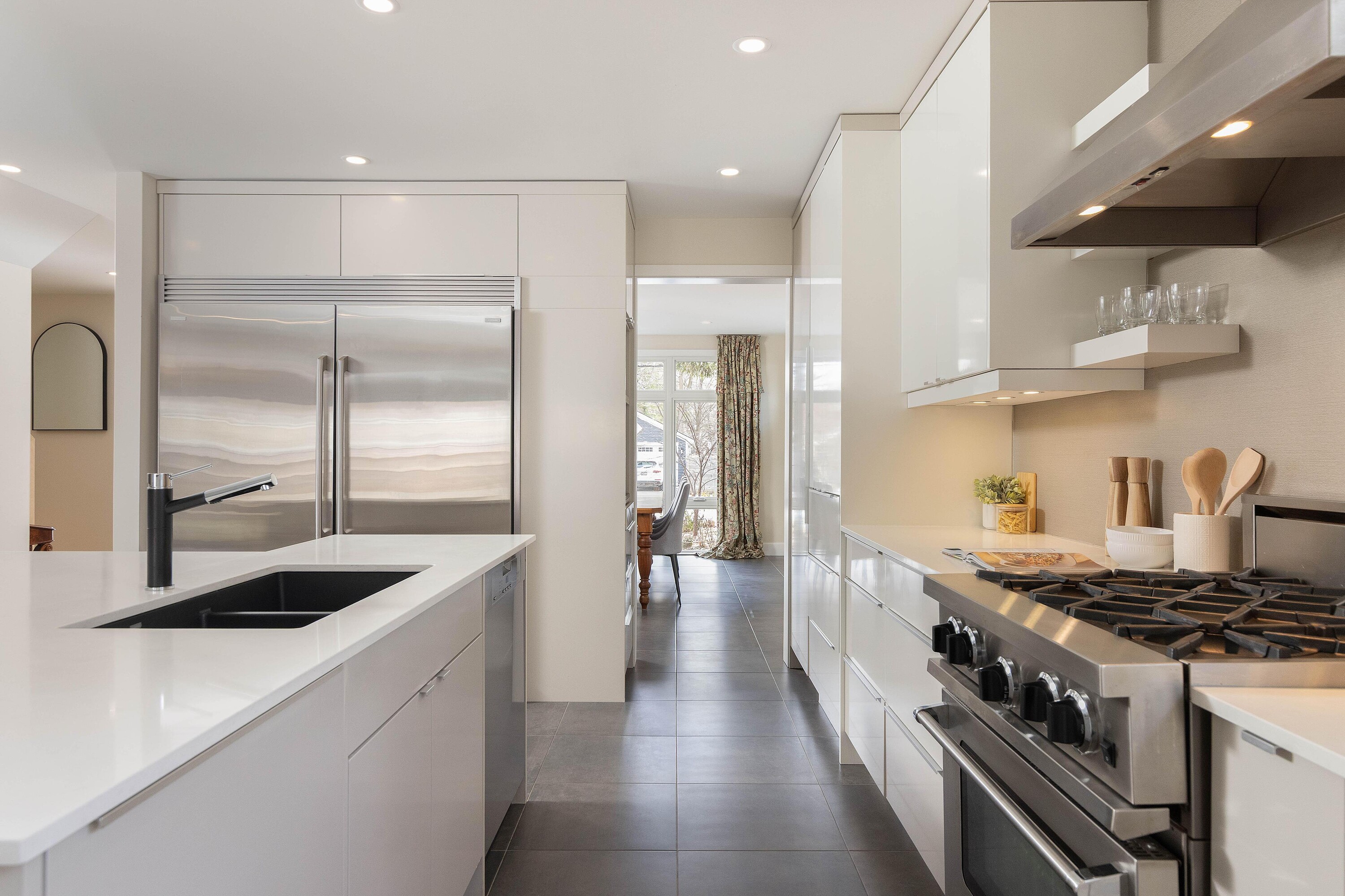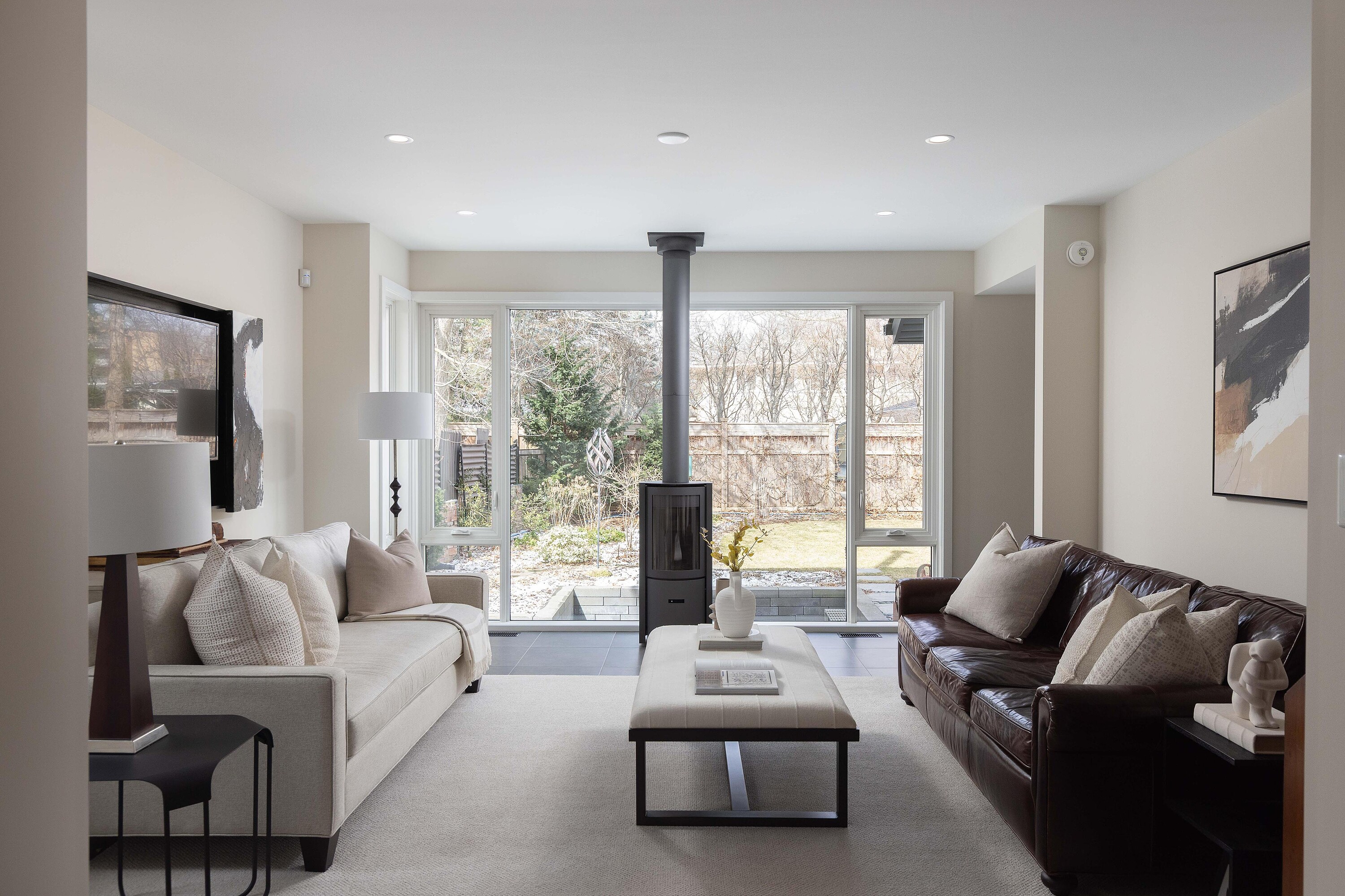 367 Spruce Street captures the charm of Old Oakville architecture while delivering the comfort and performance of modern design. Originally a classic 1920s Foursquare, the home has been comprehensively rebuilt. Reimagined by John Wilmott, most of the residence consists of new construction additions, complemented by a fully new, poured-concrete basement, allowing the home to retain its architectural character while offering clean contemporary lines and abundant natural light. The two-storey layout offers five bedrooms and four bathrooms. The main level balances warmth with refined design. The dining room is framed by a large picture window, while the kitchen features Euro-style cabinetry, quartz countertops, stainless steel appliances, and a centre island with seating and storage. Heated tile floors extend through the kitchen, living areas, and mudroom. The living room is anchored by a Jøtul wood-burning stove and expansive backyard views. A mudroom with custom cabinetry provides access from the garage, driveway, and patio. Upstairs are four bedrooms, including a bright primary suite with oversized windows, a walk-through closet, and a five-piece ensuite. Upper-level laundry adds convenience. The finished lower level introduces an industrial edge, highlighted by a poured-concrete foundation with radiant-heated polished concrete floors, exposed structural elements, and generous ceiling height. The space includes a family room with a media niche crafted from reclaimed original trusses, a gym area, fifth bedroom, three-piece bath, and storage. A heat-recovery air exchange system provides continuous fresh air, while in-floor radiant heating enhances comfort on the main level and basement. Outdoors, the private backyard offers mature landscaping, a stone patio, and fire pit seating. An extended garage, EV charger, carport, and Ecoraster recycled driveway complete this distinctive Old Oakville offering.