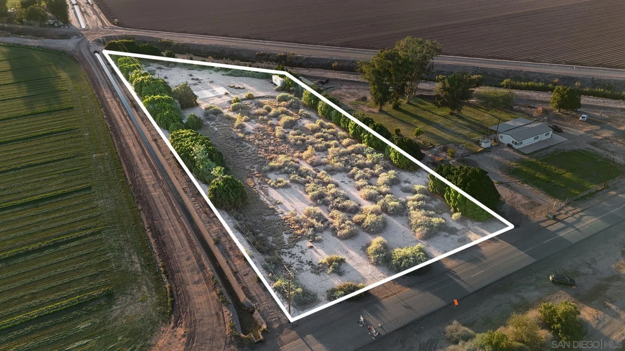 2465 Meloland Rd, El Centro - Sitting on 3.66 acres, this property offers a great opportunity with room to build, grow, and make it your own. The land features a water well with pump house, an electrical pole on site, and an existing septic system. A solid 30' x 50' concrete pad is already in place and in great condition, perfect for a shop, garage, or future build. The property has fencing on one side and is surrounded by mature trees that create a natural sense of privacy and separation. Whether you're looking to build a home with an ADU, create space for RVs, boats, trailers, or just enjoy wide-open land, this property gives you the flexibility to do it all. A great setup with endless potential to create your own private space.