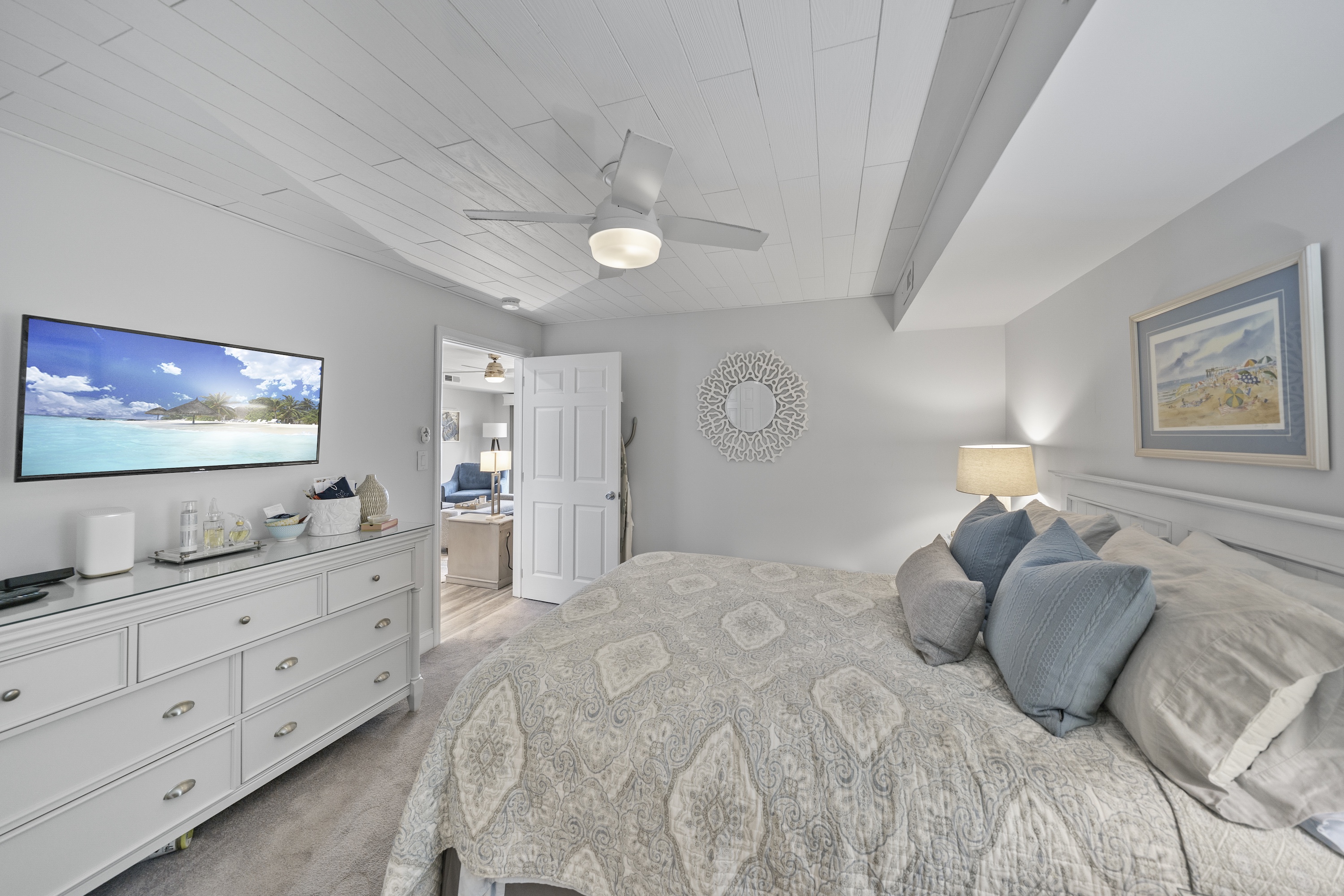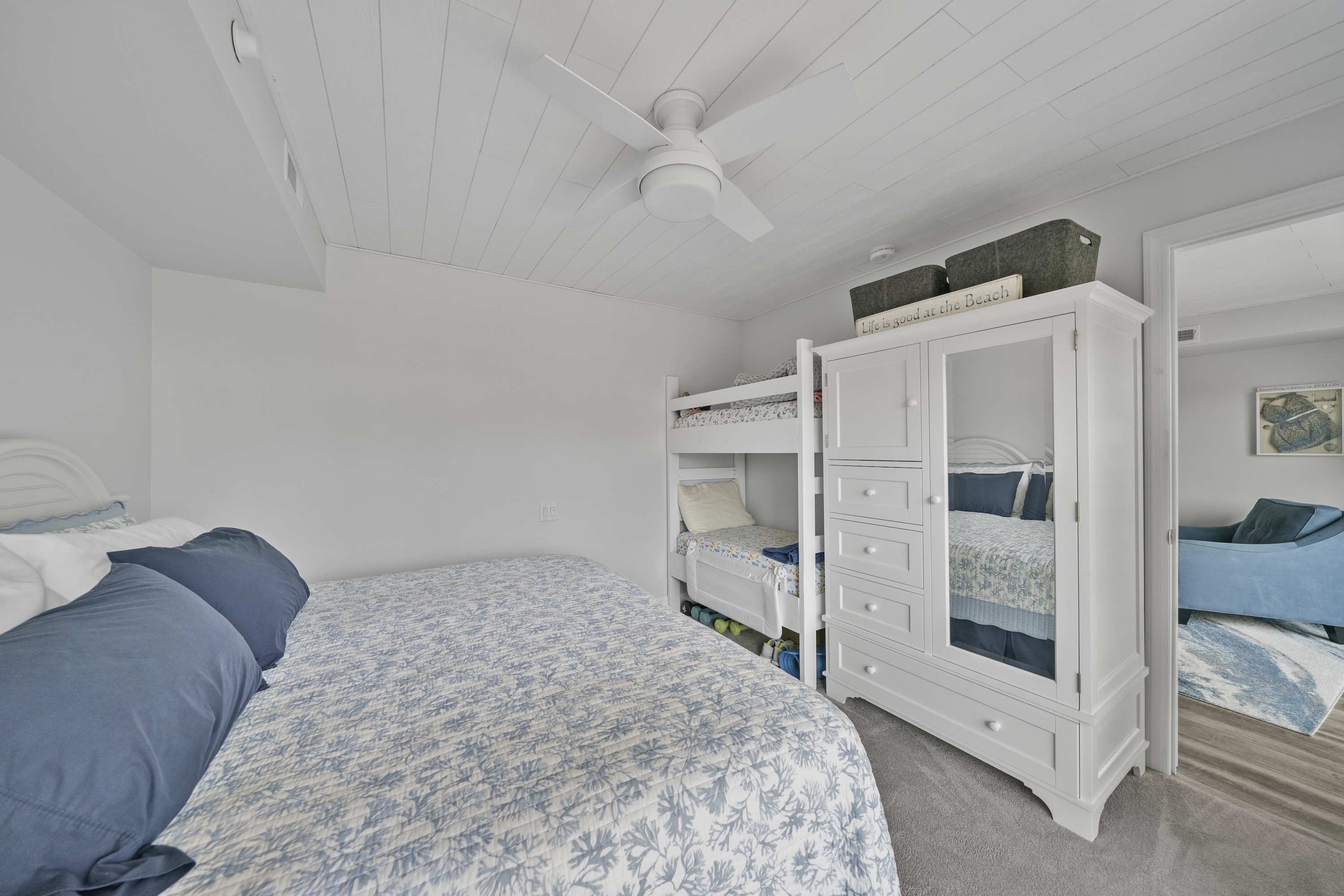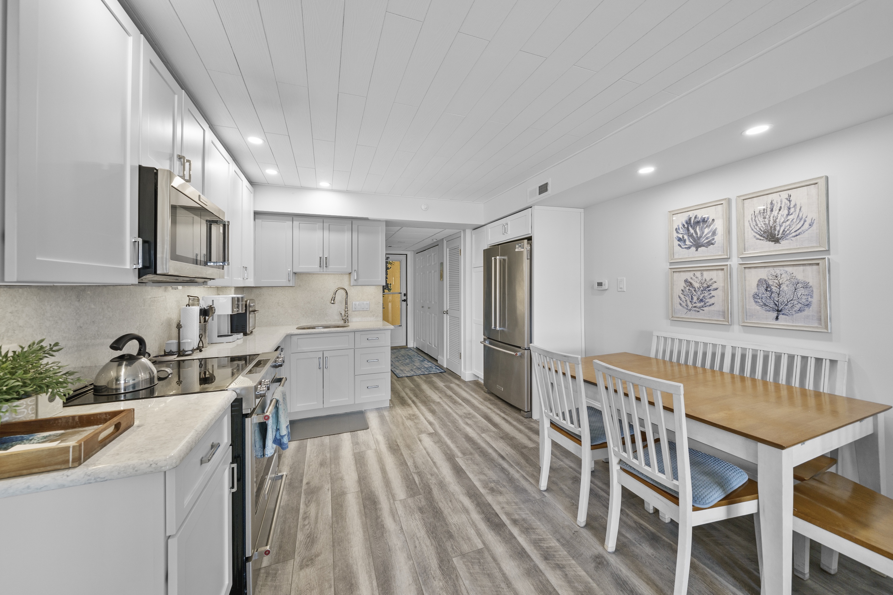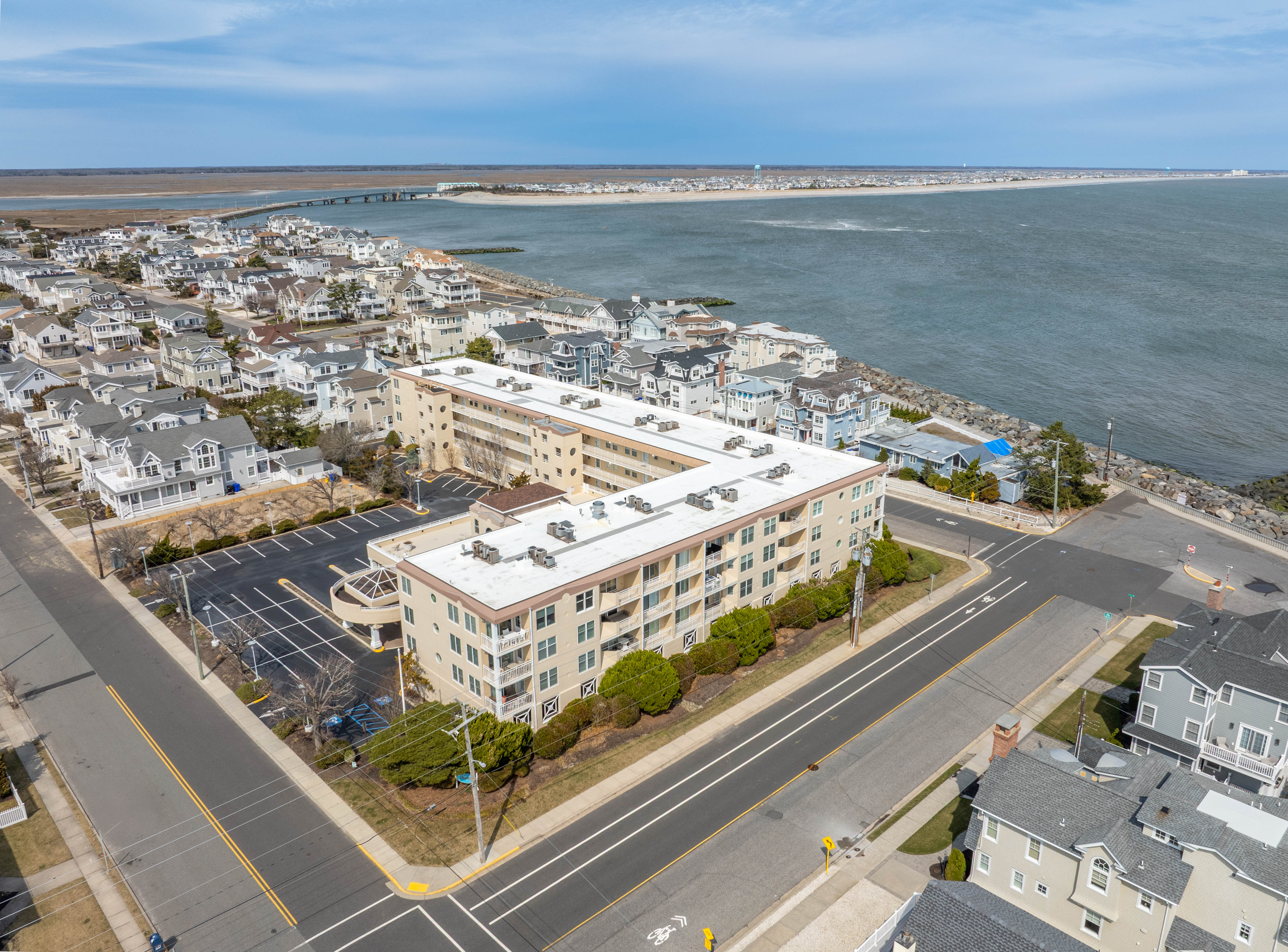 A prime location in the north-end of Avalon, only steps from the start of 7 Mile Beach. Discover a premier lifestyle, where the ocean breeze is a constant, cooling companion. This bright and modern water-view unit has been fluently updated. Renovated in (xxxx), the coastal finishes provide a vacation atmosphere. The second-floor unit features two bedrooms, two full baths, and decks with inlet views. Two sets of sliding doors open to reveal front-row seating to incredible sunrises. Enjoy efficient and comfortable sleeping arrangements, for your extended guests throughout the summer. This property also highlights a shared in-ground pool, two off-street parking spaces, and elevator. Offered turn-key and ready for immediate enjoyment this year.
