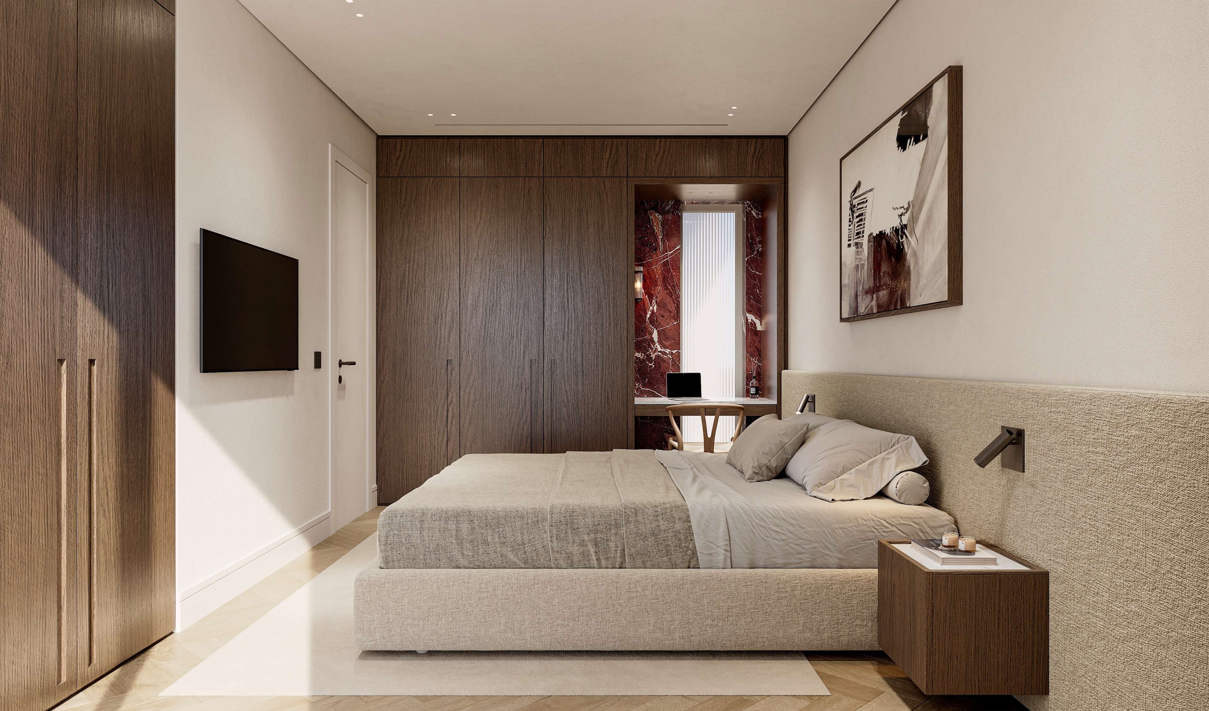 Currently undergoing a meticulous renovation to high standards, the apartment is being transformed to balance contemporary comfort with timeless design, with expected completion in June 2026. A welcoming entrance hall will lead into the main living areas, where the layout creates a sense of light, openness, and calm.