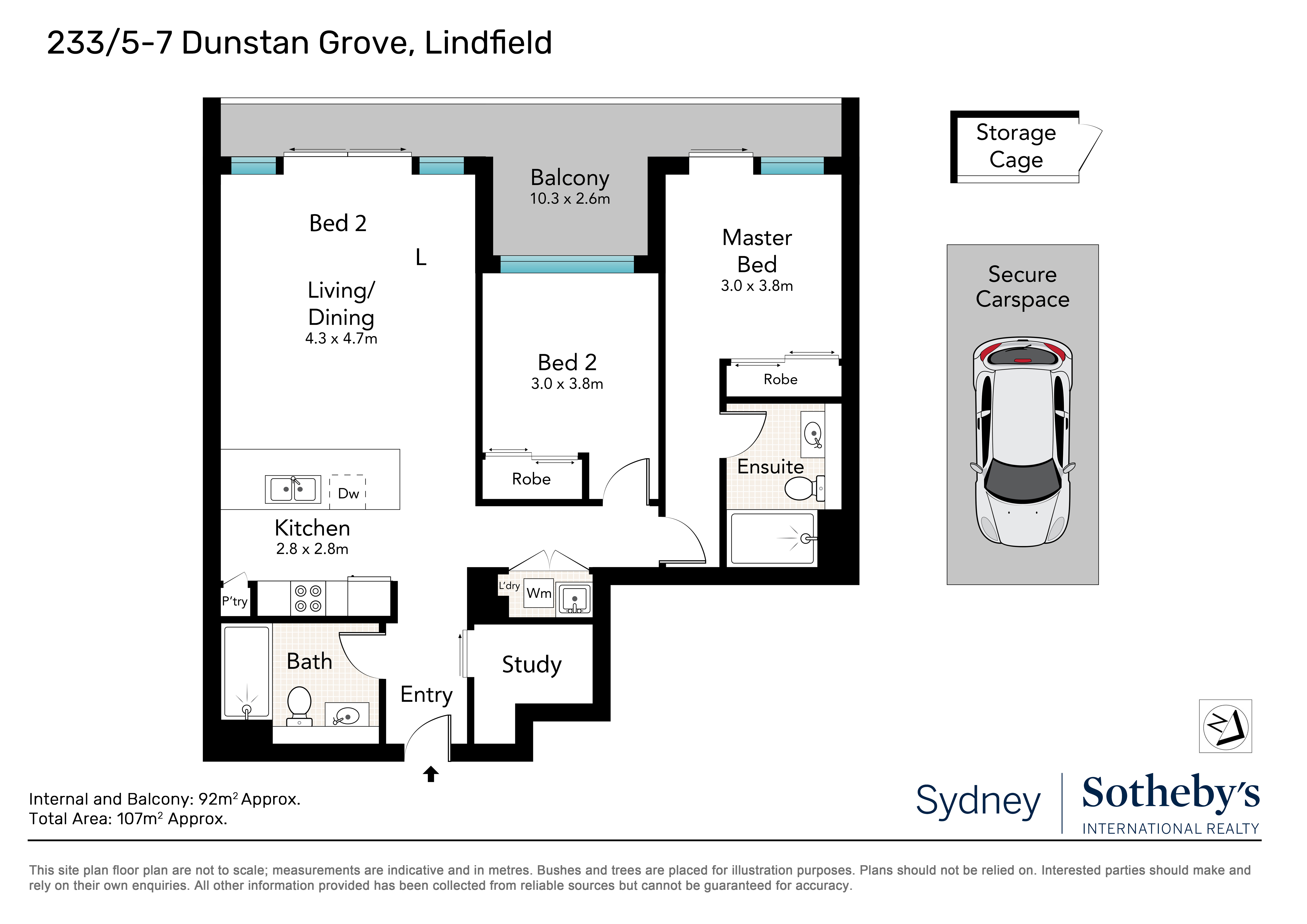 Two bedrooms, each with built-in robes, main with balcony access and ensuite