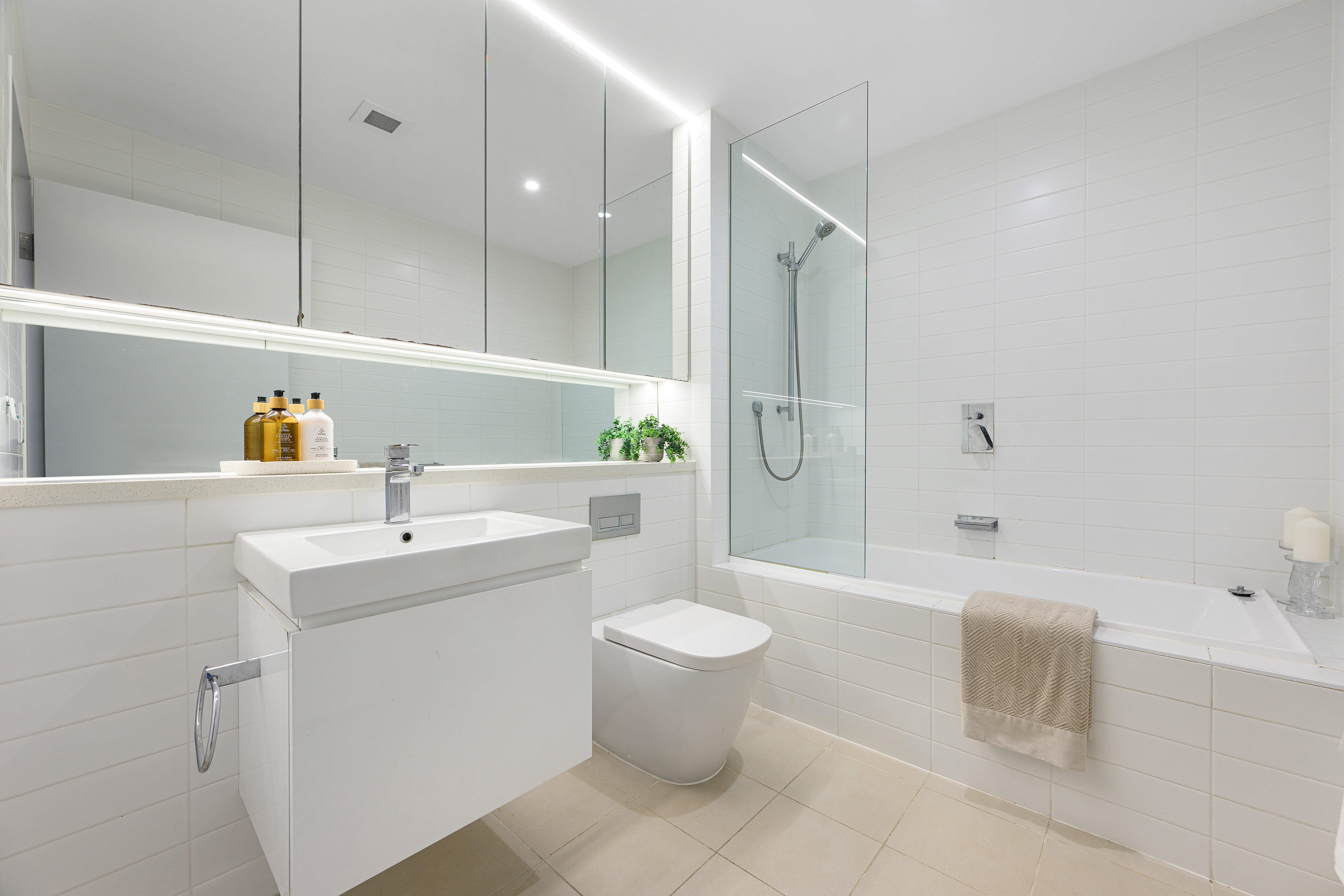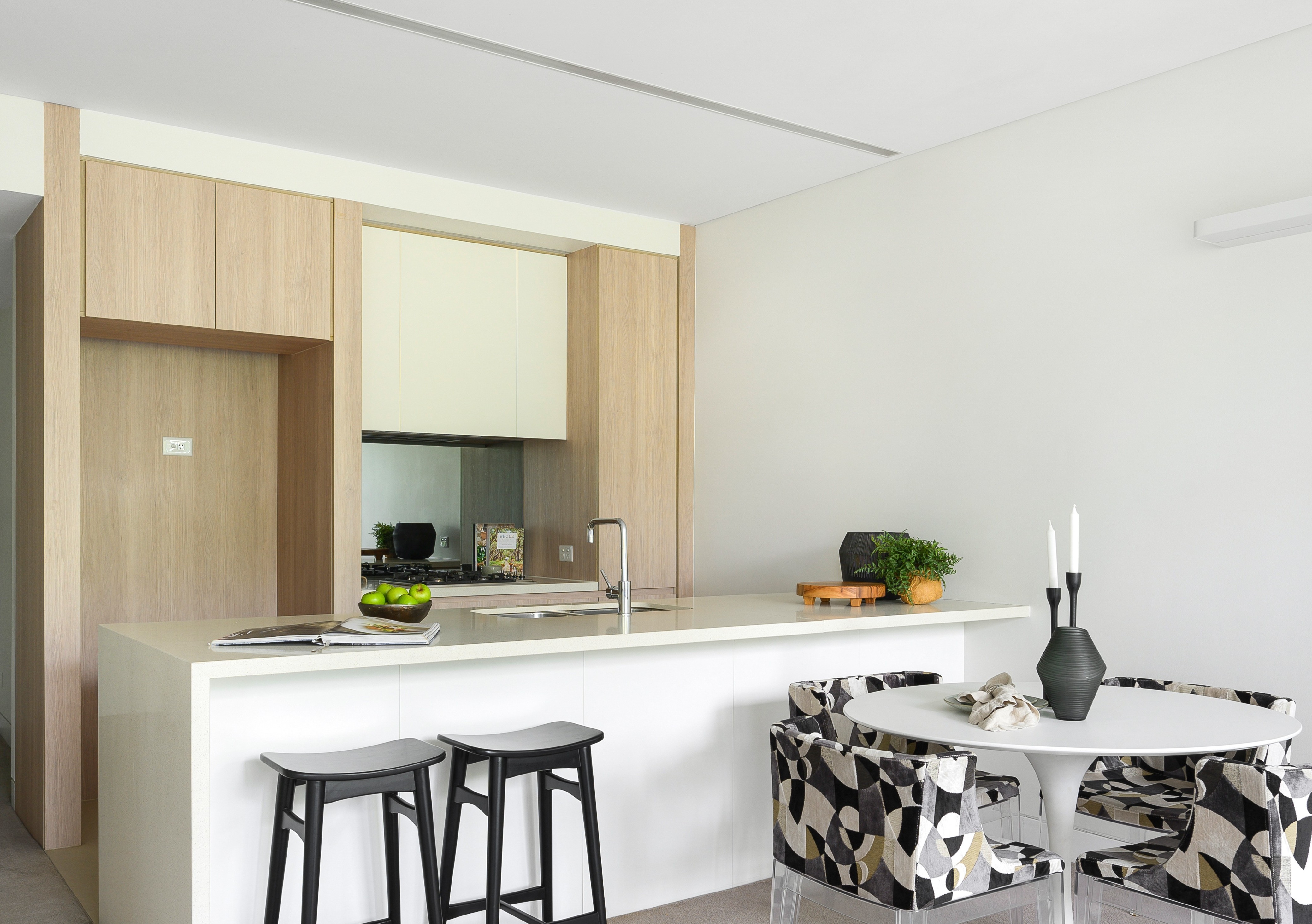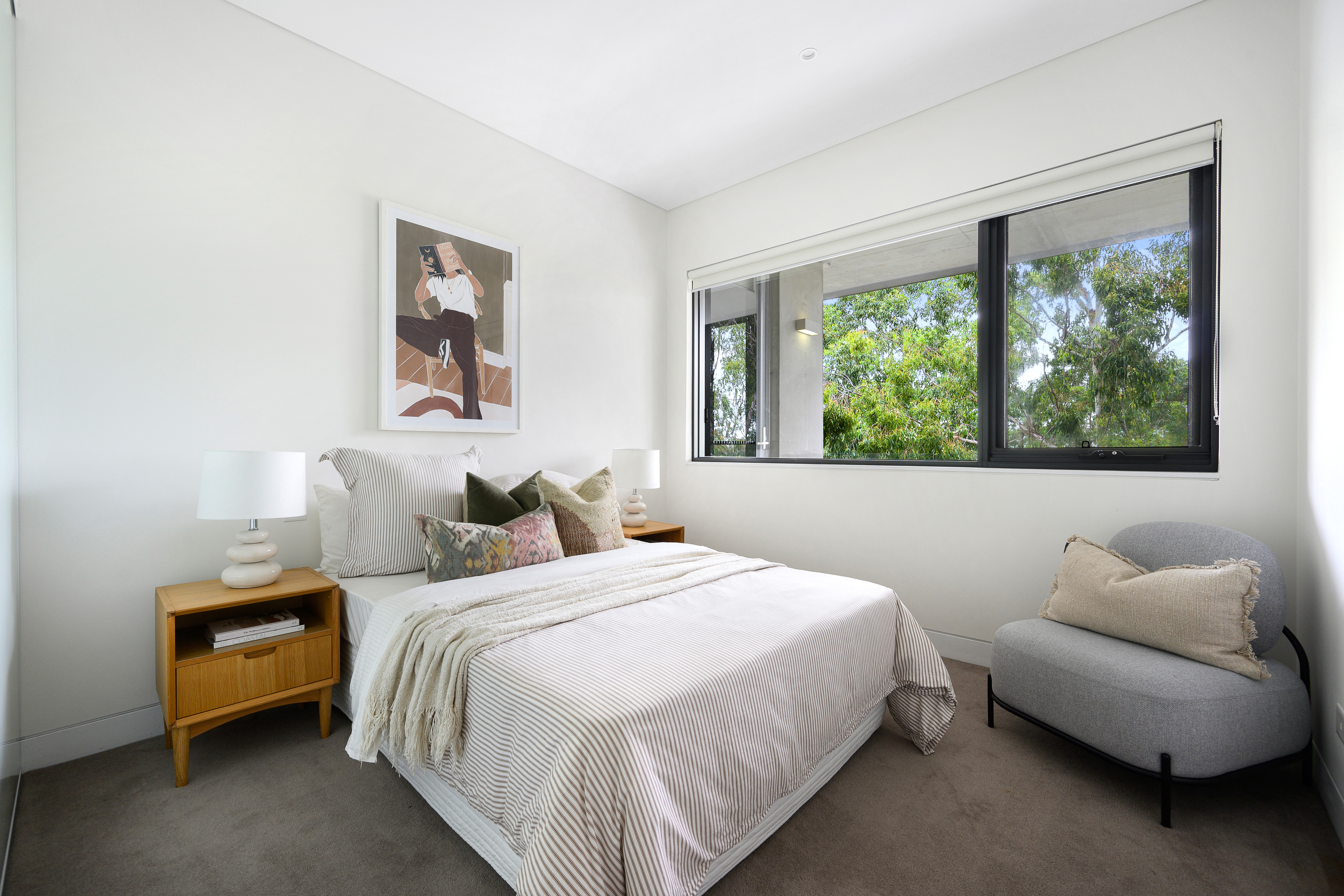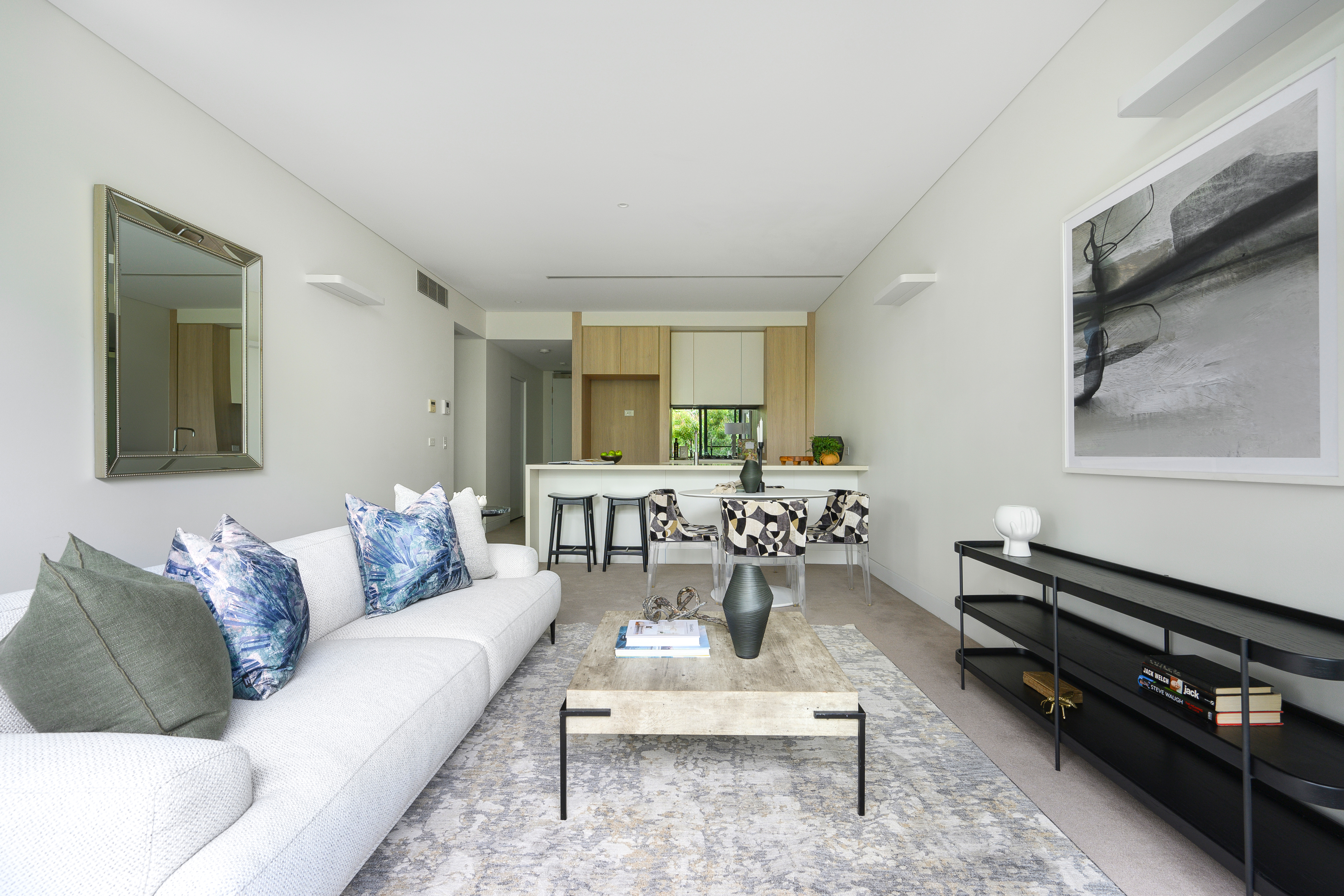 Stylish interiors, high ceilings, soothing neutral colour palette, ducted air conditioning