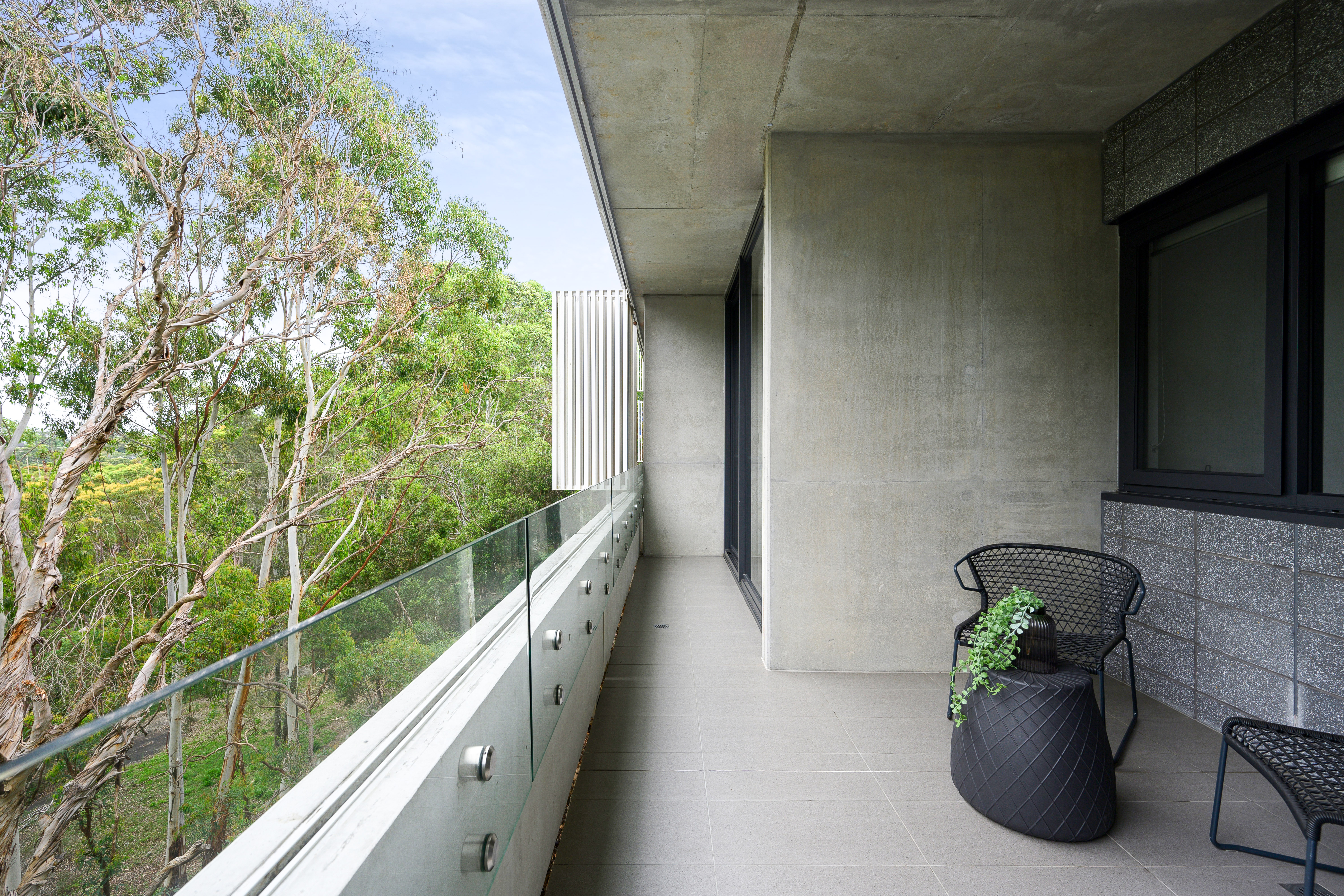 Ultra-private covered balcony with elevated bushland views