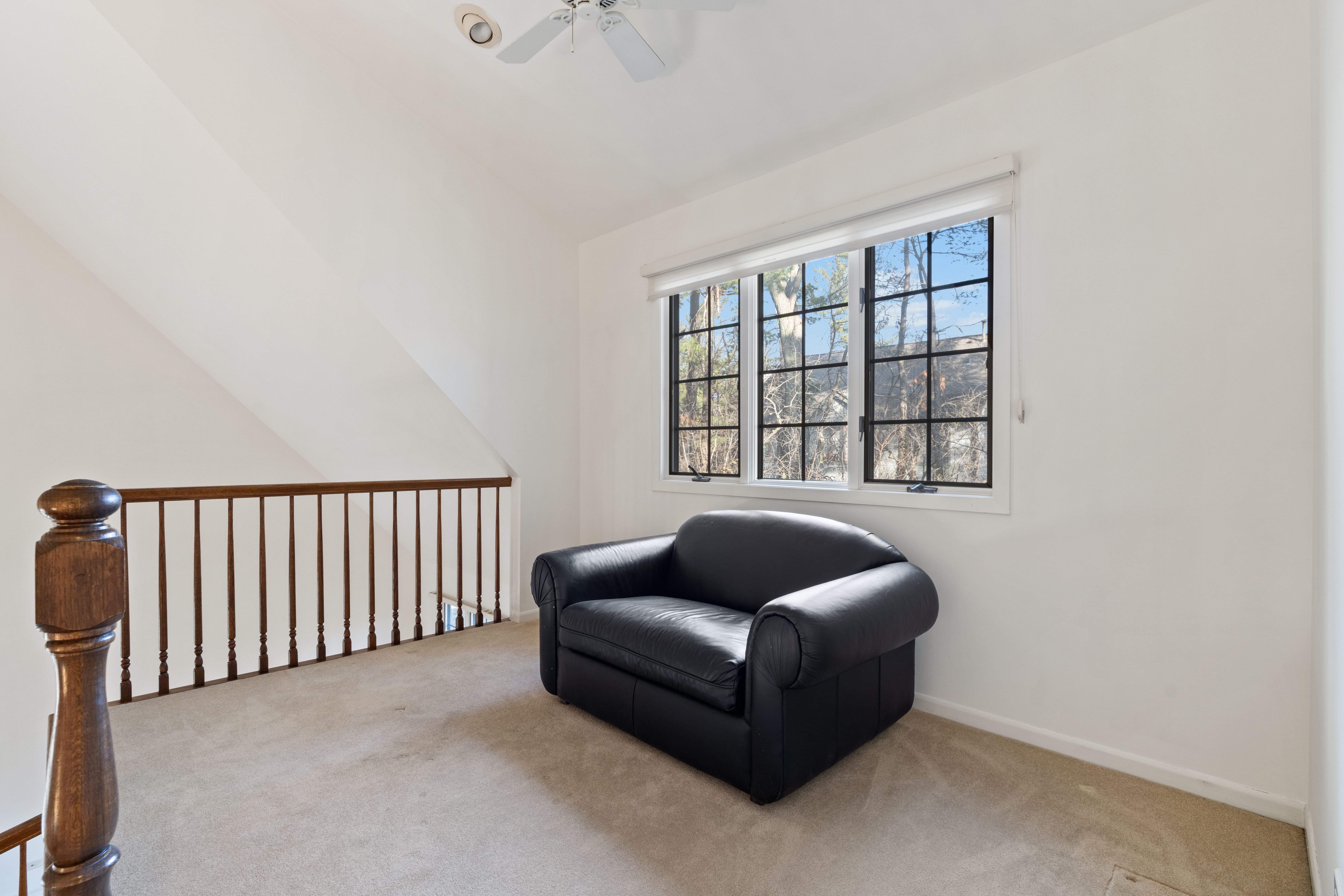 Welcome home to your beautiful Woodlands four bedroom townhome set in a private cul de sac. Main floor features lovely foyer entryway, hardwood flooring, custom window treatments, cathedral ceilings, a large eat in white kitchen with black granite countertops and a huge island. Off the kitchen you can access the sprawling deck surrounded by mature trees for maximum relaxation and privacy. The first floor primary suite features cathedral ceilings, a large primary bathroom and closet. Side by side laundry and a sink conveniently located in the mud room off the garage. The second level features three large bedrooms and a full bathroom plus a loft reading nook overlooking the living room. The lower level features a large family room and full bathroom. Plenty of storage with an attached two car garage. Enjoy the no maintenance lifestyle with the all of the amenities of a single family home. This home is freshly painted and ready for a new owner!