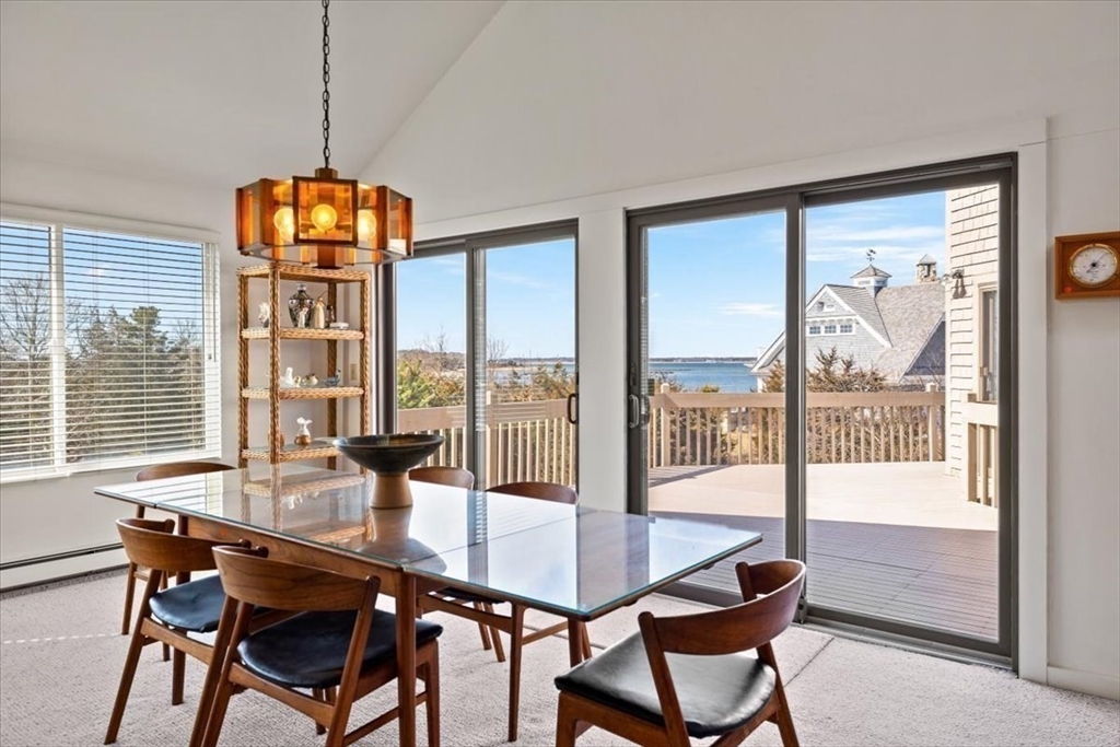 Beaches, boating, waterviews, sunsets, privacy - this location in exclusive Great Island has it all!! This 4 BR, 4 BA contemporary style has over 4,000 sq ft of living space with magnificent water views of Lewis Bay and only steps to the water! This well maintained property has its main living space on the upper floor which includes an open floor plan, spacious living room with wet bar (perfect for entertaining!), a den, bonus room/office, primary bedroom & open kitchen/dining area adjacent to the outdoor deck with views galore! Lower level features 3 bedrooms, laundry room, pantry, & access to the oversized garage. Recreationally, this property has it all.... coveted privacy within Great Island's gated community; spectacular sunsets from any one of your fabulous decks; access to watersports of every kind including wind-surfing, kite-boarding, snorkeling, swimming, fishing & jet skiing; a community dock or potential private dock use available. Come enjoy the lifestyle of Great Island!