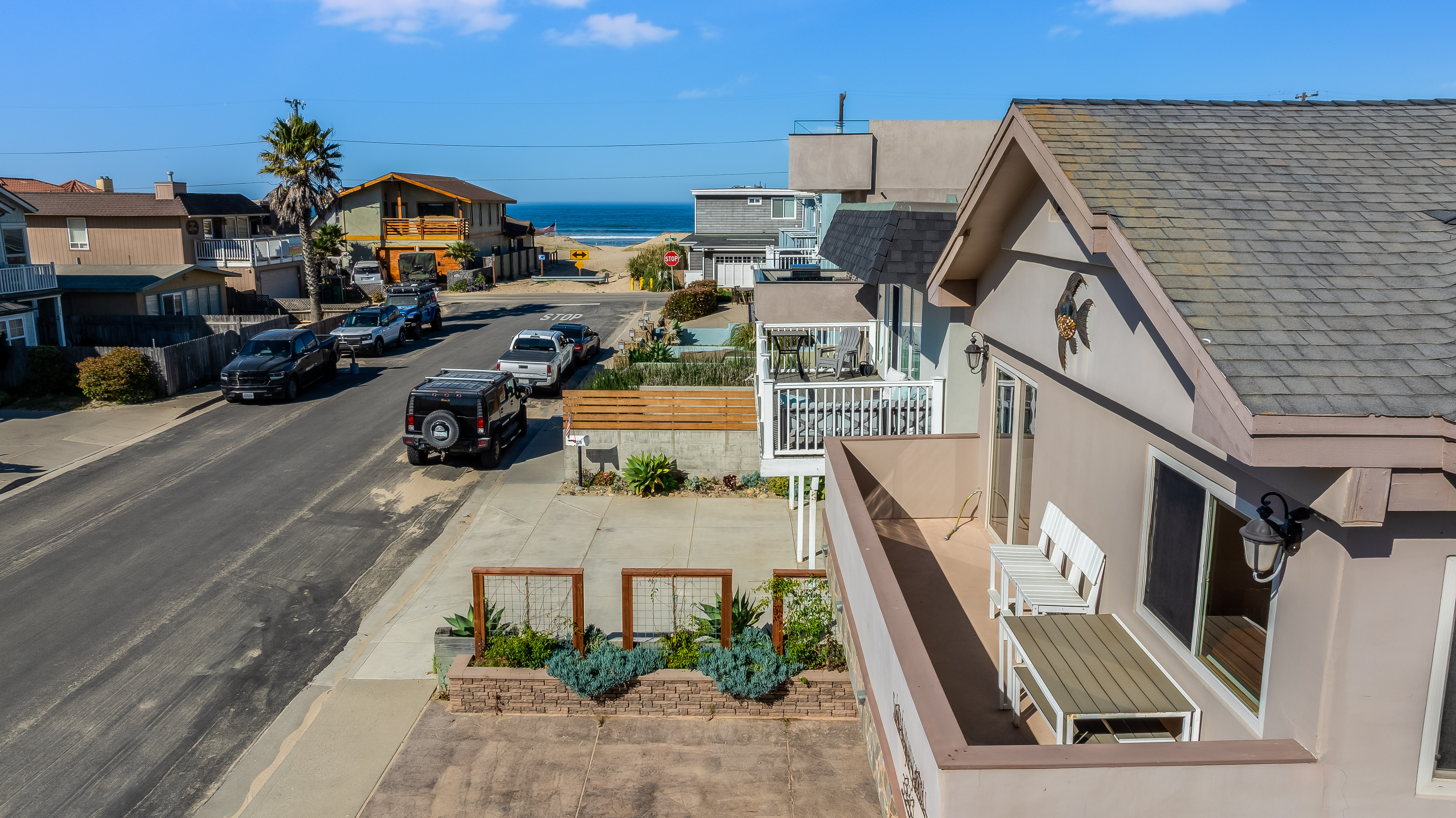 Perfectly positioned just steps from the sand, 333 York Avenue captures the essence of Central Coast beach living in Oceano’s sought-after Strand neighborhood. This versatile coastal property offers the rare combination of location, flexibility, and lifestyle, making it ideal for a primary residence, vacation retreat, or investment opportunity. Thoughtfully designed with two complete kitchens and flexible living spaces, the home can easily function as a duplex-style property or as a spacious single residence for hosting family and friends. The main entry level features one level living consisting of a primary bedroom, two bathrooms, a full kitchen, dining room, and living room, creating a comfortable and private living space with convenient access to the garages. The upstairs level offers three bedrooms, two bathrooms, a second kitchen, and a living room. With separate living areas and kitchens on each level, the home can function independently if desired—perfect for multigenerational living, guest quarters, or extended family stays. Light-filled interiors create a relaxed coastal atmosphere, while the home’s location with a view deck and enclosed patio areas allow you to fully enjoy the rhythm of beach living — morning walks on the beach, afternoons entertaining on the dunes, and evenings sunsets on the ocean.