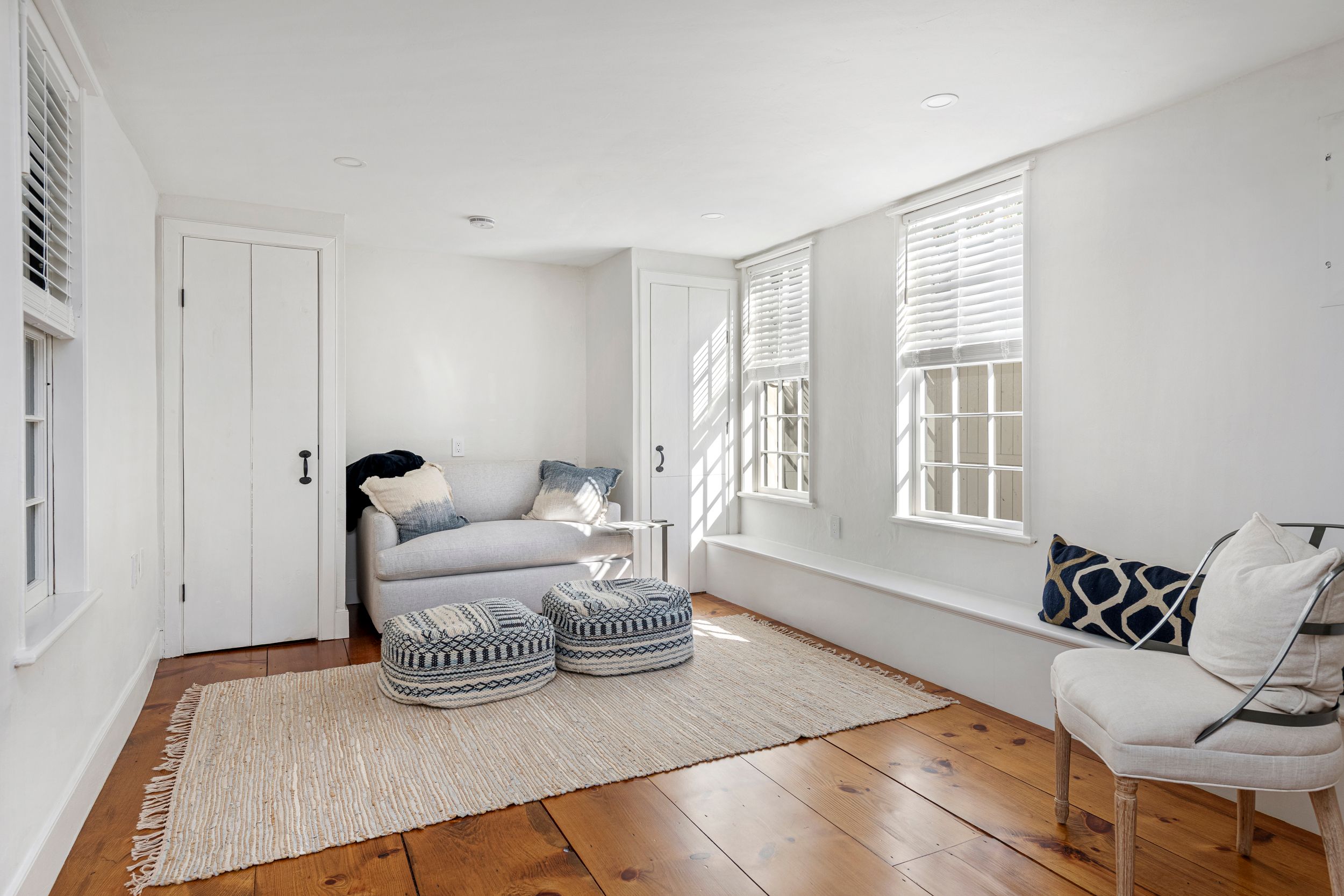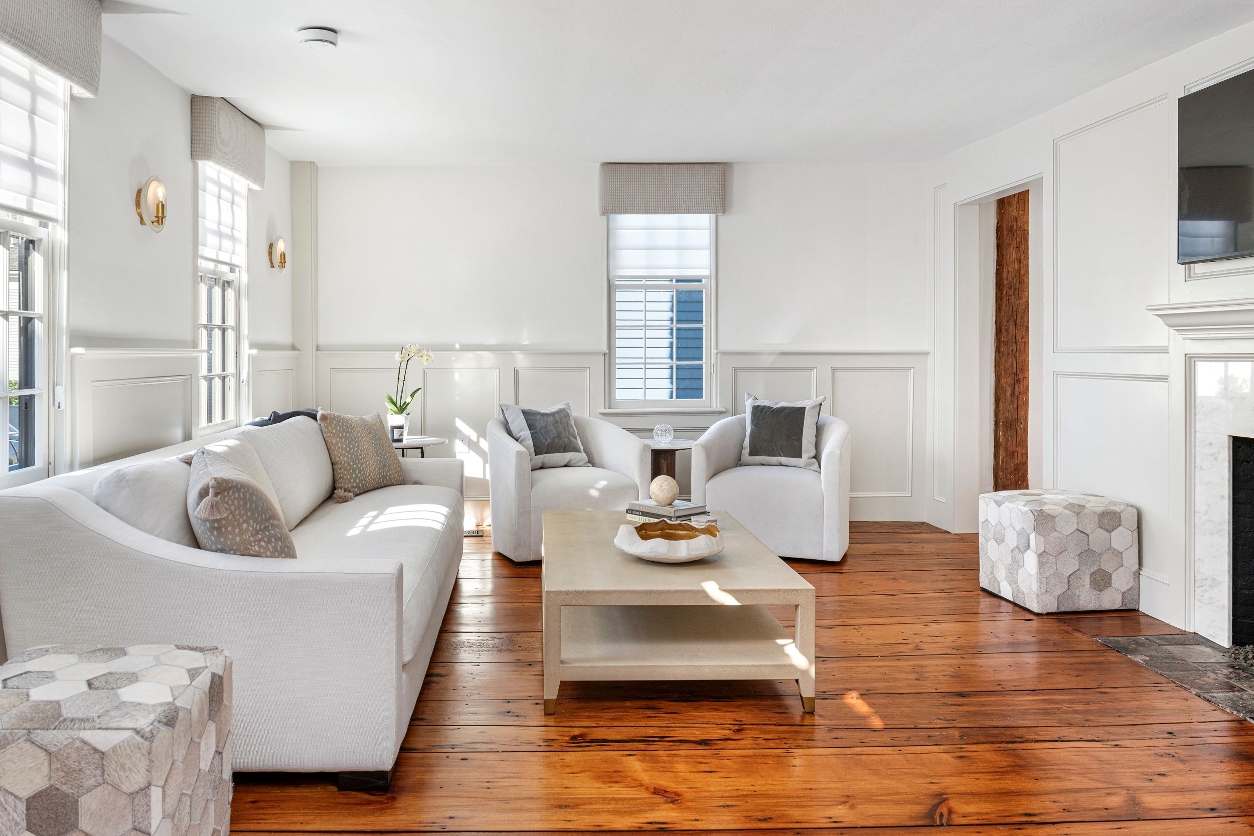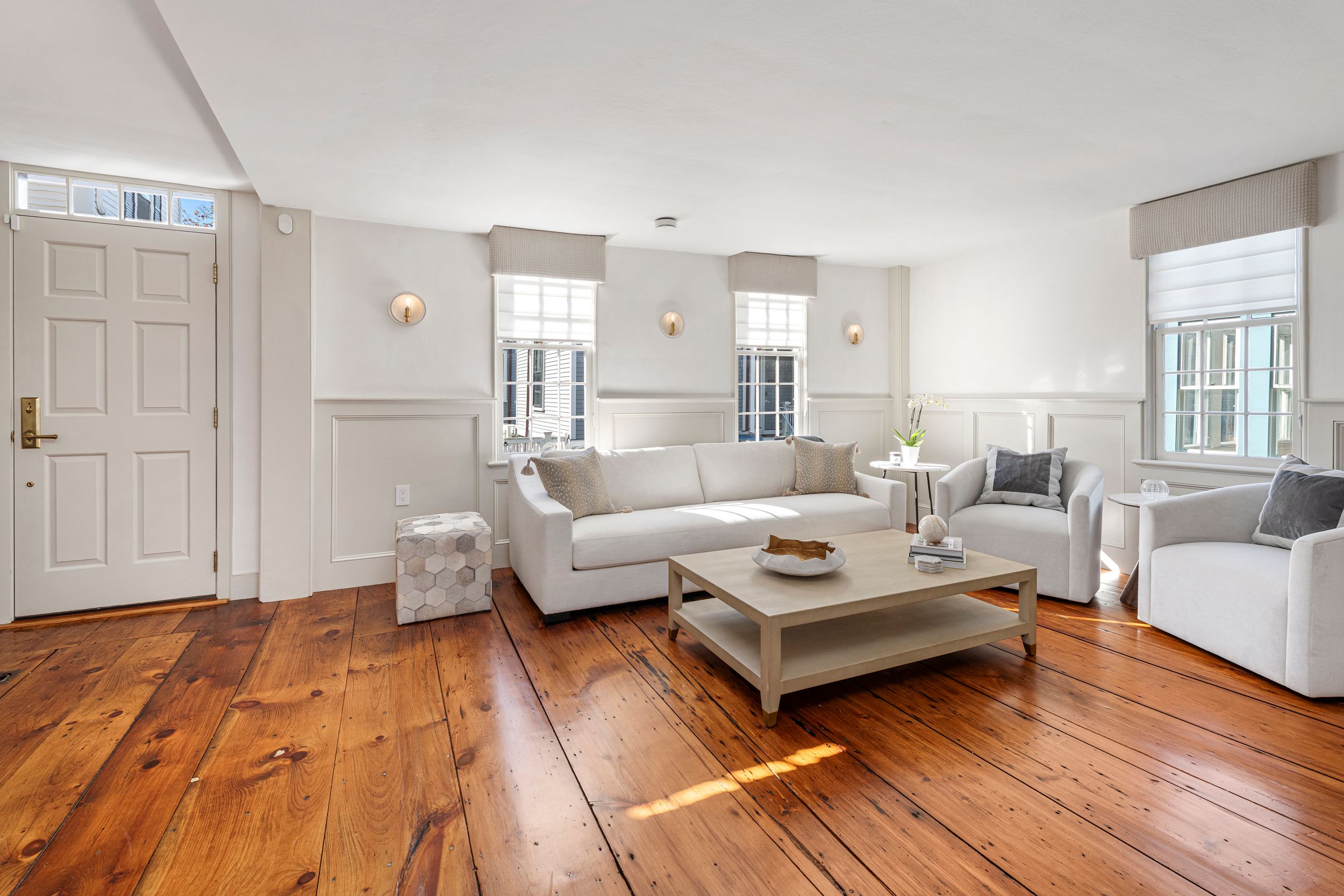Available August 2026. Built in 1749 and meticulously restored in 2024, this extraordinary Newport home blends historic charm with modern luxury. Listed on the National Register of Historic Places, this beautifully renovated 2,652-square-foot residence offers four bedrooms and four full bathrooms and is available as a premier summer rental in the heart of downtown Newport. Mahogany decks on every level, including the third floor, provide the perfect place to enjoy Newport's coastal air. The first floor features a flexible bedroom or den, a dining room with a wet bar, and a living room with custom wall paneling and a gas fireplace, all accented by refinished wide-plank white pine floors. The chef's kitchen features high-end appliances, Taj Mahal quartzite countertops, and elegant finishes. Upstairs, the primary suite includes a gas fireplace and a luxurious bathroom, along with a second guest bedroom, full bathroom, sitting area, and laundry room. The third floor offers additional living space with a custom bar, full bathroom, and a charming bunk room with three built-in beds. Additional highlights include a private bluestone patio with cedar fencing, and two off-street parking spaces. Ideally located just steps from Newport's renowned restaurants, shops, and the harbor, this home offers an exceptional opportunity to enjoy summer in Newport.