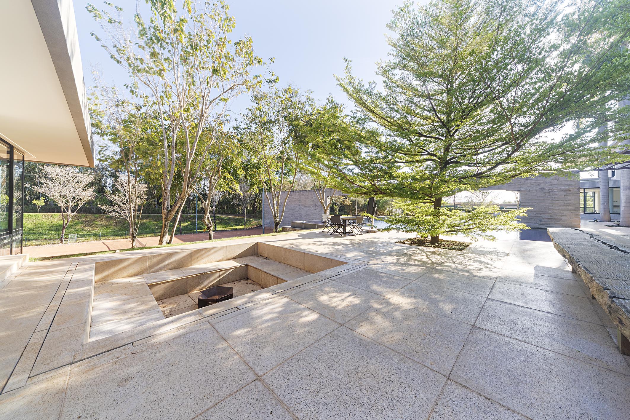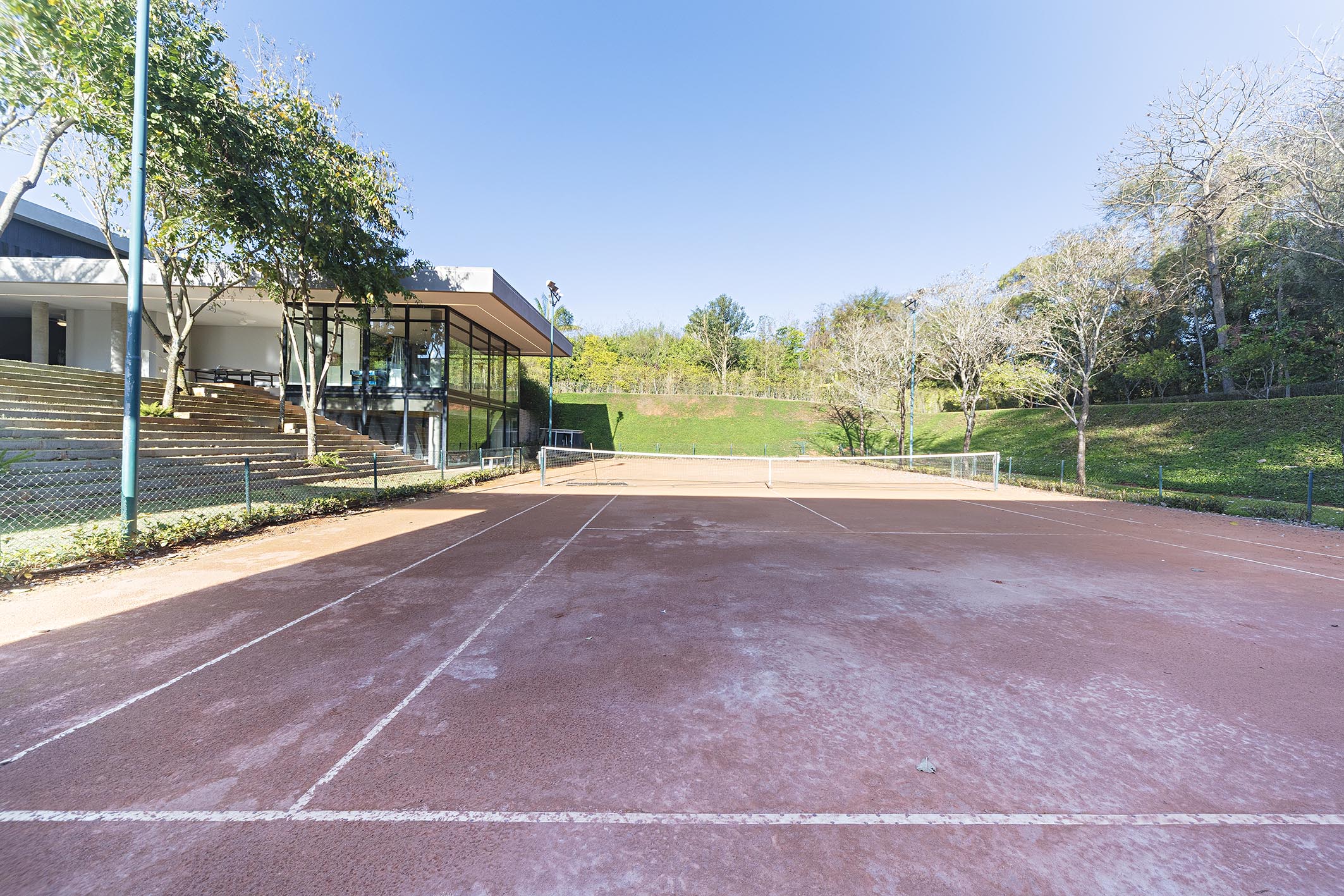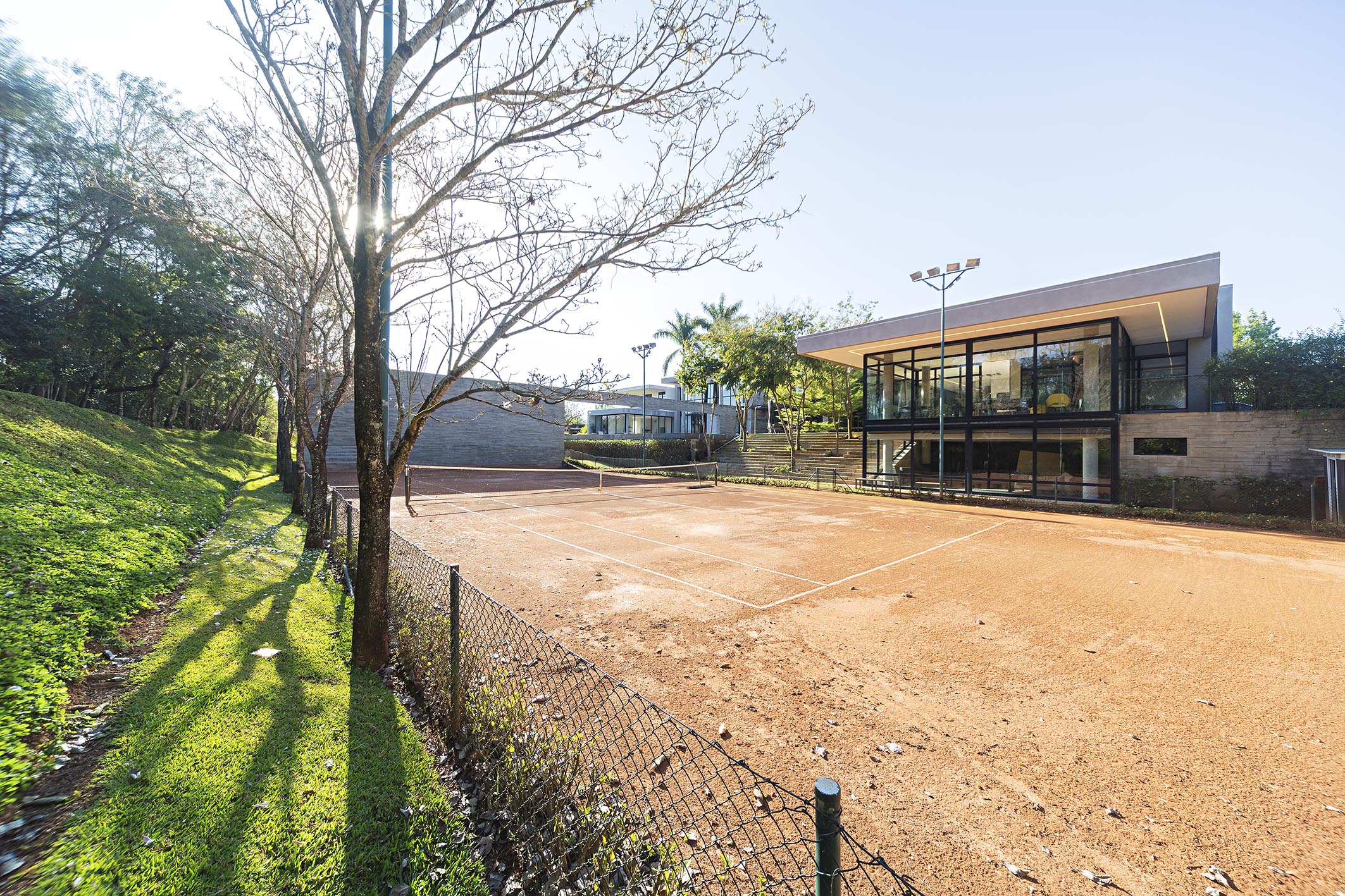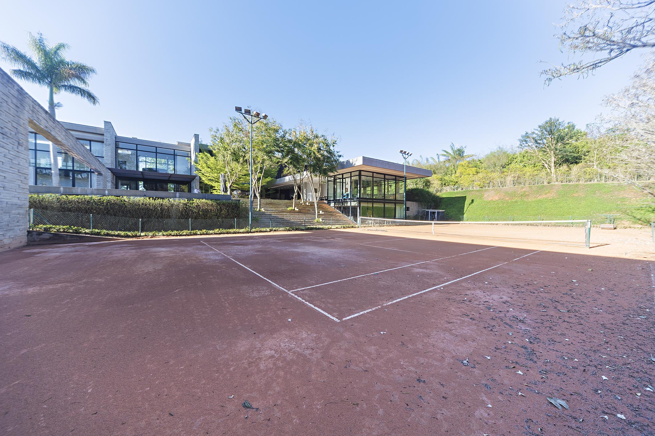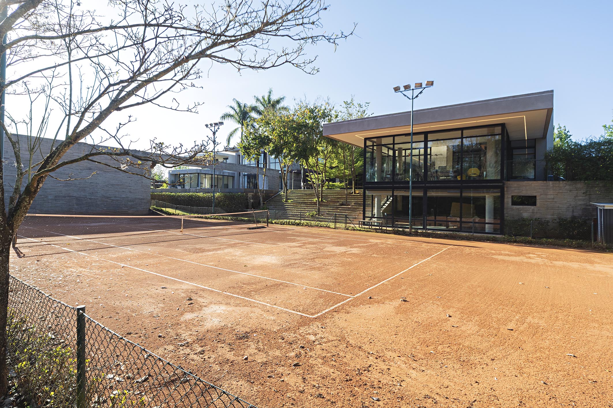 This residence in a gated community features a contemporary design, spacious interiors, and full integration with the outdoor area. It is offered fully furnished. On the ground floor, the social area includes a large living room, home theater, dining table for eighteen guests, and a built-in wine cellar, as well as a gourmet area with barbecue. The leisure amenities include a game room, clay tennis court, soccer field, gym, jacuzzi, fire pit, and one of the largest residential pools in Baroneza, noted for its generous dimensions and landscaping. Also on the ground floor are three well-distributed suites. Upstairs, the private wing comprises six suites with closets and floor-to-ceiling windows offering views. The primary suite includes a walk-in closet, his-and-hers bathrooms, a makeup area, office, and private TV room, along with a linen closet and support kitchen on the same level. The property also features staff quarters and a landscaped garden that enhances the connection between indoor and outdoor areas. The gated community offers full leisure and security infrastructure, with wooded areas designed for relaxation and social gatherings.