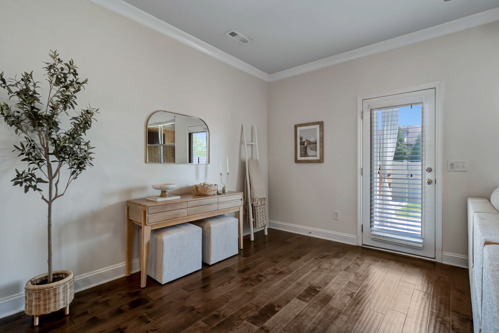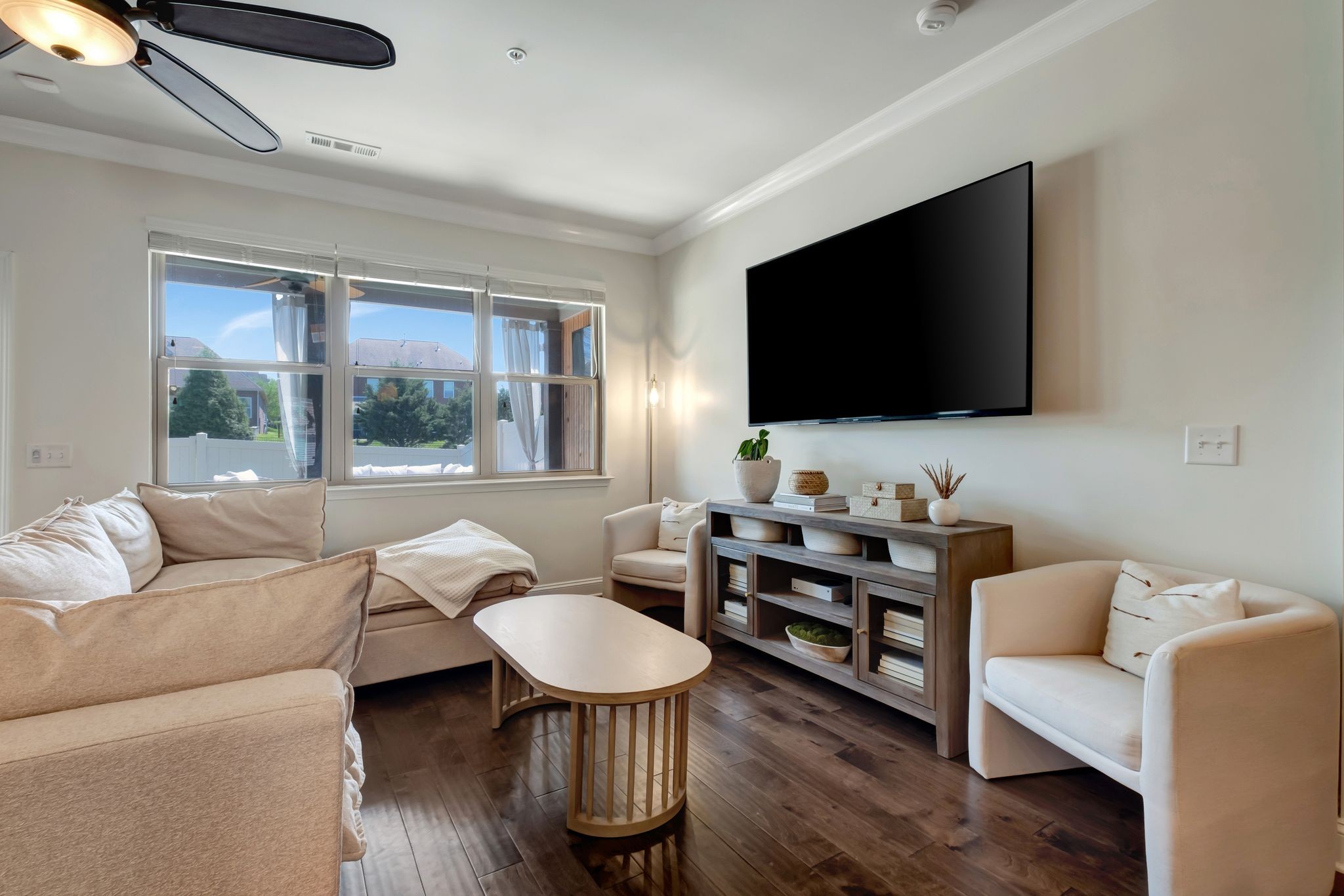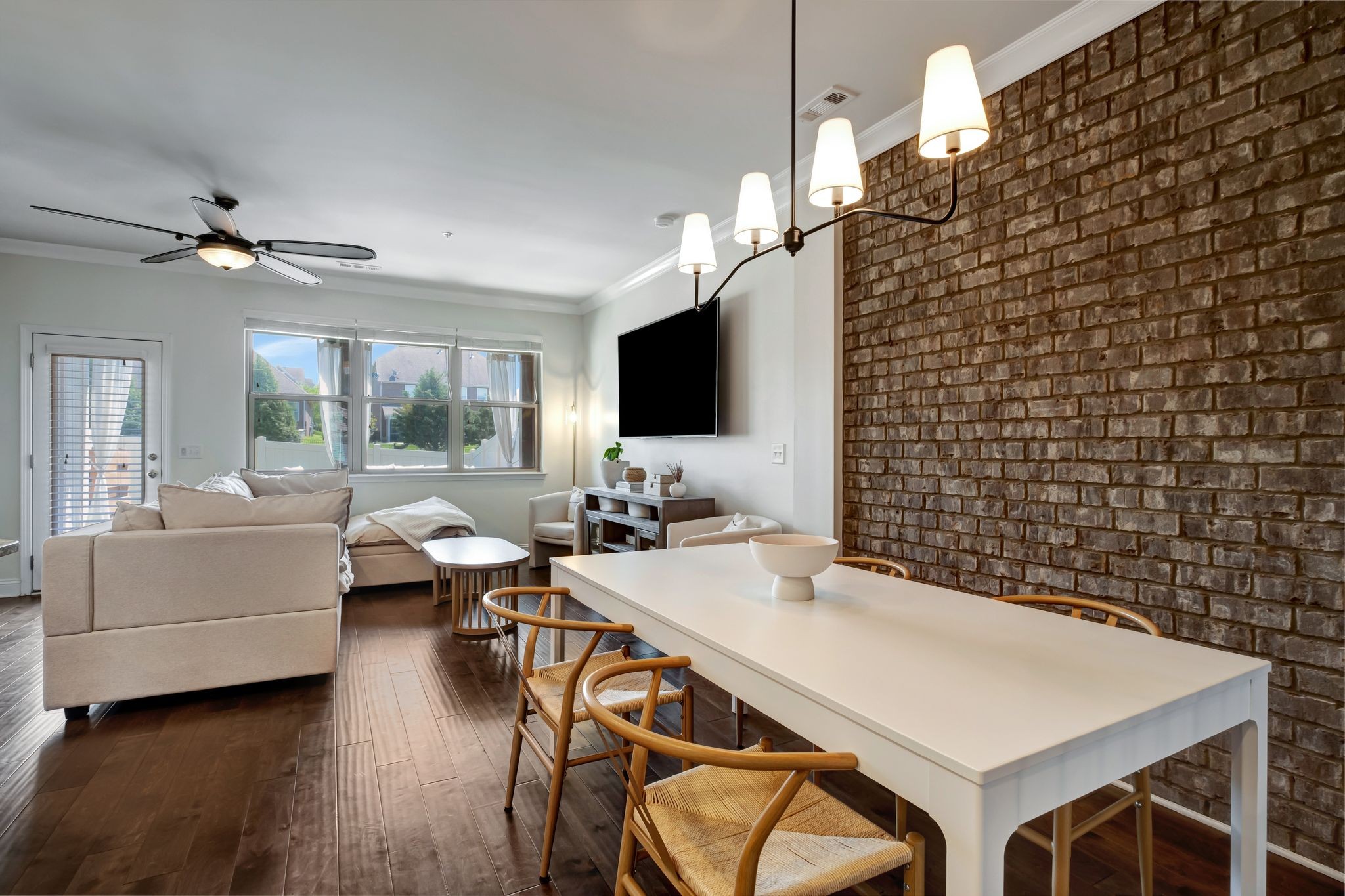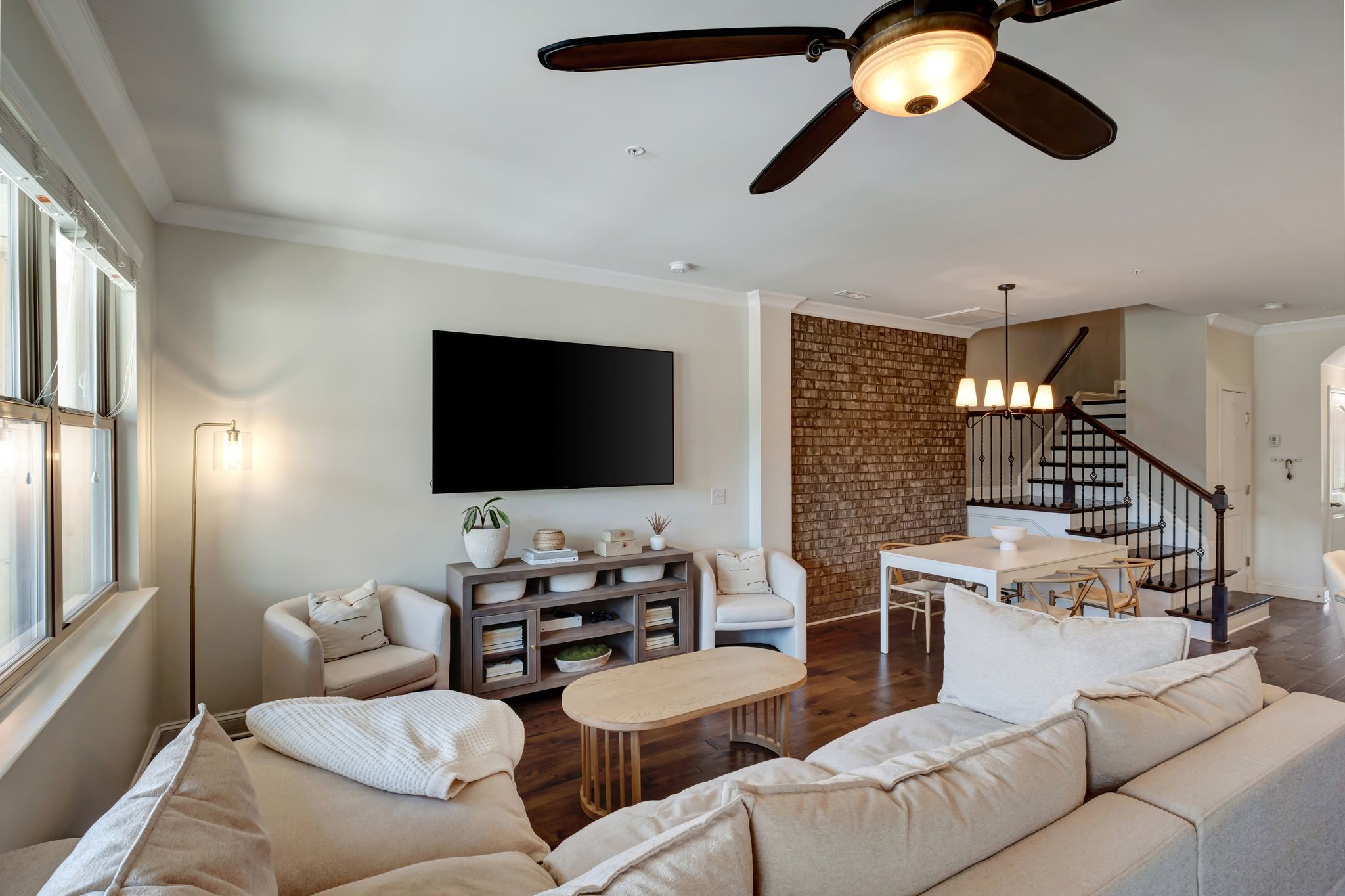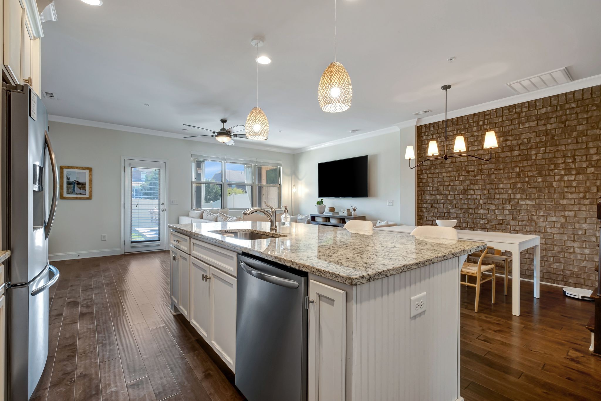 Welcome to 1440 Channing Drive in the highly desirable Fields of Canterbury! This charming townhome offers 9-foot ceilings and hardwood flooring throughout the main level. The open-concept design is highlighted by arched doorways and a beautiful brick accent wall. Step outside to a private, fenced backyard ideal for entertaining, featuring both covered and open-air spaces. Upstairs, the spacious primary suite includes a large custom walk-in closet, with a conveniently located laundry room just steps from all bedrooms. Recent upgrades include a new HVAC system and water heater. Enjoy all the community amenities, including pools, playground, sidewalks, and scenic walking trails. Ideally located just minutes from Berry Farms, Franklin, and Spring Hill, with easy access to I-840.