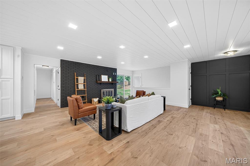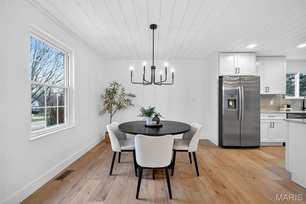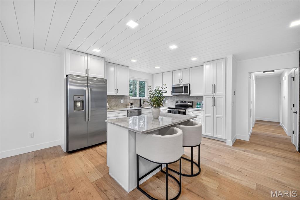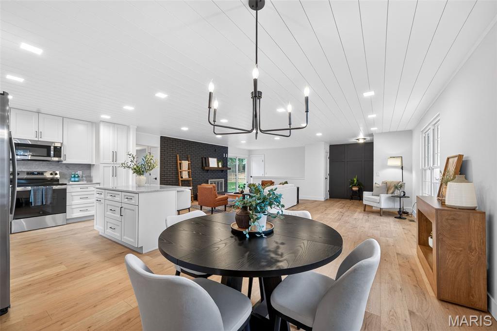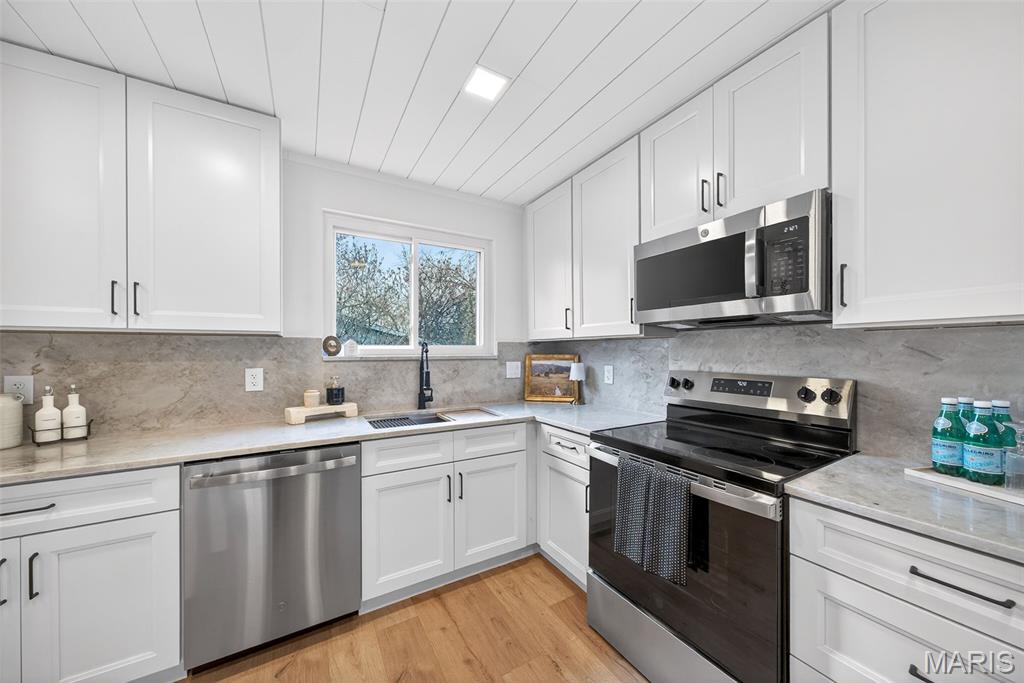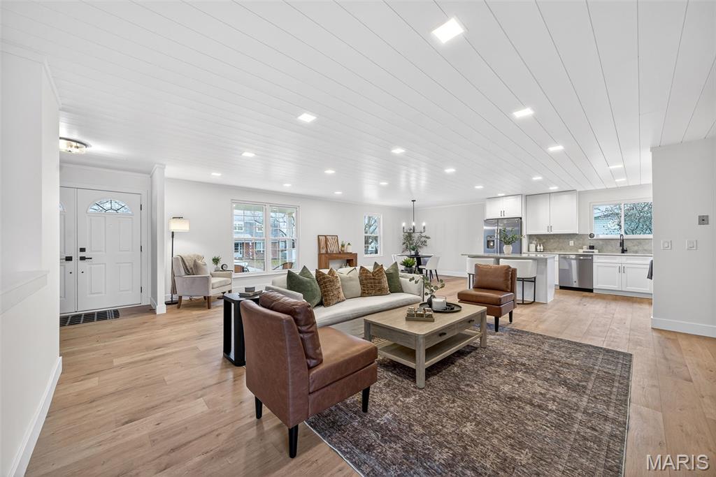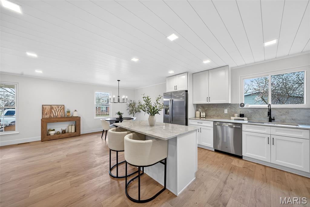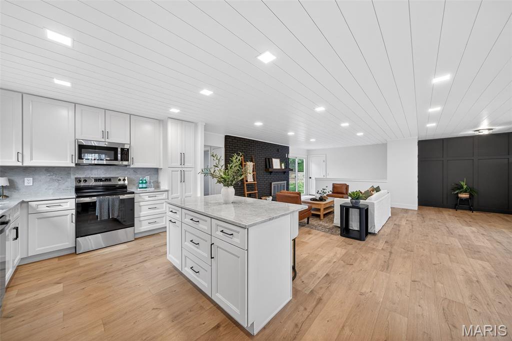 Beautiful home on quiet cul-de-sac street in Spencer Creek West subdivision. This home features a bright wide open floor plan with updated luxury vinyl plank flooring, modern lighting, and fresh neutral finishes throughout. The stunning kitchen offers custom cabinetry, solid surface countertops and backsplash, new stainless steel appliances, large center island, and opens seamlessly into the spacious living and dining areas that are perfect for everyday living and entertaining. The floor-to-ceiling brick fireplace creates a warm focal point in the main living space. Updated bathrooms feature new vanities, fixtures, hardware and lighting. The primary suite offers his and hers closets, beautifully remodeled bathroom and new carpeting. Enjoy the oversized backyard with plenty of room to play or relax and entertain on the patio. Additional features include new interior doors, trim, lighting, hardware, flooring and fresh paint throughout. Covered porch and attached two-car garage and refreshed exterior curb appeal. Conveniently located near subdivision parks, trails, restaurants and shopping.