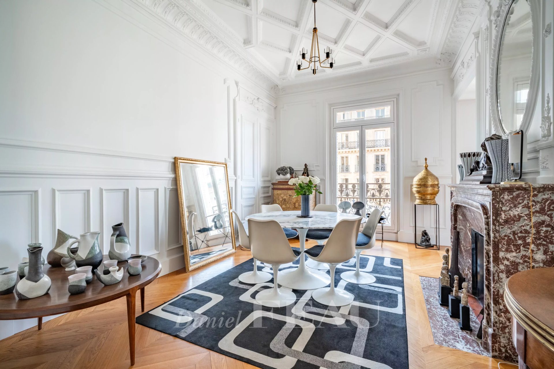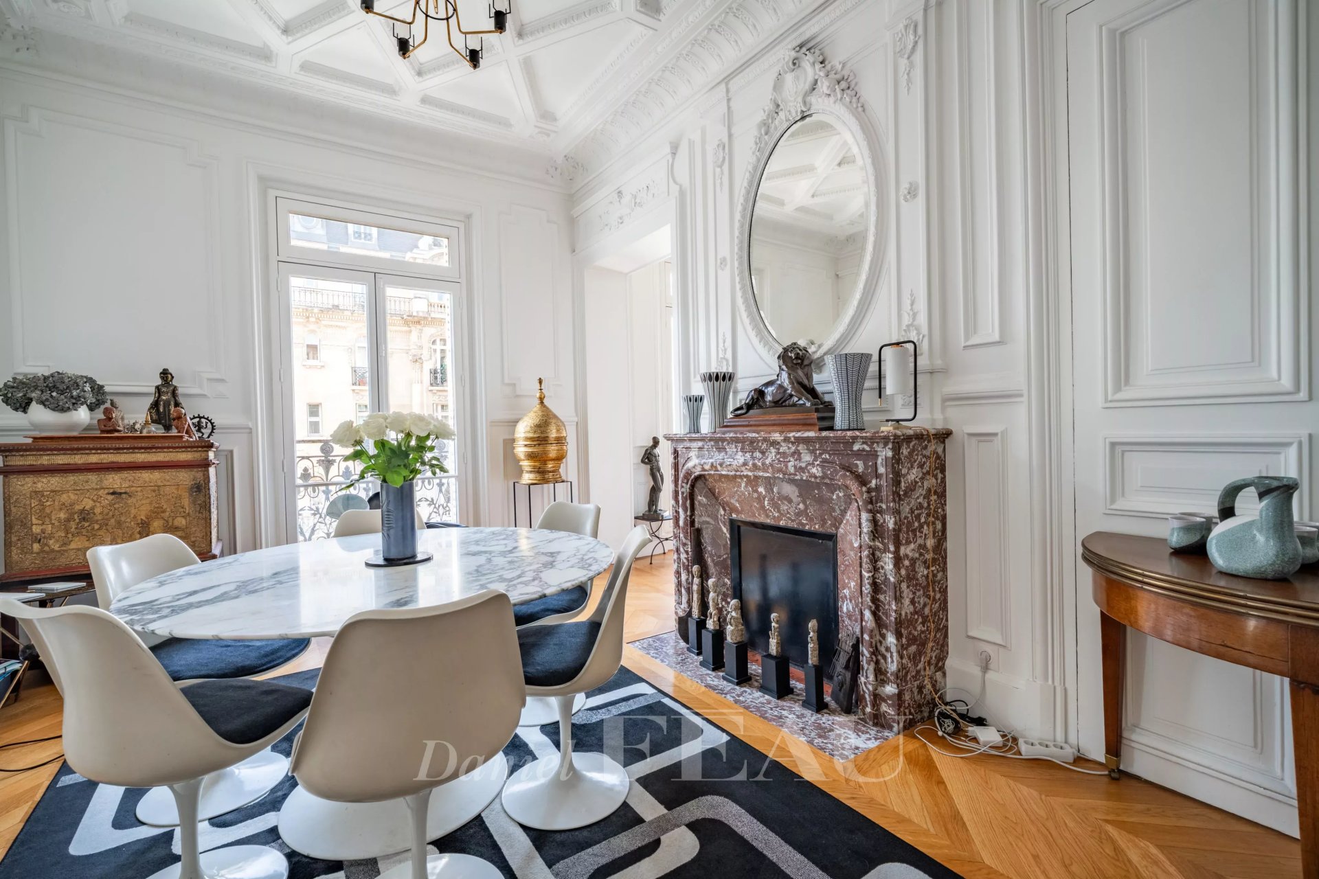 Ternes/Wagram neighbourhood. This elegant apartment offering 106.33 sqm of floor space and 104.52 sqm of living space as defined by the Carrez Law is on the 3rd floor of a fine late 19th century building with a lift located near the Arc de Triomphe, the shops, the schools and the transport networks.