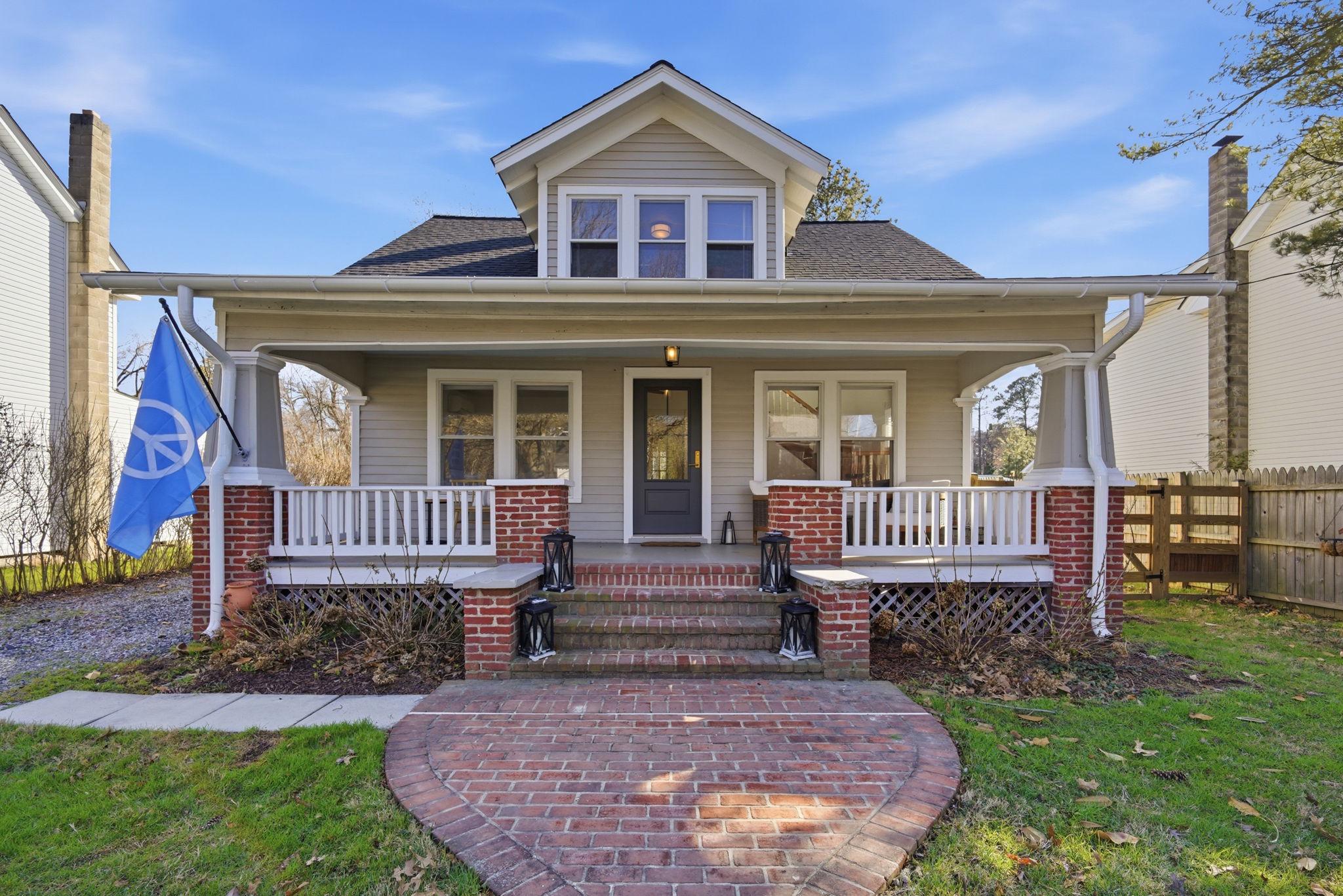 Tucked in the heart of Rock Hall, this original 3-bedroom, 2-bath Craftsman is as charming as they come. Thoughtfully maintained and updated over time, it blends classic character with everyday comfort. The home features hardwood floors, abundant natural light, and beautifully preserved details throughout. The layout offers flexibility with two updated full bathrooms, one on each level. Recent improvements include a new roof, gutters, front door, refreshed porch, and an encapsulated crawlspace with dehumidifier. Outside, a fenced backyard creates a private setting for entertaining or unwinding on the patio, while the inviting front porch is the perfect spot to start or end the day. Just steps from Rock Hall’s Main Street, you’re within easy reach of local shops, restaurants, live music, marinas, and the waterfront, making this Craftsman an ideal full-time home or weekend escape on the Eastern Shore.