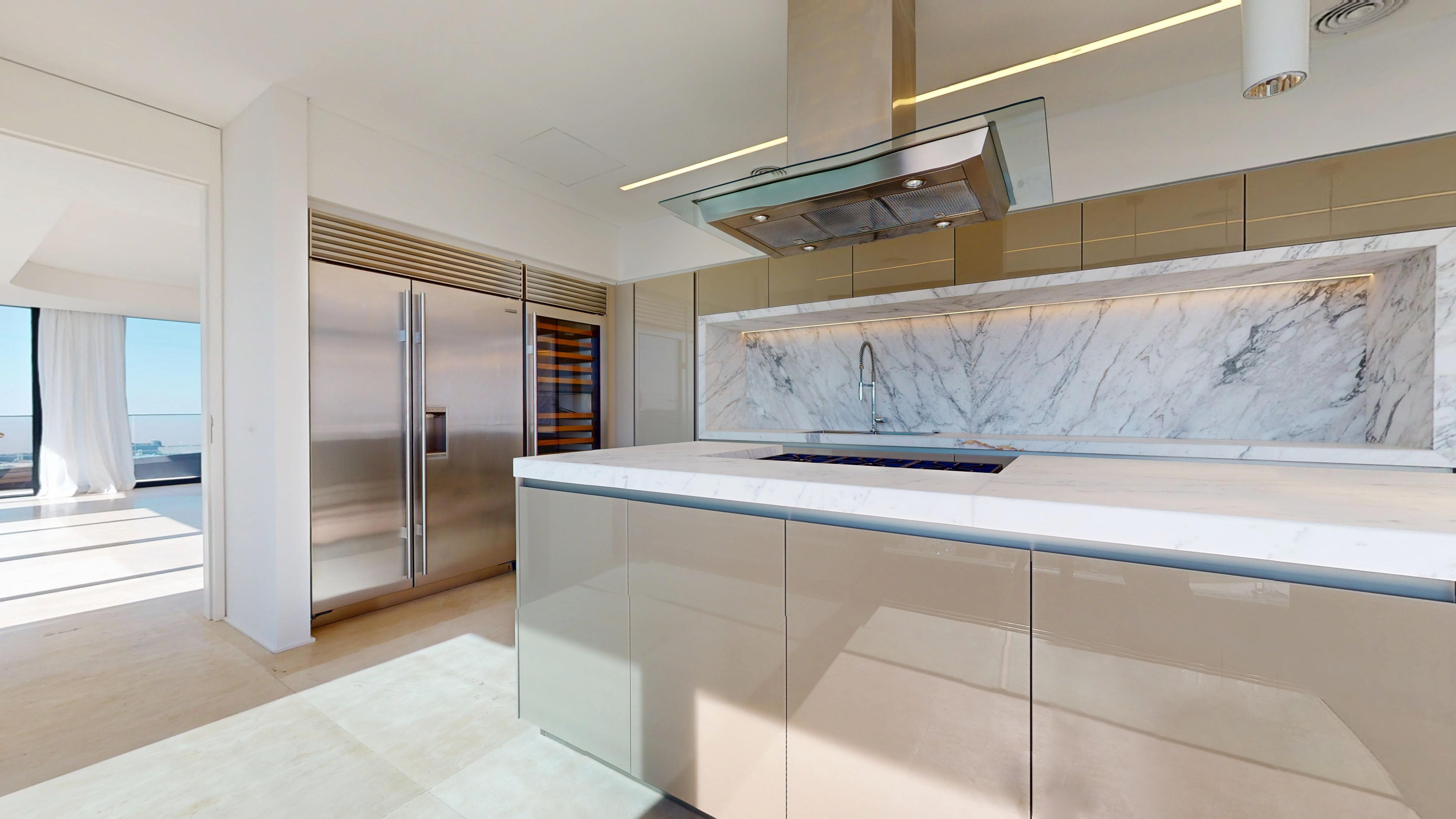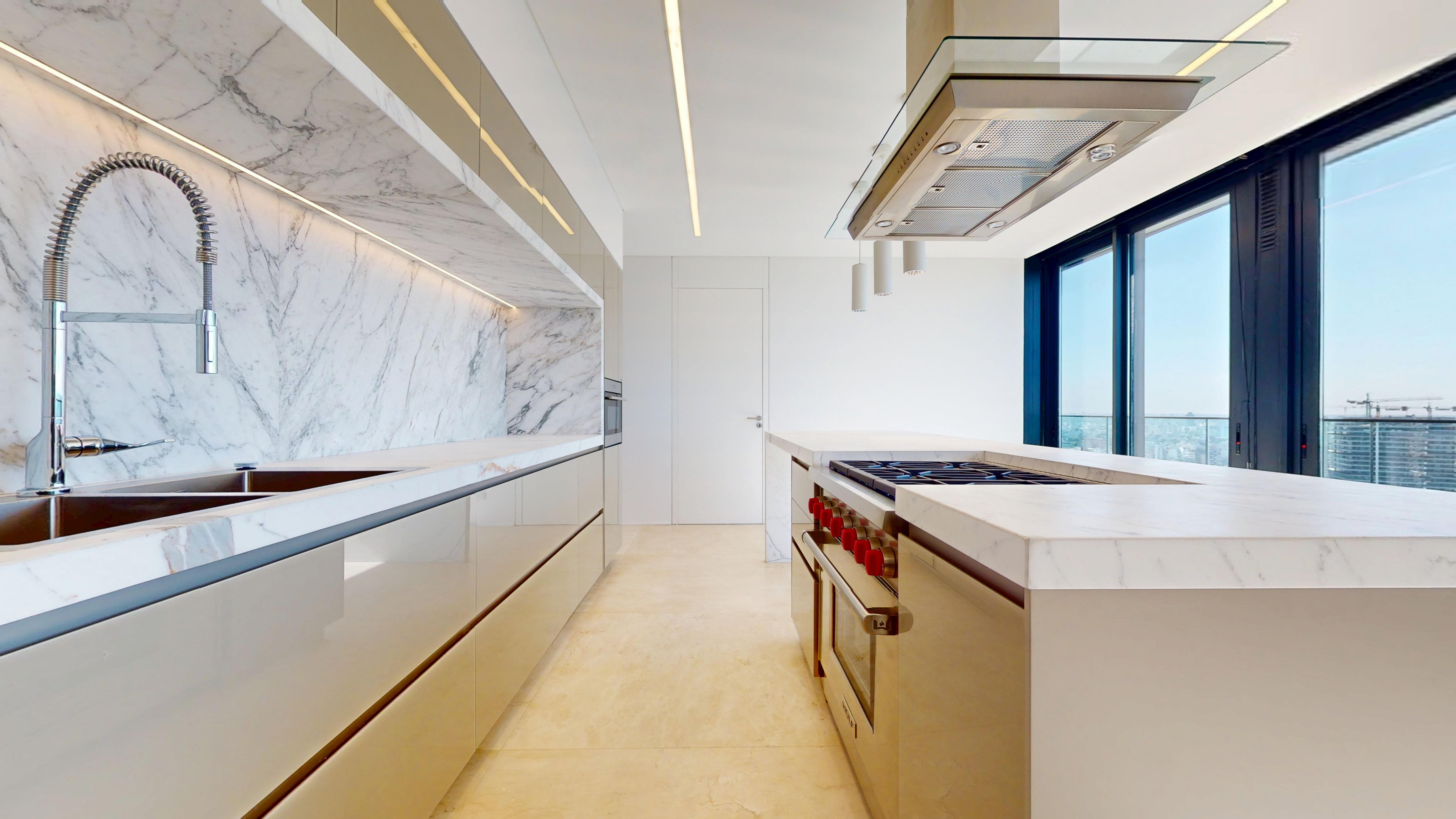 • Kitchen and bathrooms finished in Calacatta Oro marble