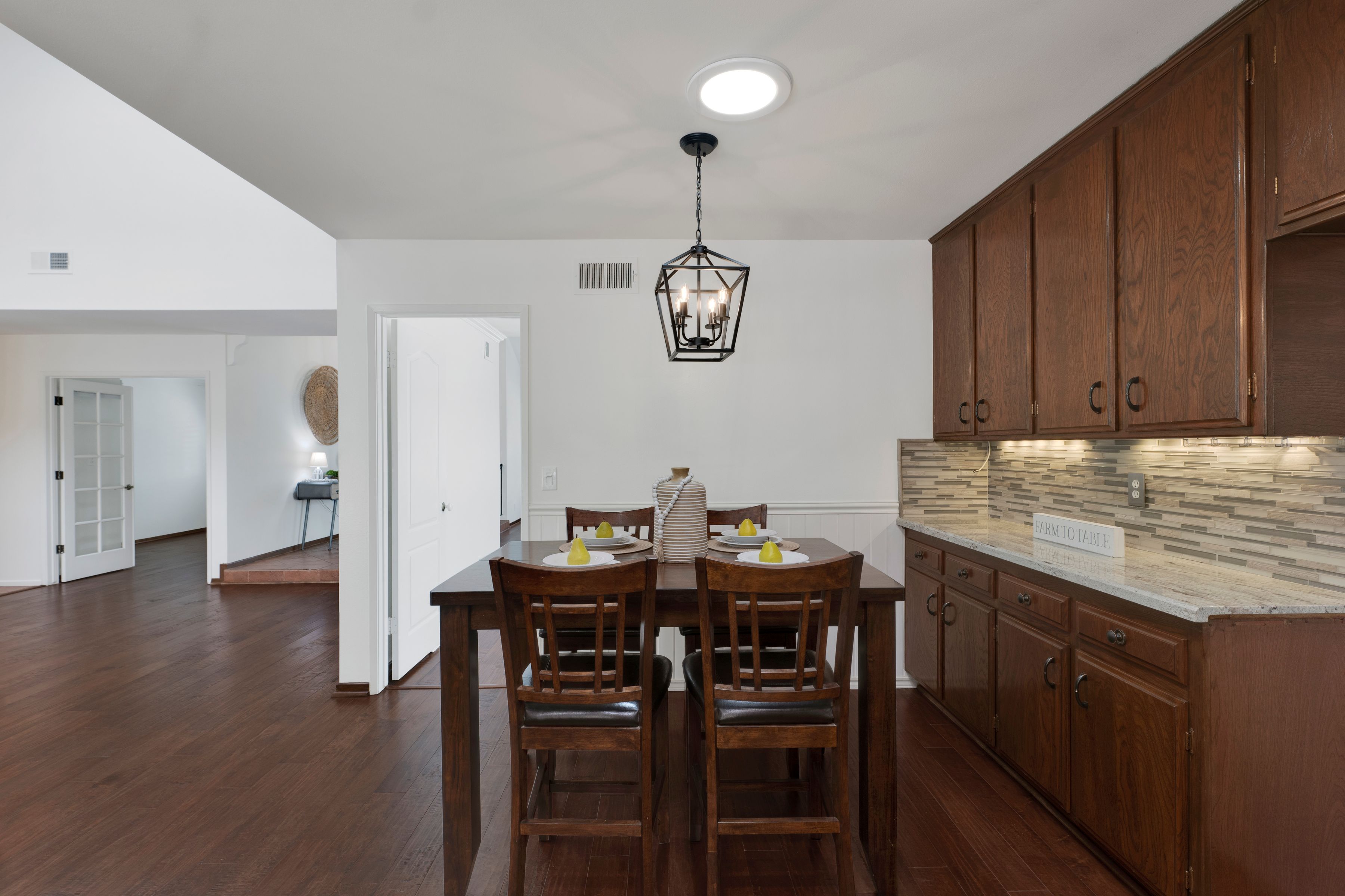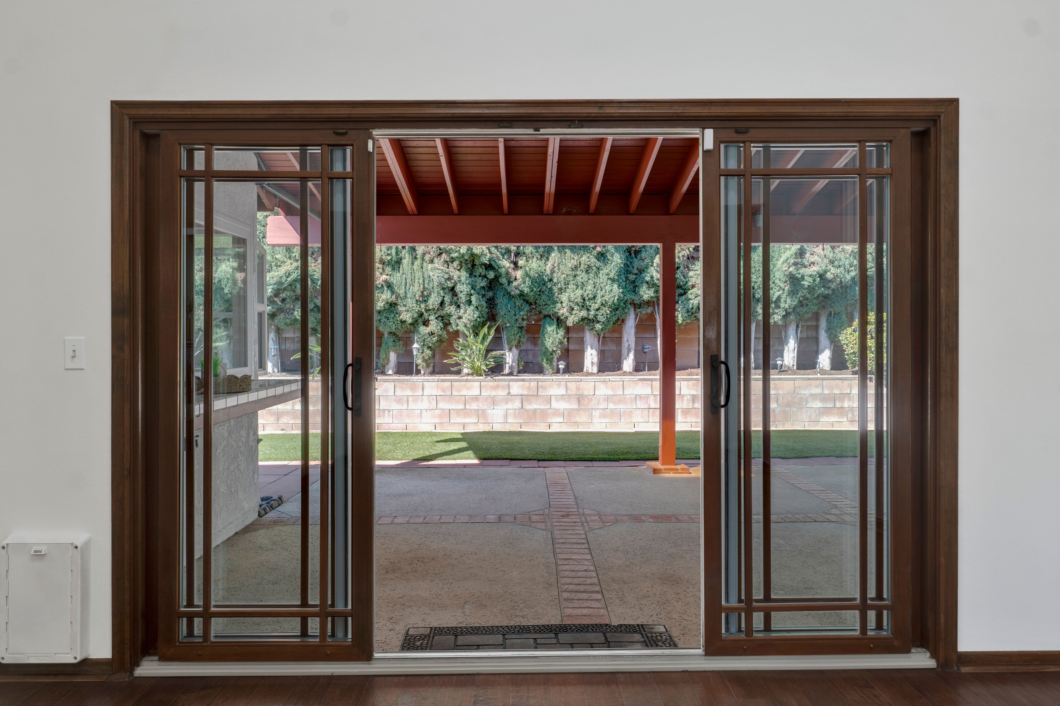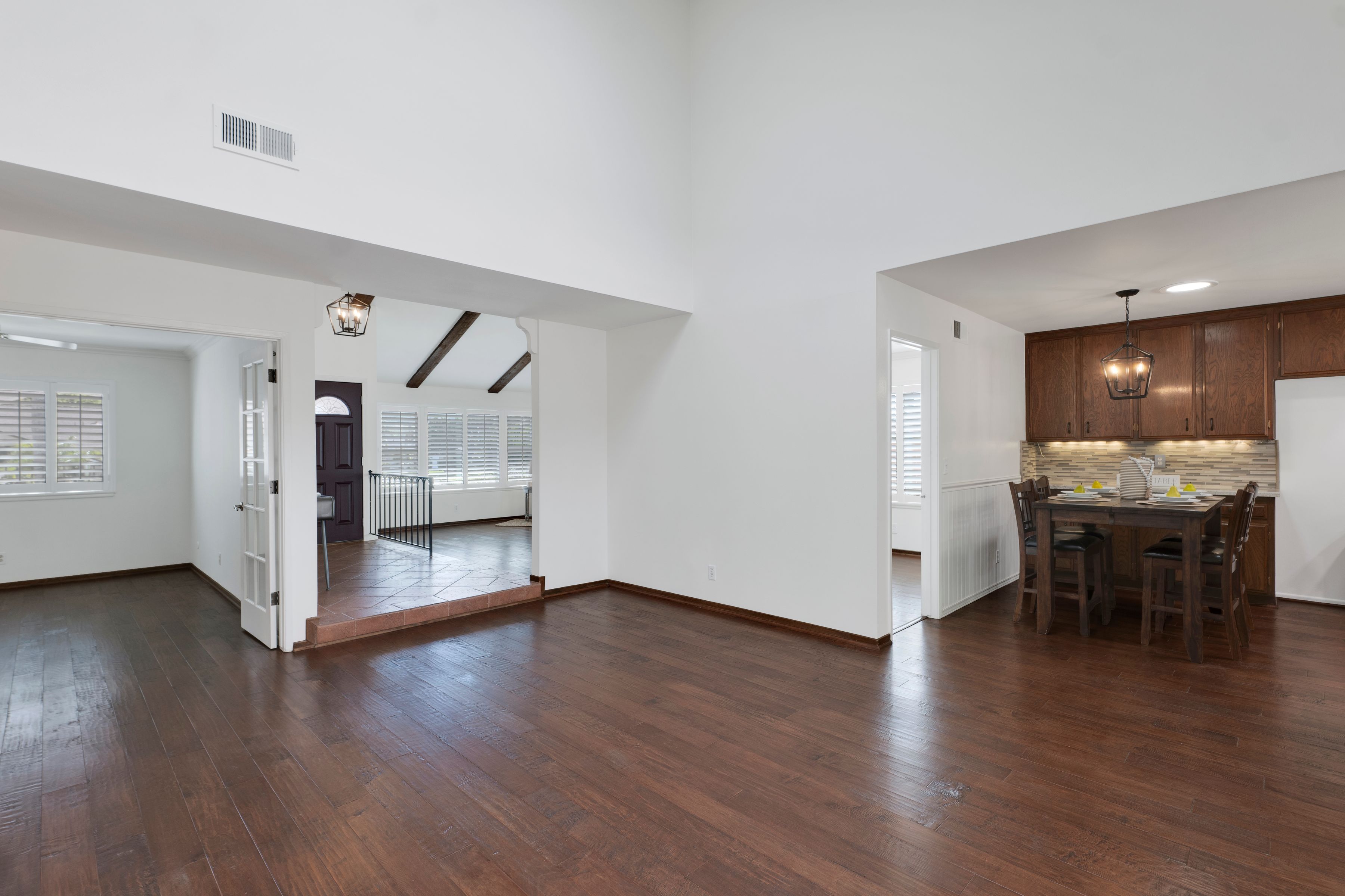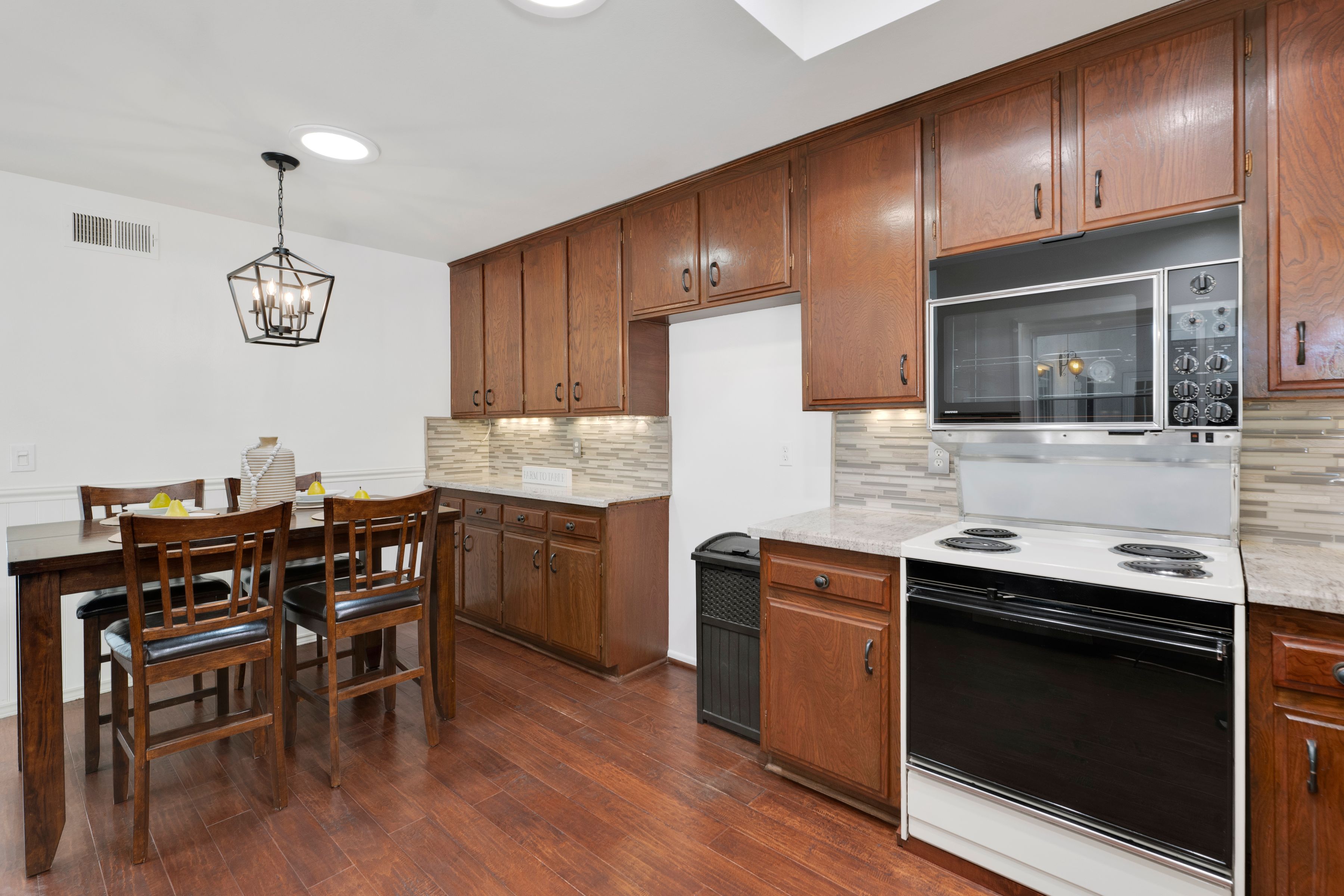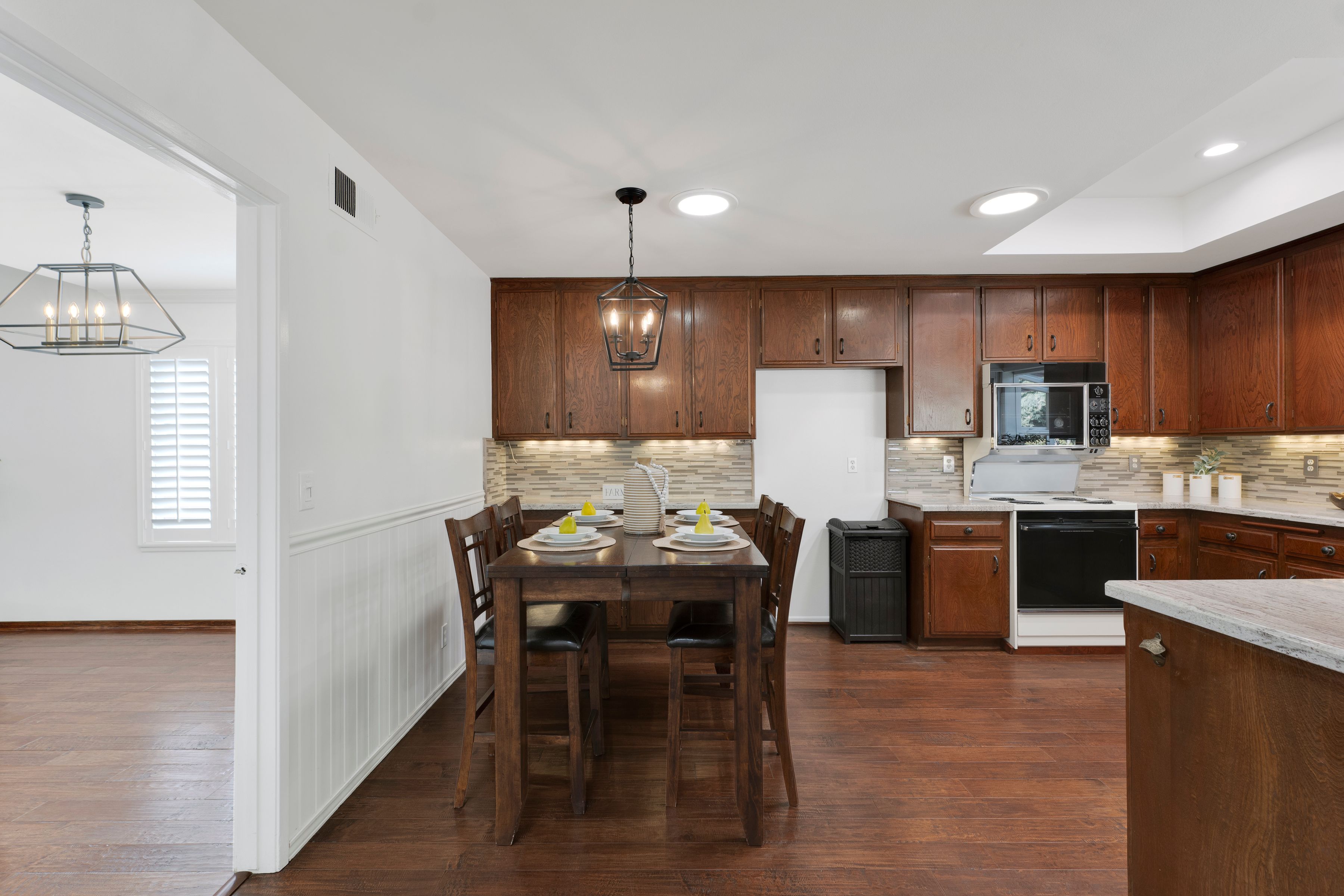 Welcome home to this beautifully updated single-story residence in the desirable east end of Simi Valley, where comfort, style, and exceptional curb appeal come together effortlessly. Surrounded by scenic mountain views, this charming home showcases thoughtful upgrades and inviting living spaces throughout. Step inside to a bright and airy living room featuring rich wood-like flooring, neutral designer paint, soaring vaulted ceilings with striking wood beams, and an oversized brick fireplace that serves as a stunning focal point-perfect for cozy evenings at home. A dramatic living room with expansive sliding doors opens seamlessly to the backyard, creating the ideal indoor-outdoor living experience. The light-filled kitchen is both functional and stylish, offering granite countertops, a charming garden window, and a spacious dining area perfect for casual meals and entertaining. Both bathrooms have been tastefully updated with granite and quartz countertops, modern finishes, and designer touches. Highlights include a walk-in shower with custom tile, an oversized sunken tub, and sleek vessel sinks. The generously sized primary suite features vaulted ceilings and direct access to the tranquil backyard, creating a peaceful retreat. Secondary bedrooms are equally spacious, complete with mirrored wardrobes and ceiling fans for year-round comfort. Additional upgrades include solar panels, dual-pane windows, plantation shutters, fresh interior paint, new ceiling fans, and elegant chandeliers that enhance the home's modern appeal and energy efficiency. Step outside to an oversized wood-covered patio- an inviting space perfect for entertaining or relaxing at the end of the day. The low-maintenance private yard offers ample room to enjoy outdoor living. A standout feature of this property is the expansive paved RV storage--ideal for all your recreational needs. Located near top-rated schools and nestled in one of the most desirable neighborhoods with no HOA, this home offers the perfect blend of beauty, comfort, and convenience.