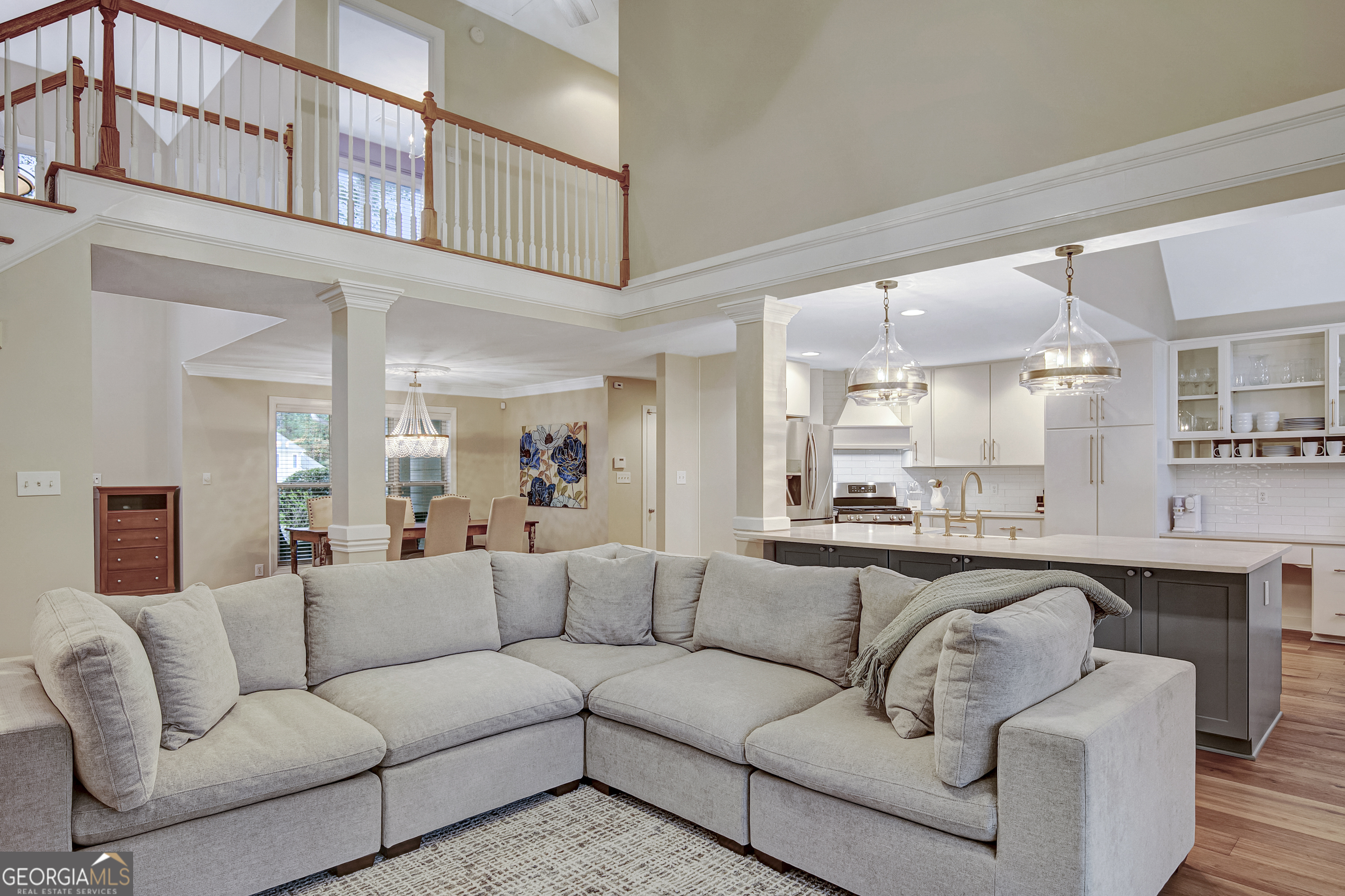 LOVINGLY RENOVATED! 5 bedroom/4 bath Peachtree City home in the desirable Avalon Park subdivision. This gem is bright, inviting and ready for entertaining! Rare find with both the PRIMARY AND A GUEST BEDROOM/OFFICE on the main level. Perfectly situated on an acre cul-de-sac lot in the MCINTOSH High School district. Highlights include a recent total kitchen transformation with Taj Mahal Quartz countertops, tile backsplash, new appliances and farmhouse sink. Dramatic two story vaulted family room opens to the kitchen, dining room and the spacious sunroom. New engineered hardwood floor throughout main level, new interior and exterior paint, new fixtures, new roof, new carpet and much more. Upper level has three additional bedrooms, two of which share a jack-n-jill bath and one enormous bonus/bedroom with it's own private full bath. Additional home features include a welcoming front porch, two car oversized garage and a separate GOLF CART GARAGE. Outdoor living is a dream come true with a cozy stone fireplace on the extended patio. Oversized outbuilding will hold all your lawn equipment and acts as extra storage. Jump on the golf cart for a quick ride to schools, shopping and parks as this home is conveniently located near all amenities. Avalon Park is a non-HOA neighborhood of custom built homes. This is a must see!