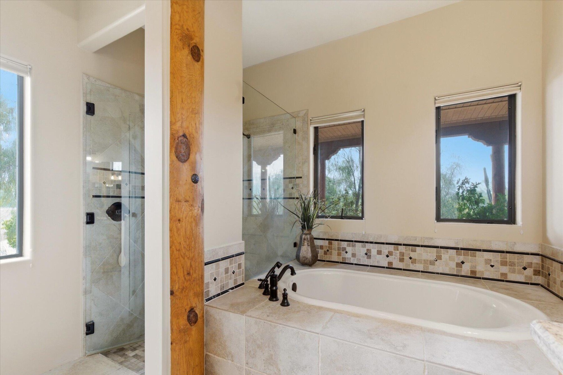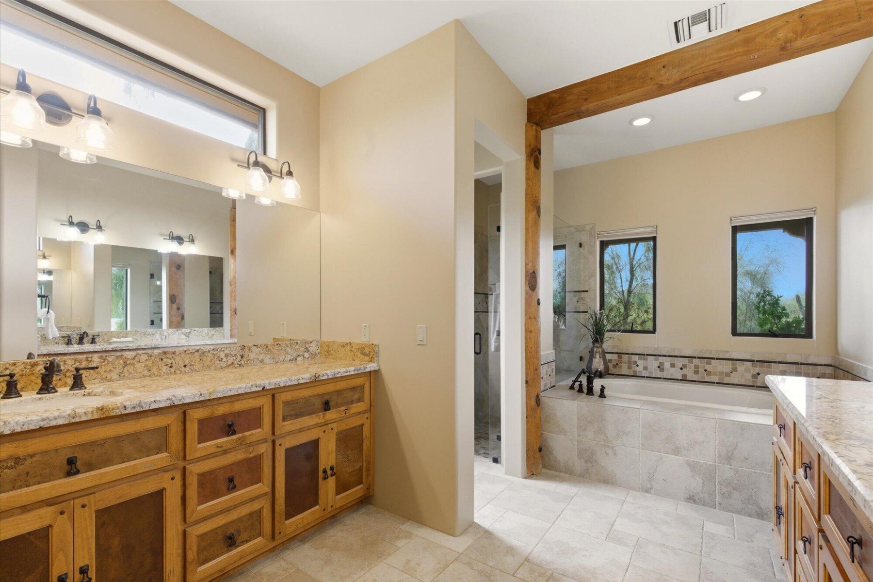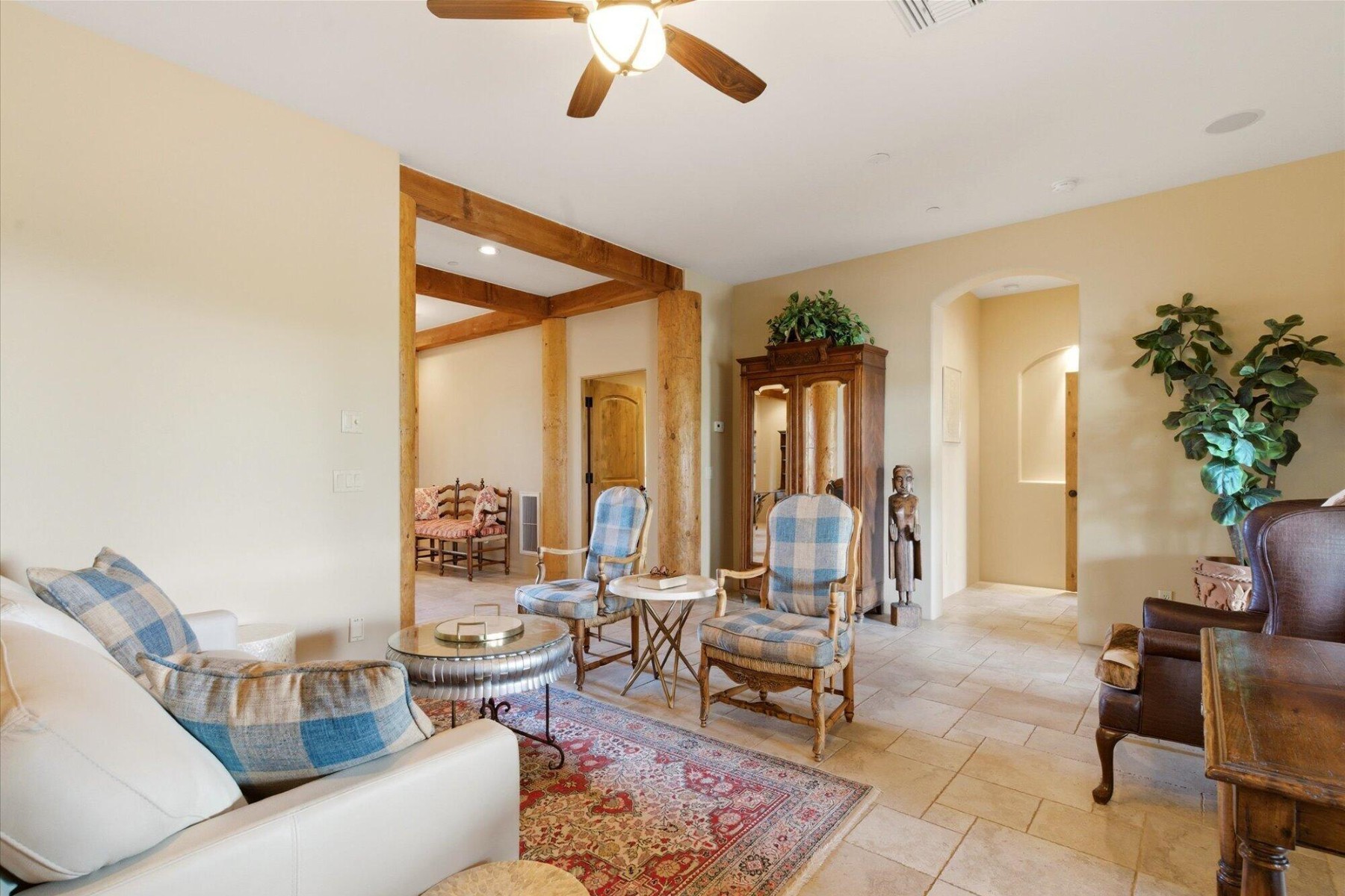 The backyard is designed for ultimate outdoor living with a massive 1,800 sf covered patio featuring wood Vegas, a stone-accented fireplace, fountain and ceiling fans to create a comfortable and stylish retreat. A resort-style swimming pool completes the entertaining space. For horse enthusiasts, this property offers a 4-stall shed-row barn by BarnMaster, complete with tack room, automatic waterers and insulated roof as well as turn-outs and riding arena and easy access to nearby trails.The property also features an attached multi-generational dwelling unit, ideal for extended family or guests. It includes 2 bedrooms, a 2nd kitchen and its own private entry.Equipped with Tesla Solar Panels and a Powerwall 3, this home lowers energy costs and Two SOURCE Global hydropanels generate distilled drinking water from the air, adding an innovative touch to your sustainable lifestyle.This estate offers a rare combination of luxury, sustainability, and equestrian features with close proximity to highways and amenities.