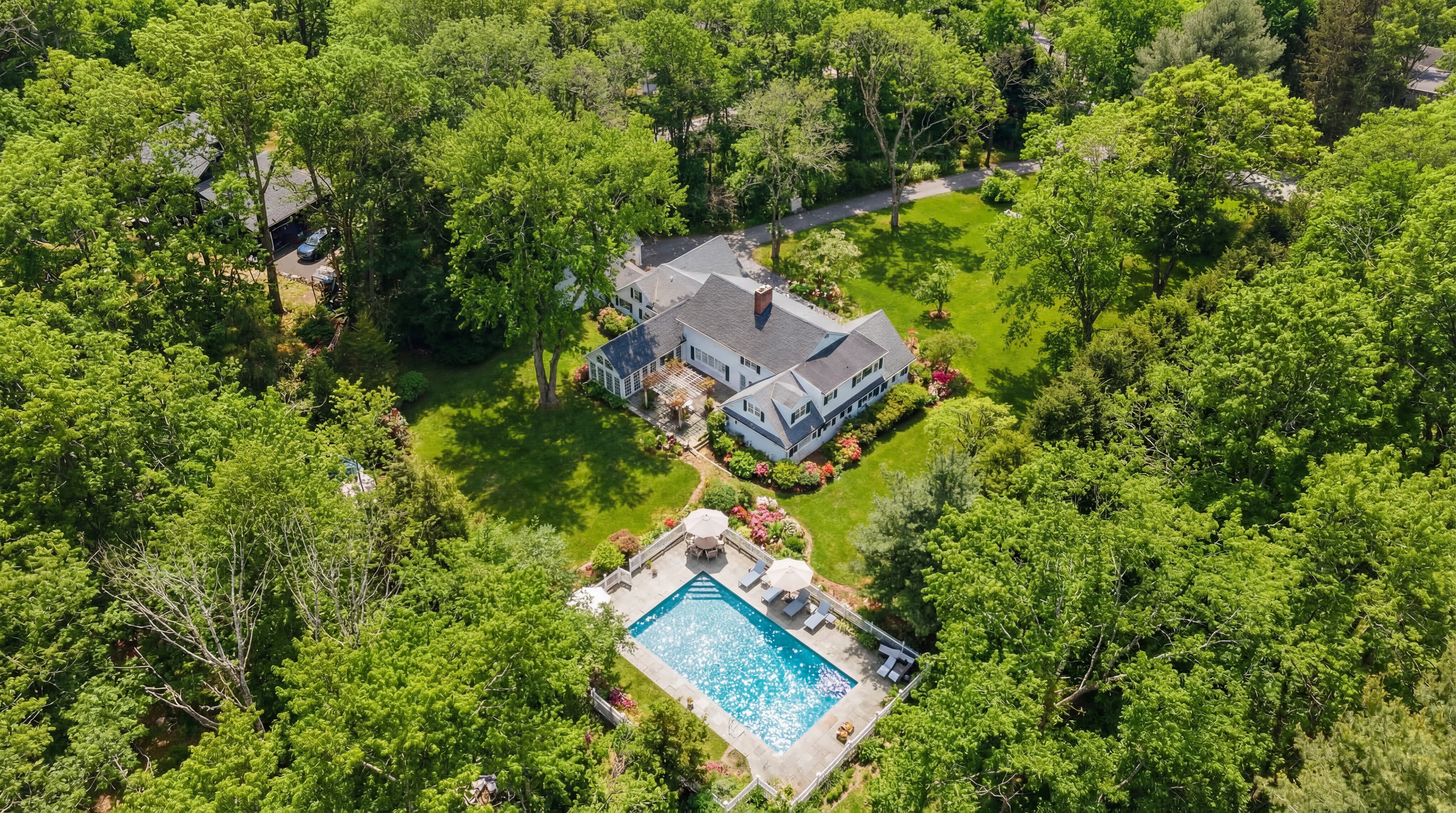 Privately gated and set far back from a quiet cup-de-sac road, this exceptional property offers privacy, beauty and a truly special sense of peace!