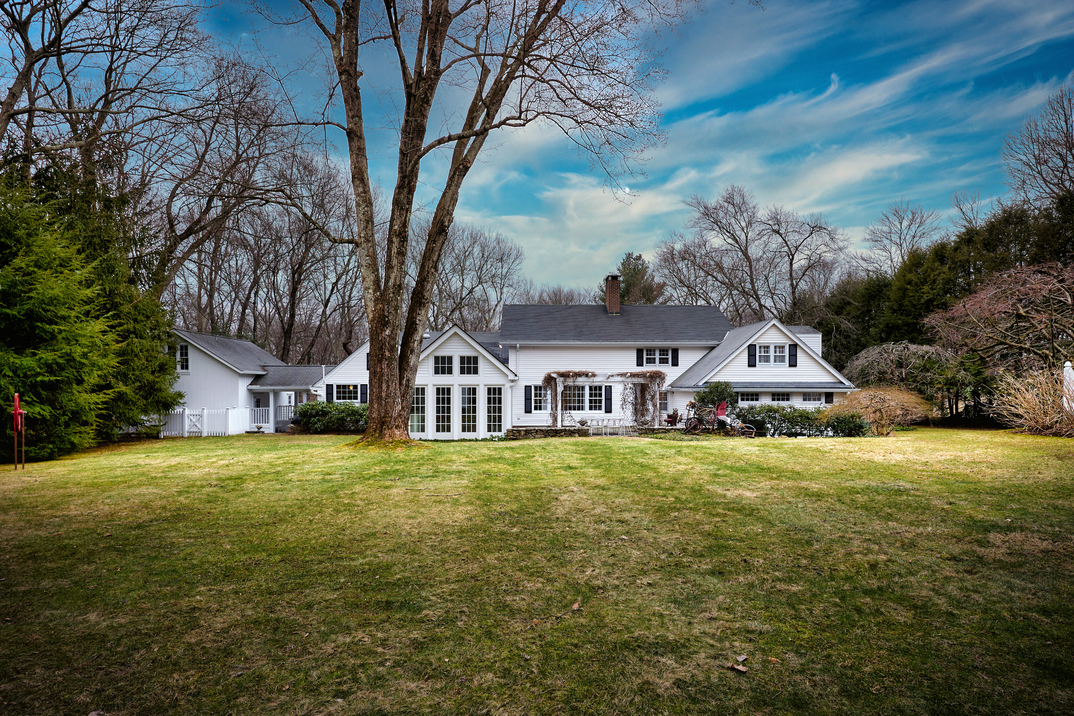 A rare and enchanting converted church, reimagined as a beautiful country home set on two private acres in the heart of Pound Ridge. Originally a small chapel where the local community once gathered, the home still retains elements of its early history, including soaring ceilings in the original sanctuary space that create a striking sense of volume and light.