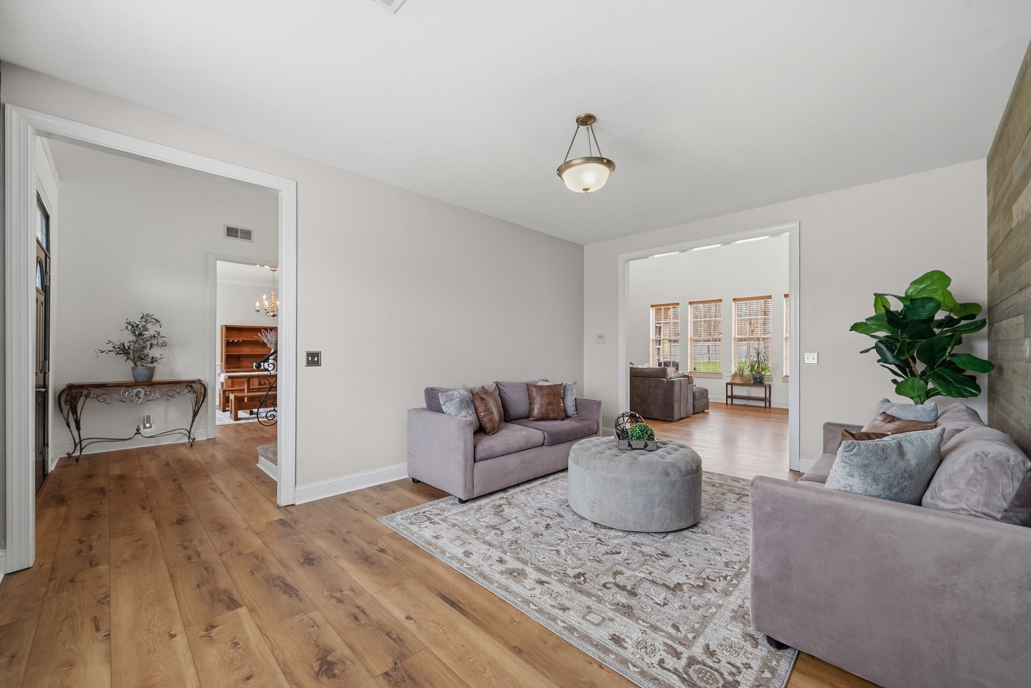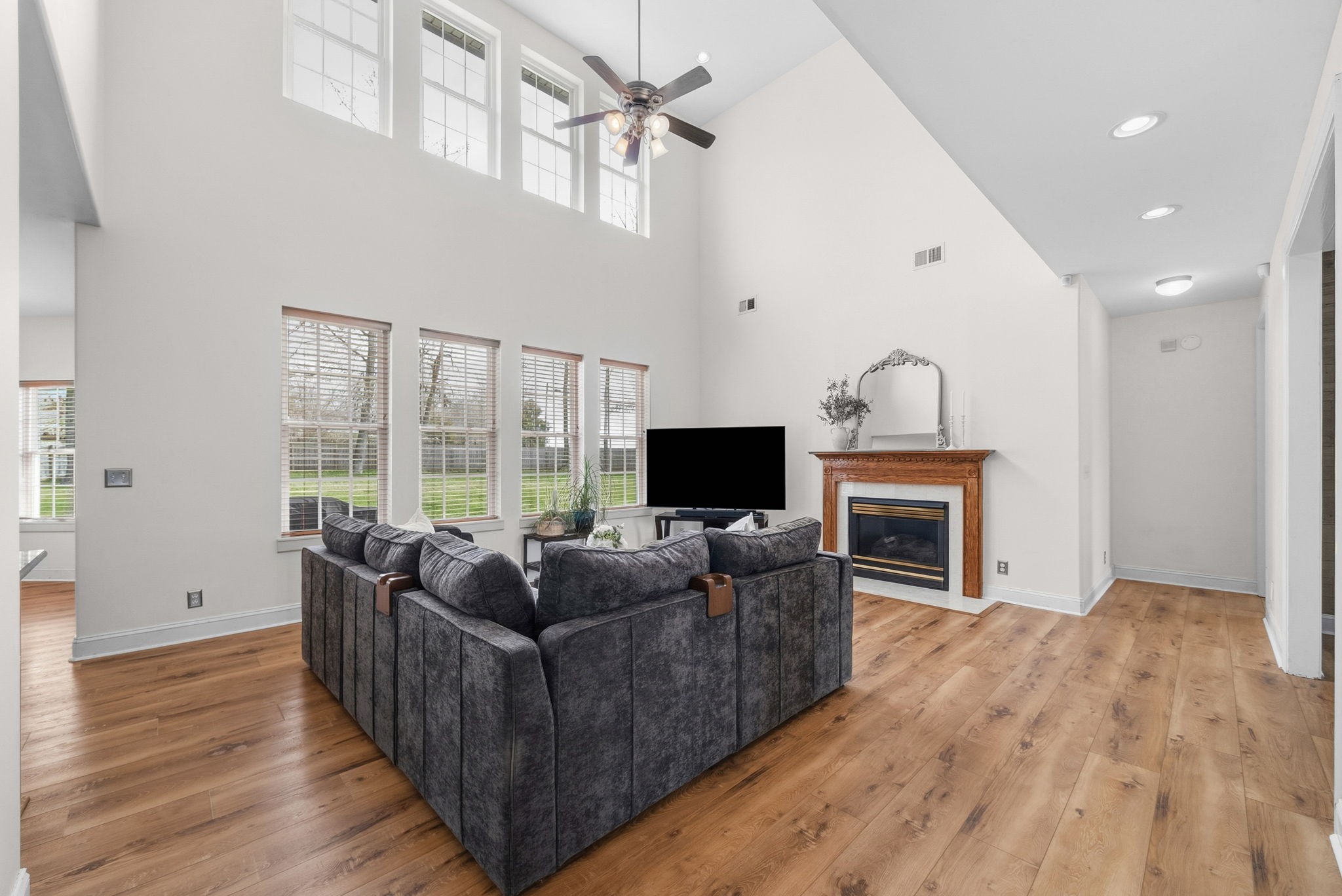 Welcome Home to Sheffield Woods! This spacious executive home offers a rare, oversized, 3/4 acres lot in the heart of Sango with a layout that feels both comfortable and inviting from the moment you walk through the door. The foyer opens into a formal dining room and leads you into a bright living area with soaring ceilings and beautiful natural light that fills the space. The kitchen features a gas range, double ovens, a large bay window and an eat-in area that makes the perfect spot for morning coffee or casual meals. The flow between the kitchen and living area makes everyday living easy and gives you plenty of space for entertaining friends and family. The laundry room is roomy with a utility sink and the washer and dryer convey with the home. The primary suite is conveniently located on the main floor and offers double closets along with a custom bathroom designed for comfort and functionality. The generous floor plan throughout the home provides flexibility for both everyday life and hosting gatherings. Plus, there is a large unfinished space above the garage that is great for storage and the possibility to finish out for even more living space. Outside, you'll find a large, level fenced backyard with plenty of room for entertaining, gardening, pets, or simply enjoying your own private outdoor space. Located in the desirable Sheffield Woods community, this home offers convenient access to schools, shopping, dining, parks, and I-24 for an easy commute to Nashville.