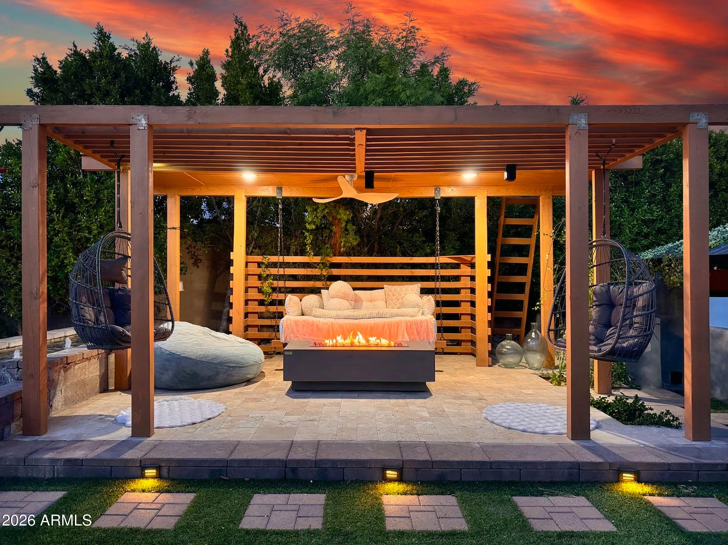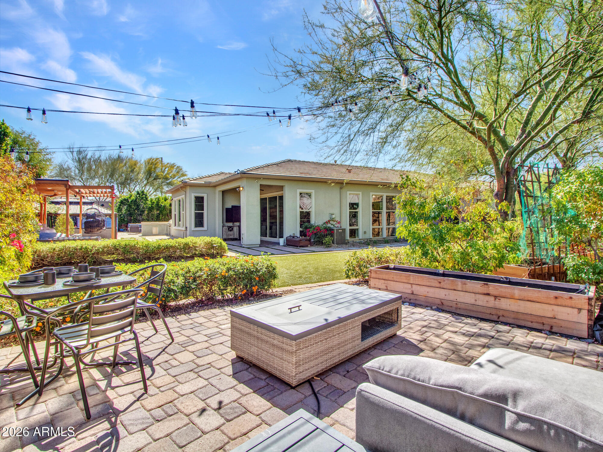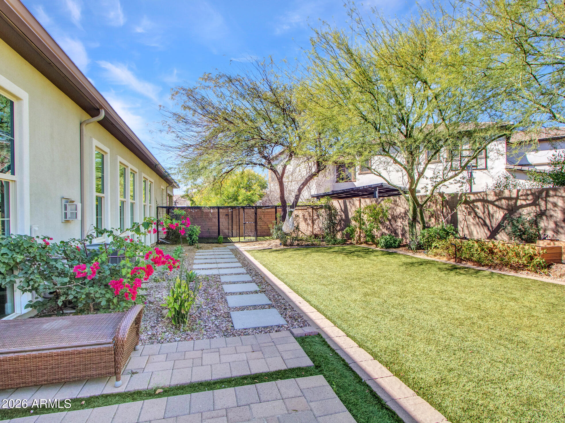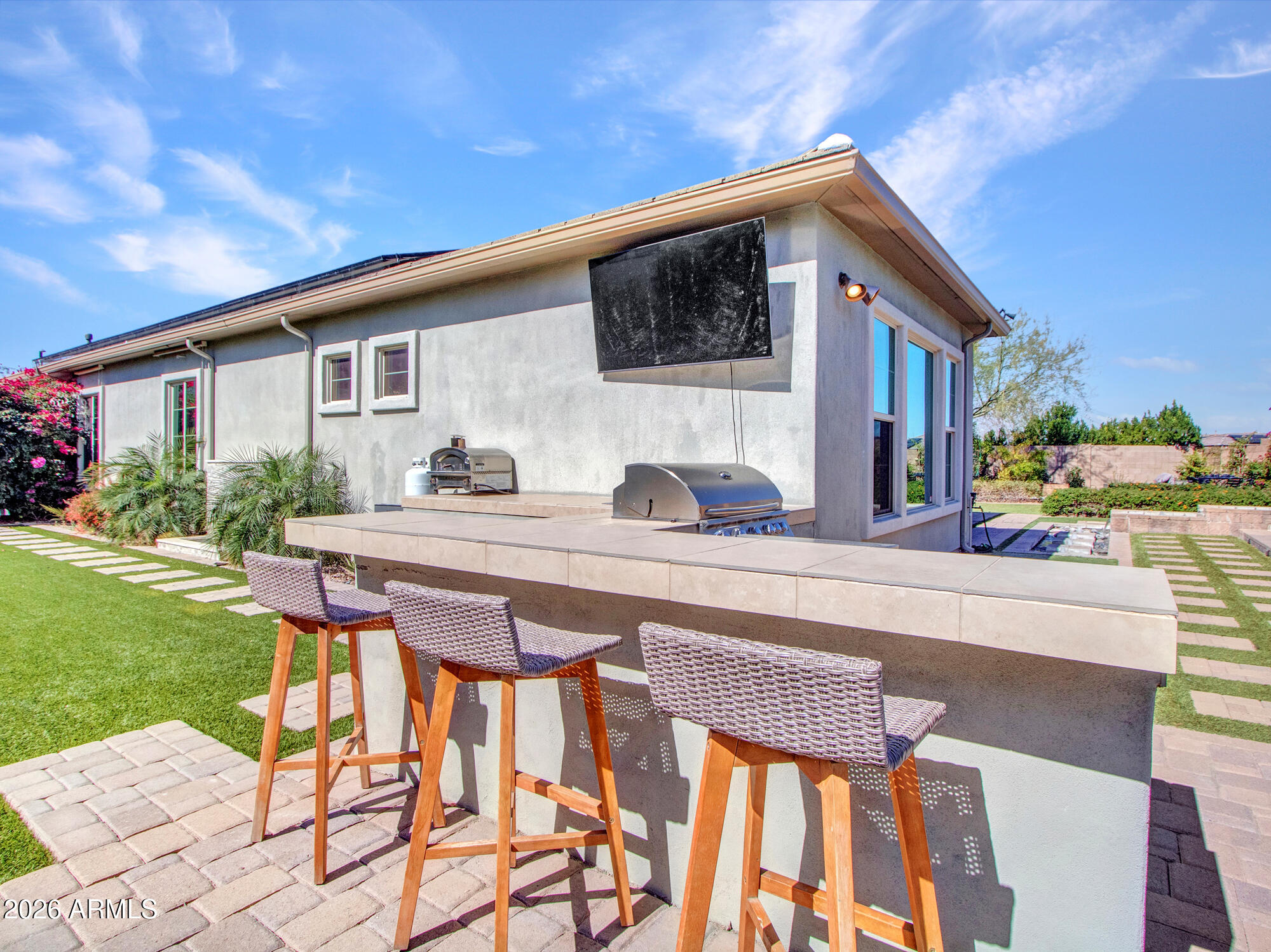 Wow--this one truly stands out. Landlord pays Solar lease! Set on an oversized corner lot, this upgraded luxury home is packed with thoughtful details inside and out. The kitchen is a total showpiece with an oversized quartz island, gas cooktop, breakfast bar, abundant cabinetry, and a large pantry. A wall of windows fills the home with natural light, while the living area offers a cozy fireplace, porcelain tile feature wall, and easy access to the patio for seamless indoor-outdoor living. The split-bedroom layout includes 3 bedrooms, 2.5 baths, and even a secret library room for a fun and unexpected bonus. The oversized primary suite looks out to the stunning backyard, and the 2.5-car garage offers plenty of storage. Smart home perks include Nest cameras, an Ecobee WiFi thermostat, Genie WiFi garage opener, and Pentair pool controls. Out back is where this home really shines--travertine gazebo, 3 outdoor fireplaces, surround-sound movie setup, custom dog run, hot tub, built-in BBQ with cooler, water feature, and a saltwater spool that both heats and cools. Add in rooftop solar and privacy from the corner lot, and this home checks every luxury box.