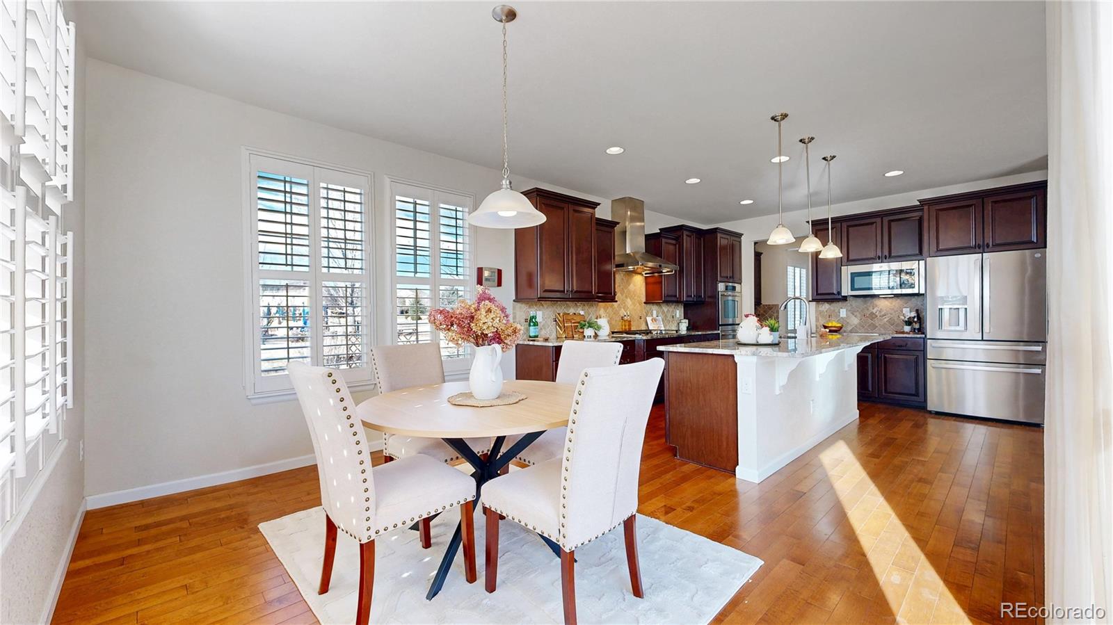 Positioned within one of Erie's established residential enclaves, this home presents a setting defined by balance. Where daily convenience meets Colorado's open-sky backdrop and access to both Boulder and Denver corridors remains within practical reach. Arrival is marked by a quiet streetscape and a sense of neighborhood continuity, leading into an interior that unfolds with a clear emphasis on livability and natural flow. The entry introduces the home with a comfortable transition into the main living areas, where sight lines extend across connected spaces designed to support both everyday routines and more intentional gatherings. The primary living area anchors the home, arranged to capture natural light throughout the day while maintaining a sense of cohesion with adjacent dining and kitchen zones, allowing movement between spaces to feel intuitive rather than segmented. The kitchen is positioned as a central hub, offering functional workspace and proximity to both living and dining areas. As the layout progresses, private spaces are set apart in a manner that supports both quiet retreat and flexibility of use, with the primary suite offering a more secluded setting within the home's overall footprint, while additional rooms accommodate a range of needs without disrupting the home's overall rhythm. Secondary spaces, whether used for work, storage, or transitional movement, are integrated in a way that supports practical living without drawing focus away from the primary areas. Beyond the interior, the property benefits from its placement within Erie, a community known for its expanding infrastructure, access to regional trail systems, and proximity to local parks and open spaces that encourage outdoor activity throughout the year. Nearby amenities, including retail corridors, dining options, and commuter routes, contribute to a lifestyle that remains connected without feeling dense or overbuilt.