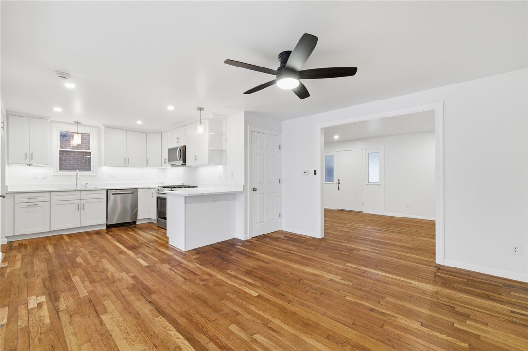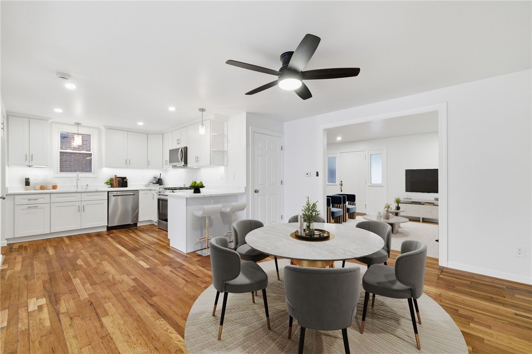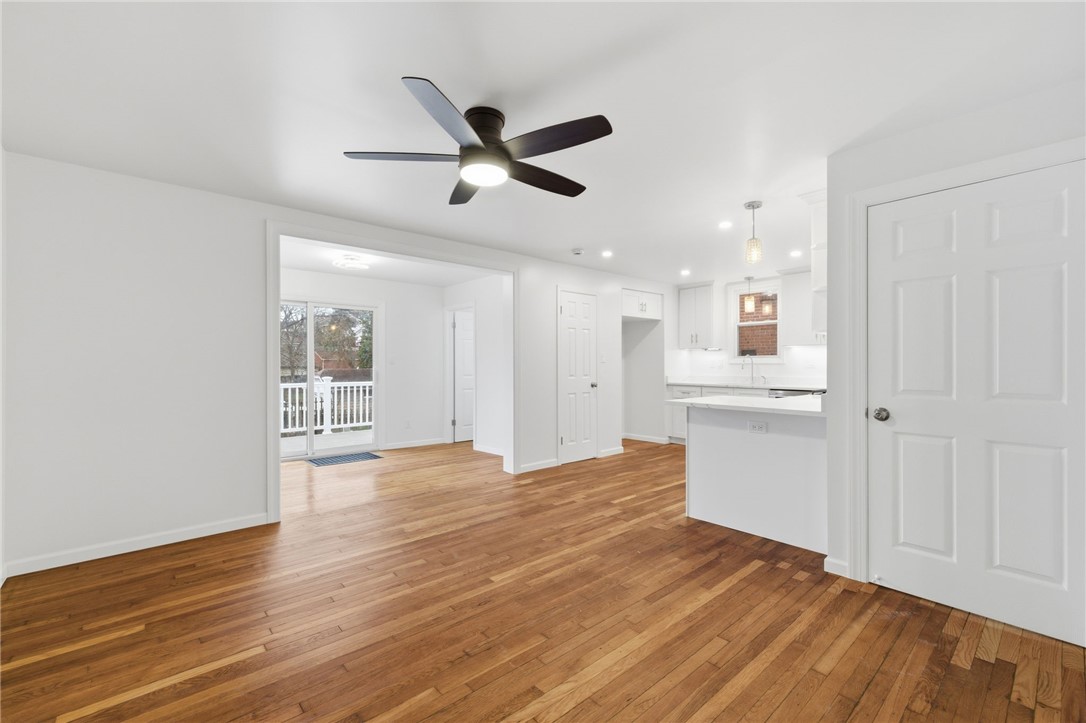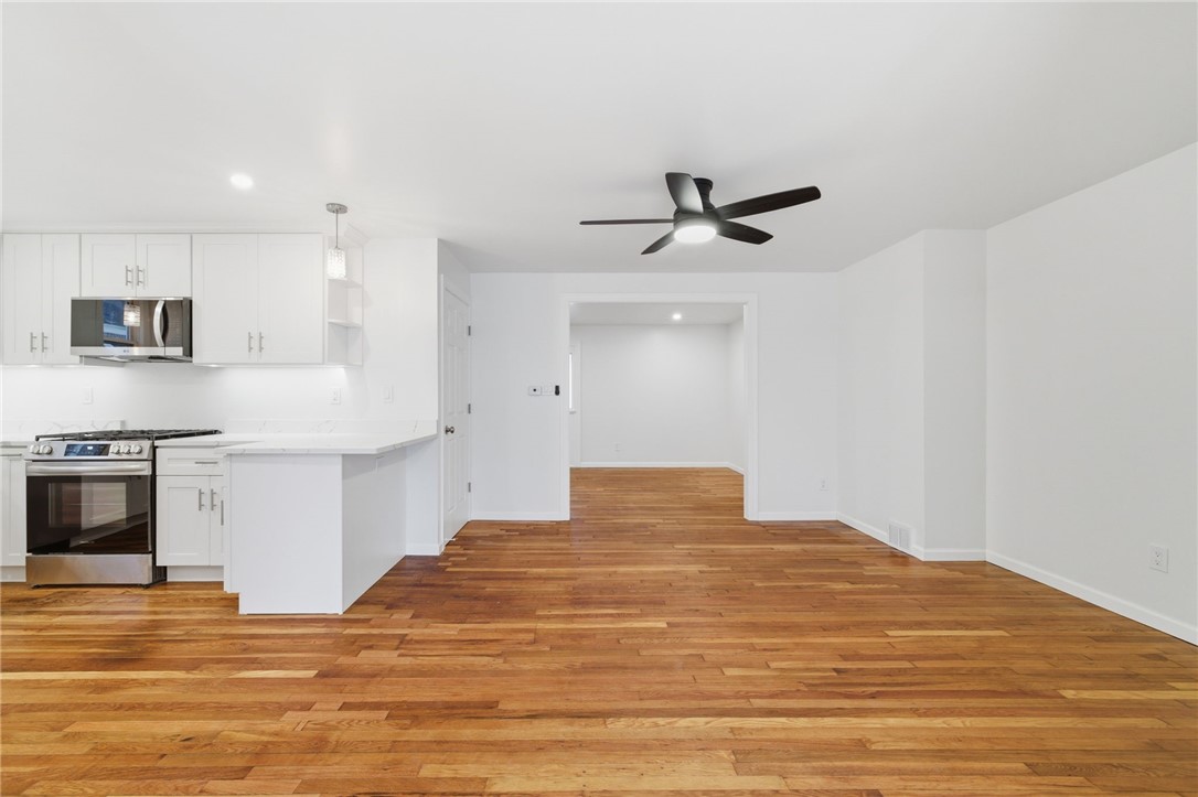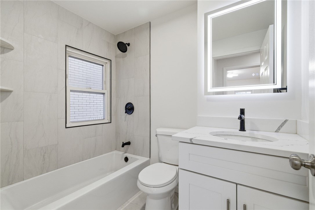 Beautifully renovated home with new, clean white kitchen cabinets and quartz countertops. Original hardwood flooring throughout has been refinished to a stunning shine! Two full bathrooms upstairs and half bathroom on the main level have been updated to include matching quartz vanity tops, LED backlit mirrors, and sharp black matte fixtures. The attic is usable flex space for office, game room, etc. The dry basement has another half bath, new washer & dryer, and plenty of space for storage. A spacious deck with new white railing offers additional outdoor entertaining space.