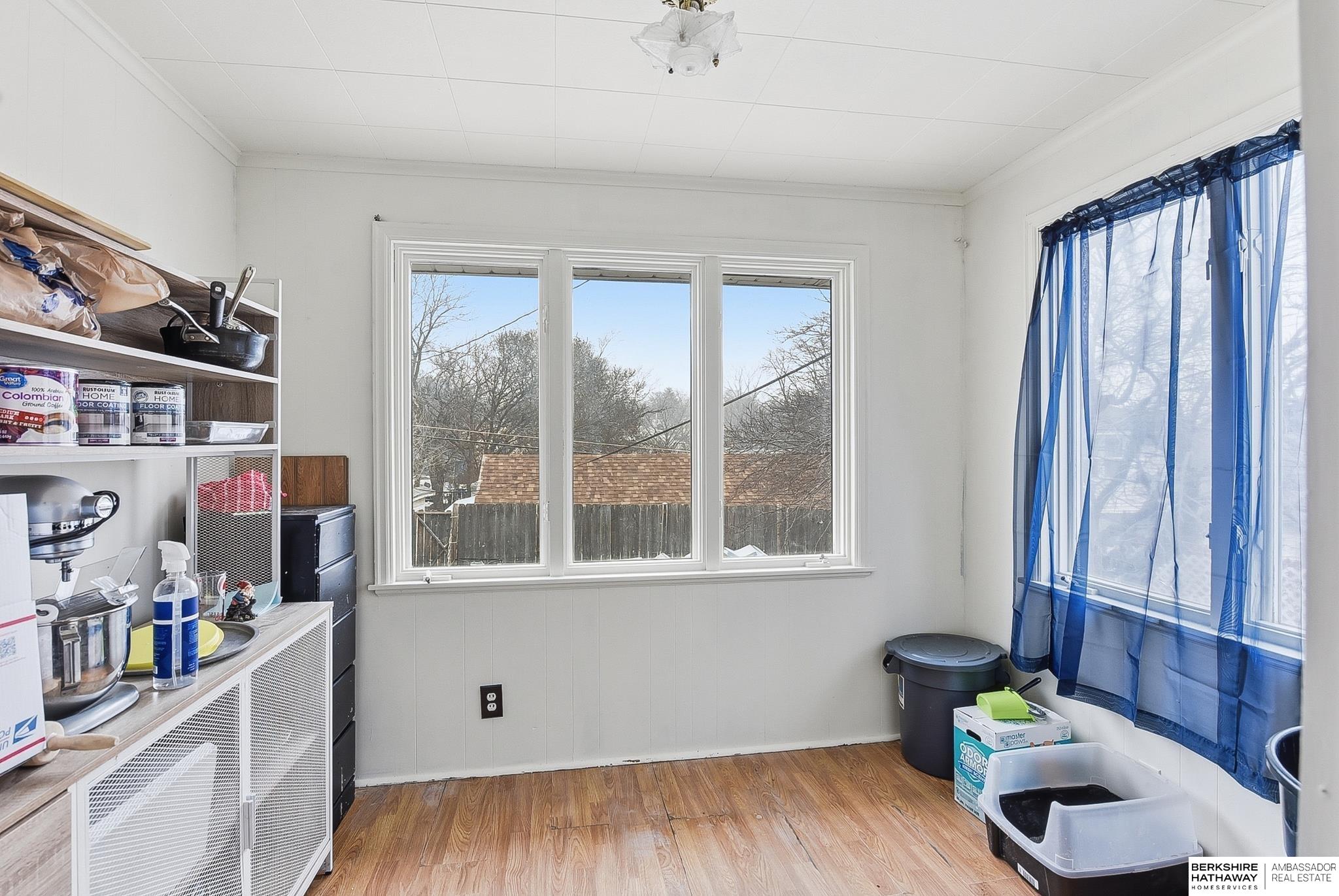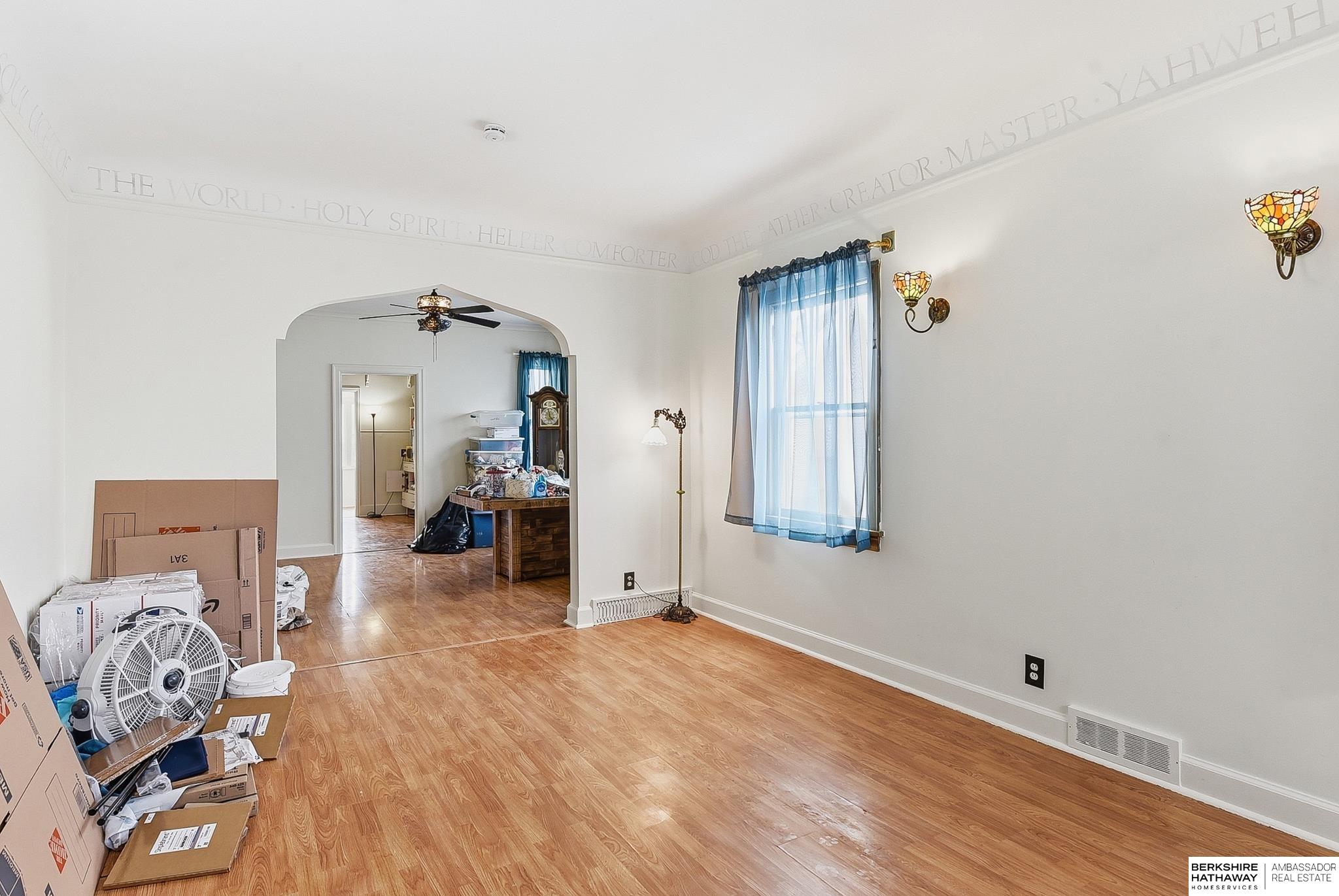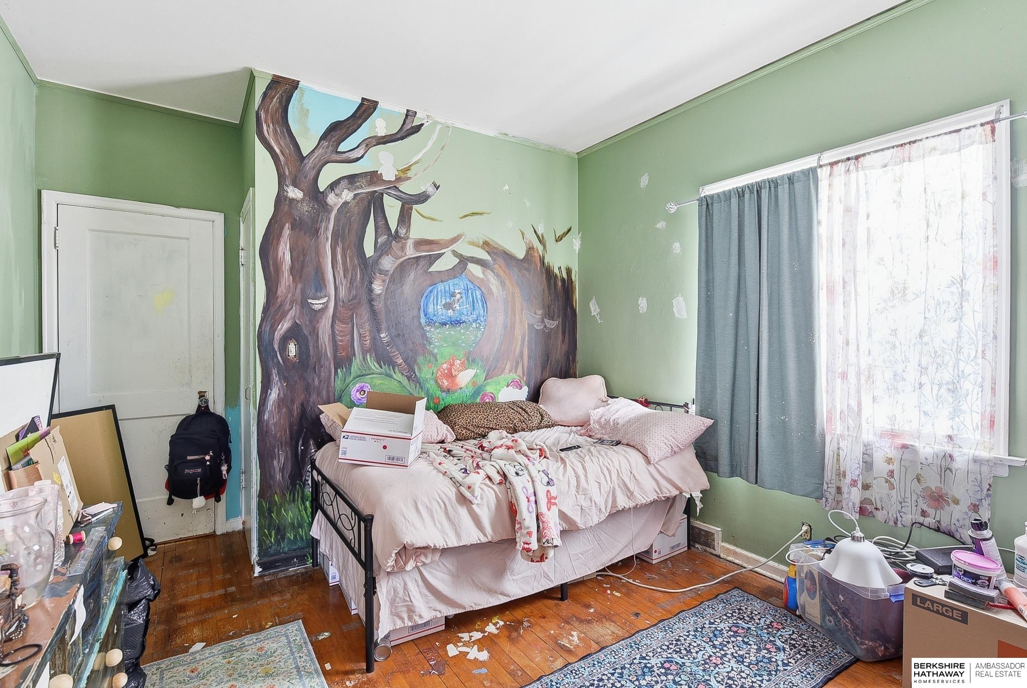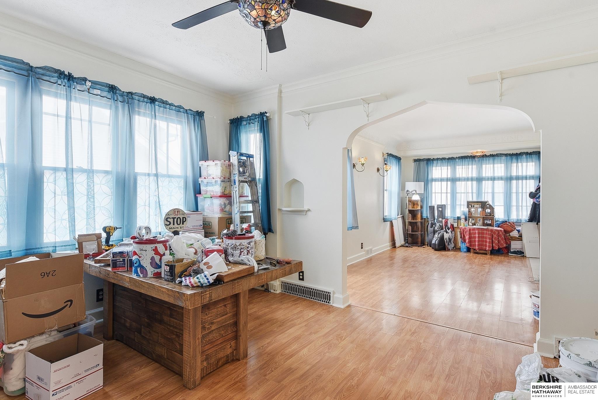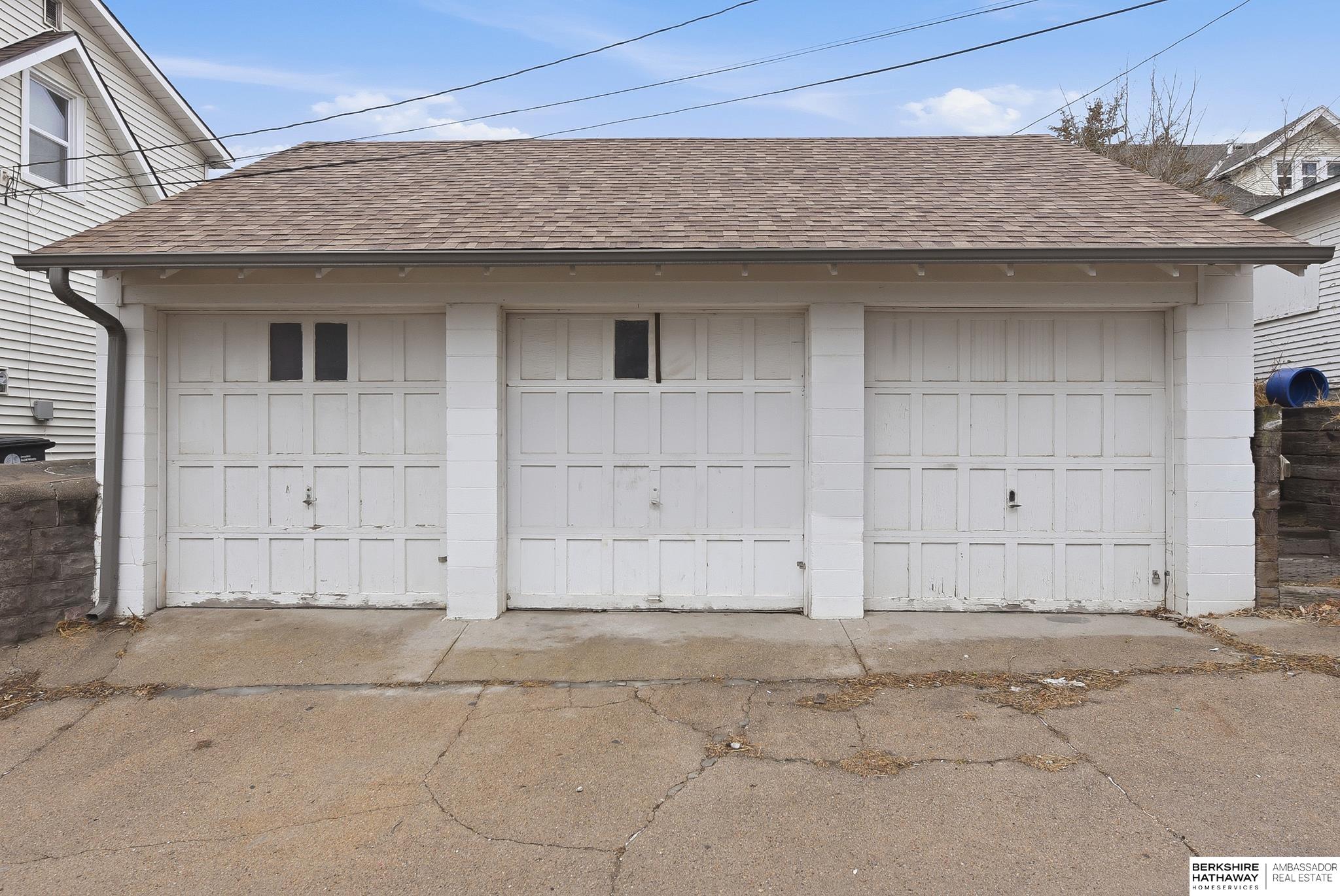 Charming 1.5-story home featuring 4 bedrooms, 3 bathrooms, and a rare 3-car detached garage with loft storage. Built in 1920, this home offers classic character with opportunity to add your own updates. Durable steel siding, a roof approximately 3 years old, and a newer water heater provide added peace of mind. Original hardwood floors are located beneath the current flooring and could be refinished to restore the home's historic charm. The second level includes built-ins designed for a kitchenette and could be easily converted into a separate living unit for extended household living, guests, or flexible space. The unfinished basement provides additional storage or future finishing potential. Additional main-level space offers a pantry and sunroom. A unique opportunity to own a character home with versatile living options and a hard-to-find 3-car garage - ideal for South Omaha buyers seeking space, multi-generational living, or investment potential. Property is being sold as-is.