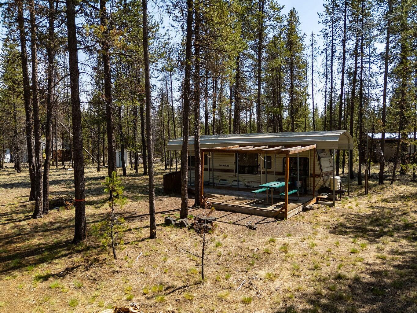 Level lot located in La Pine's Lazy River South on a paved road. Tucked into a secluded area with very low traffic, primarily accessed by surrounding residences, offering a quiet and private setting. Conveniently located near Quail Run Golf Course with quick access to the highway for easy travel to La Pine or Bend. Great opportunity to own in a clean, friendly neighborhood, whether you're planning to build, create a seasonal retreat, or hold as an investment. Travel trailer included in sale.