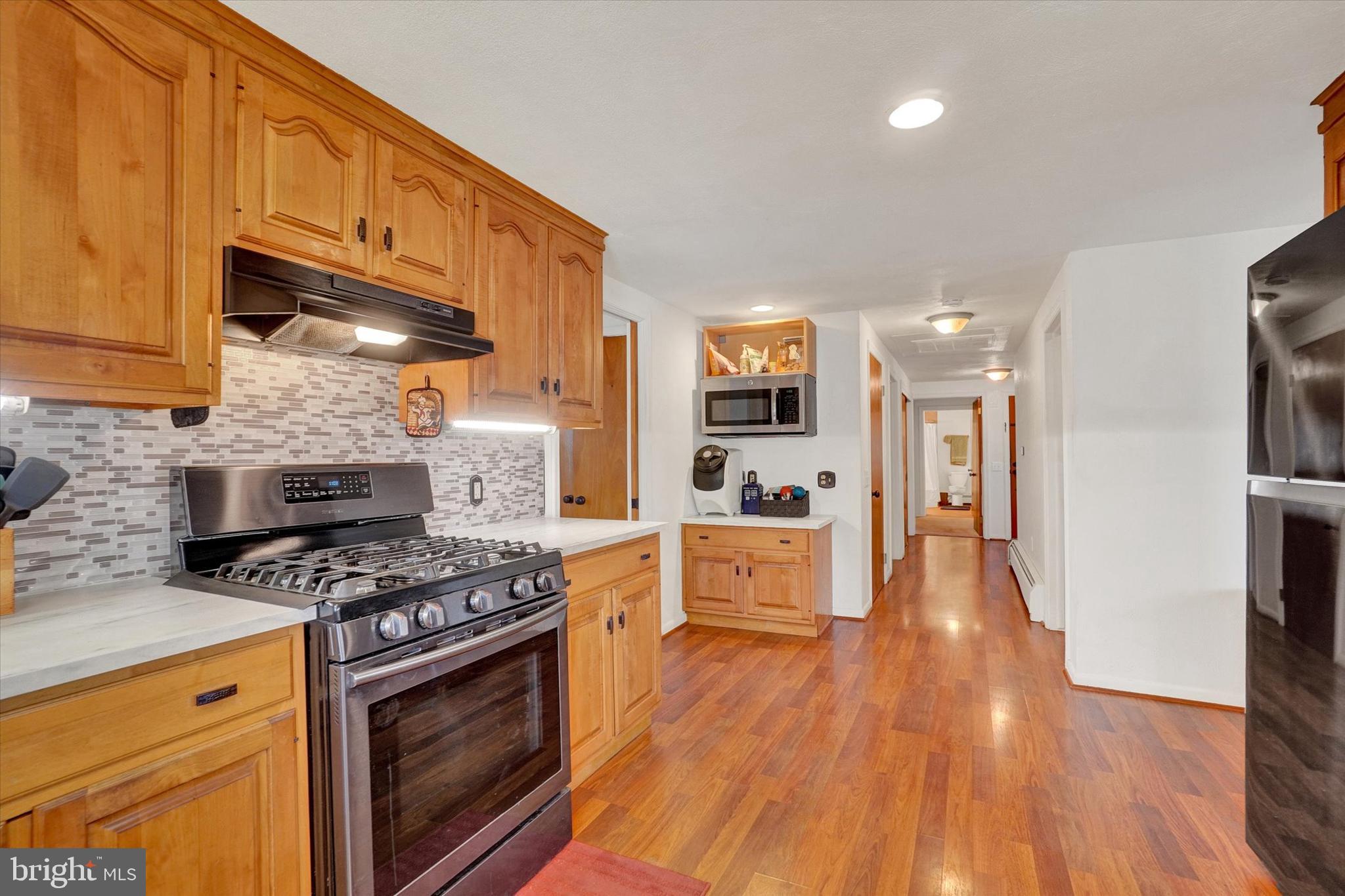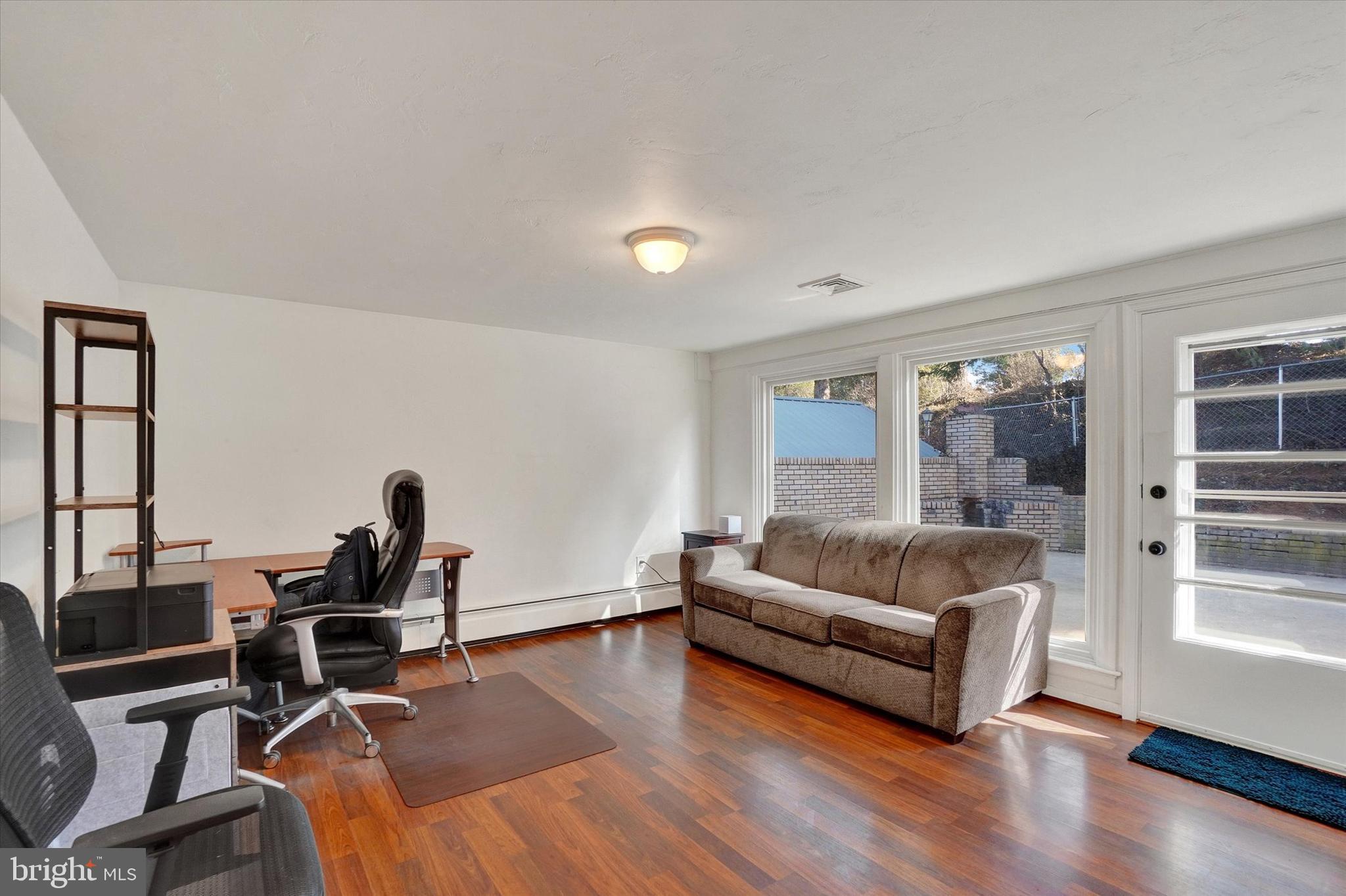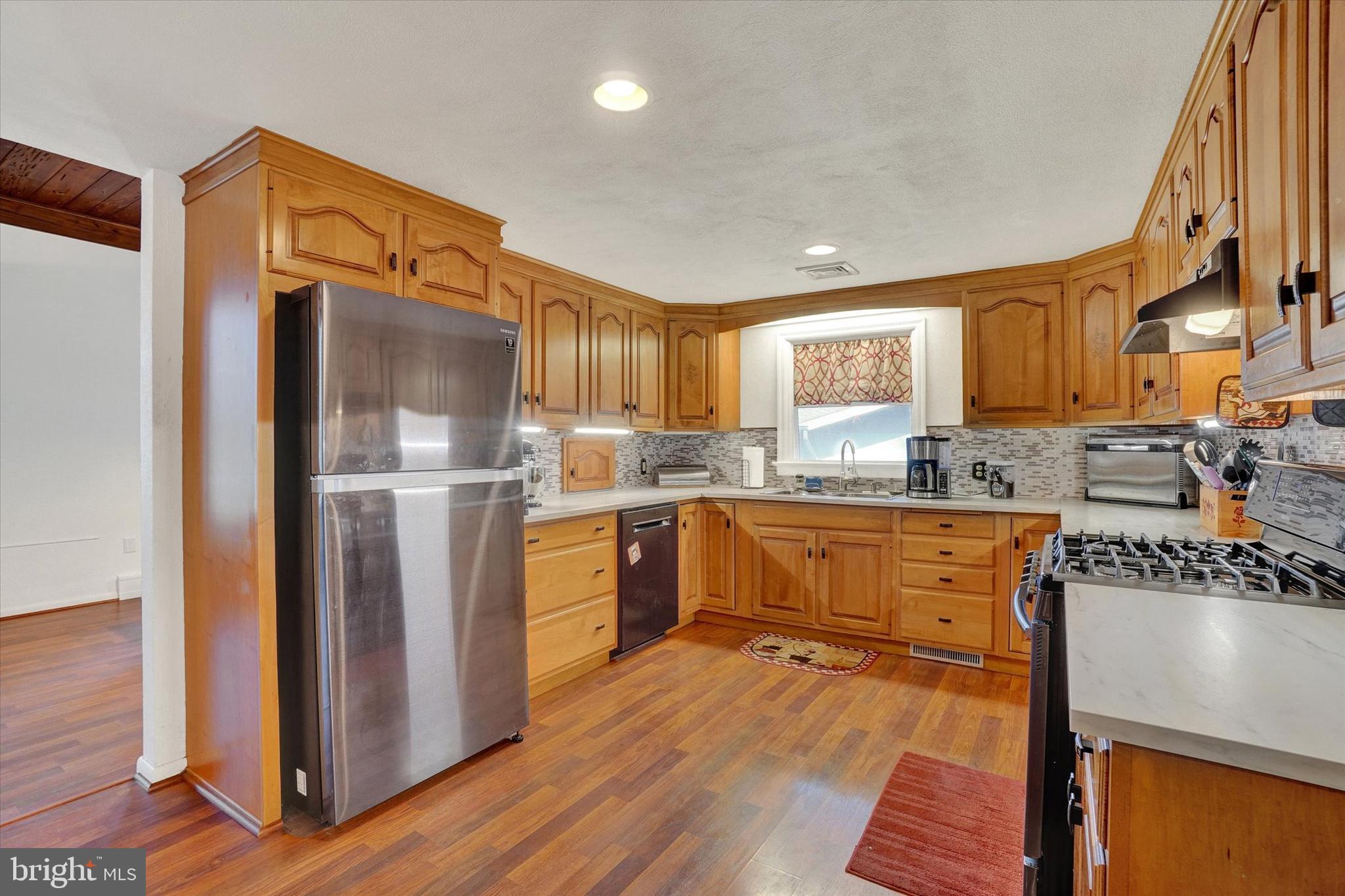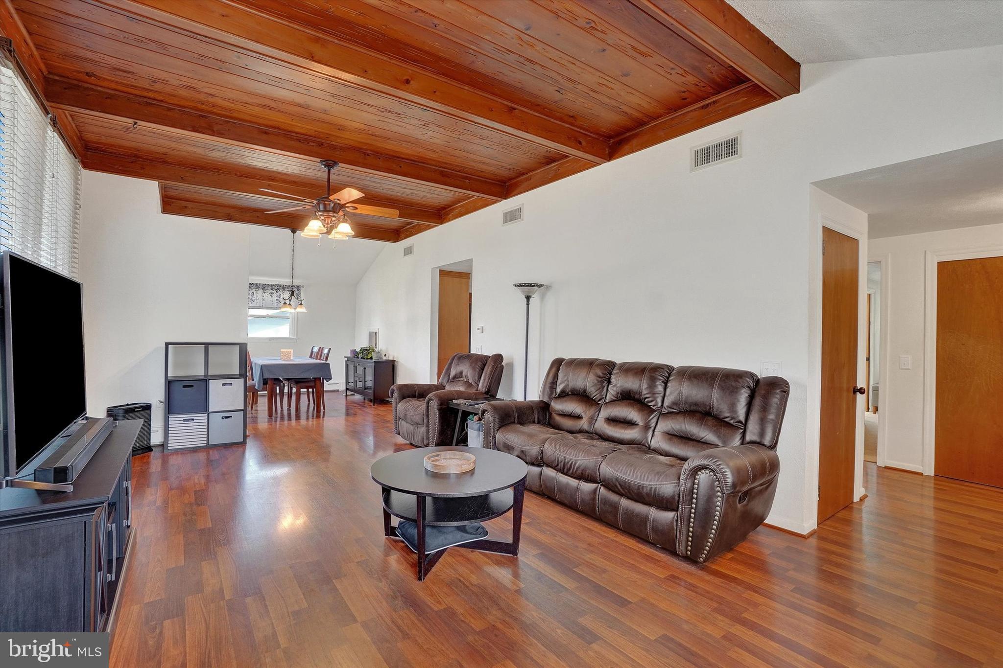 Curb appeal to the max as you enter over a small bridge to this welcoming California rancher! The covered front porch is perfect for your rocking chairs and beckons you inside to a wonderful great room featuring vaulted wood ceilings and gas fireplace with matching wood surround and mantel. The dining area is steps away from the kitchen which offers an abundance of cabinet and counter space plus stainless appliances and tasteful back splash. A family room off the kitchen also works nicely as an office or even a guest bedroom with a renovated jack and jill bathroom between accessing the 2nd bedroom. All rooms are spacious especially the primary suite with his and her closets, ceiling fan and private bath. Enjoy additional living space in the basement rec room plus storage. Private back yard is fenced in with brick outdoor fireplace "as is". Oversized (22'x22') 2 car garage with new door and opener offers plenty of room for your gardening and recreational equipment. This home is unique with too many special features to mention plus super convenient and in the York Suburban School District, schedule your appointment today!