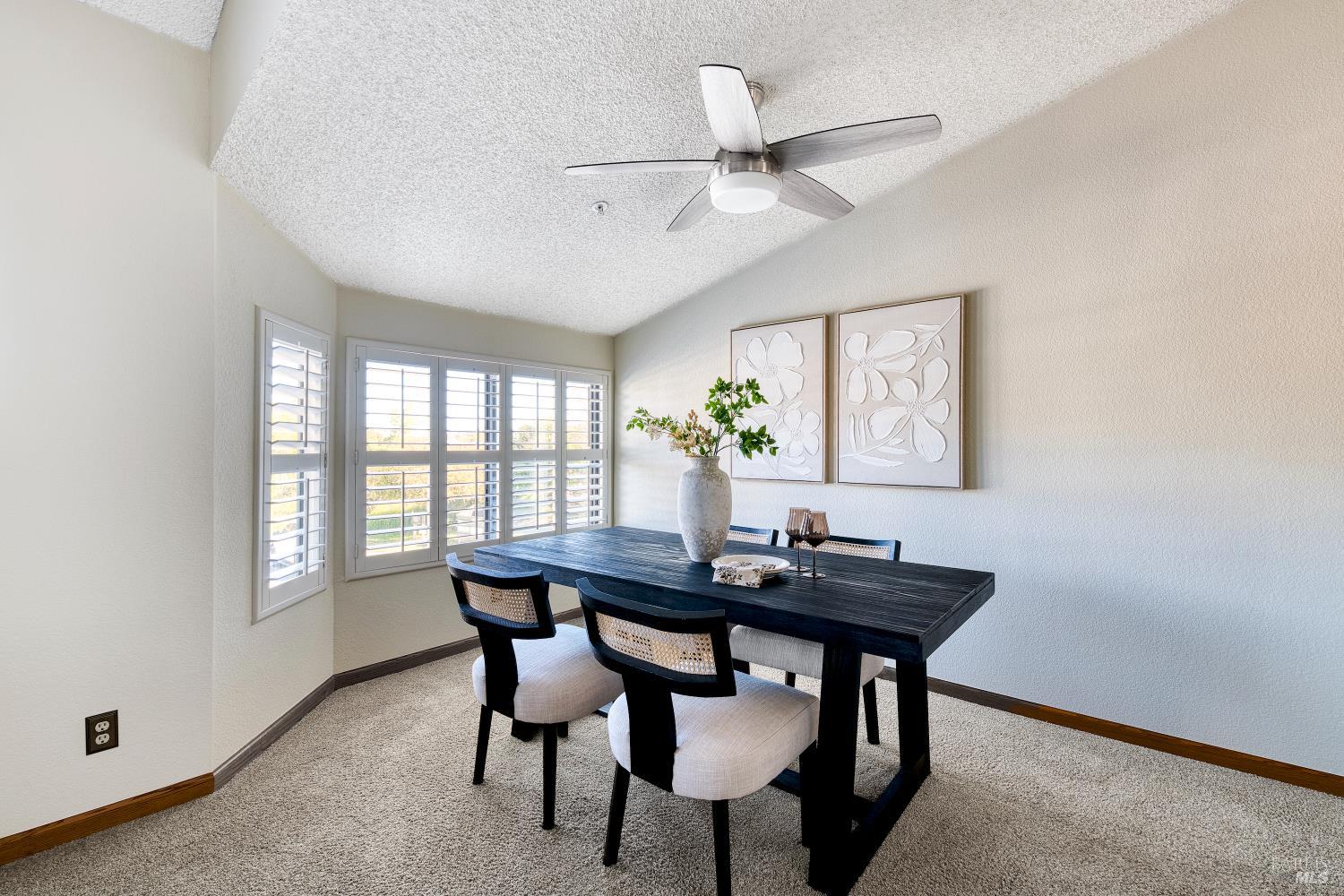 Welcome home to this beautiful 3-bedroom, 2-bath end-unit townhome in Western Oaks Village, ideally located between Napa, San Francisco, and Santa Rosa. The kitchen offers generous cabinet storage and ample counter space, opening to the dining and living areas for easy everyday living and entertaining. The living room features soaring vaulted ceilings, a wood-burning fireplace, custom plantation shutters, and access to the front outdoor deckperfect for relaxing or enjoying the outdoors. The main level also includes two comfortable bedrooms and a full bathroom. One of the bedrooms offers access to a private back deck overlooking peaceful open space. Upstairs, the spacious primary suite features vaulted ceilings, windows on both sides of the room that fill the space with natural light, a walk-in closet, and an en-suite bathroom with dual sinks, a walk-in shower, and additional storage. Additional highlights include air conditioning and an attached oversized 2-car garage with laundry area and extra storage.
