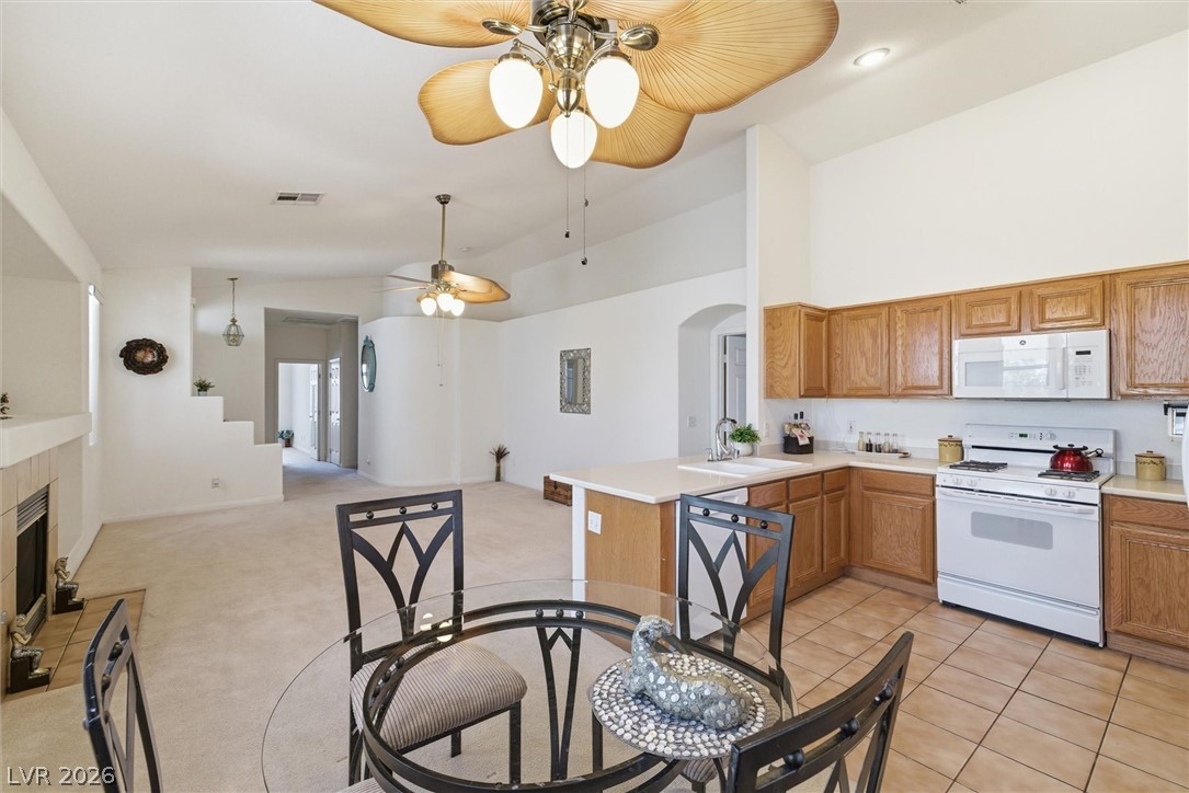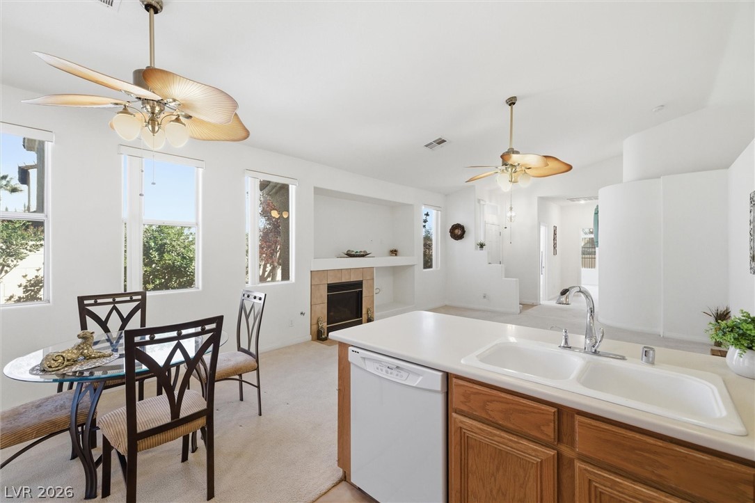 Welcome to Wellington Park - A Beautiful Gated Community w/Pool/Spa. Situated in the Highly Desirable Peccole Ranch Master Planned Community that Offers Multiple Parks, Playgrounds, Tennis Courts, Paseo Surround the Community, Perfect for Walking, Jogging, Biking. Schools & Public Library Nearby. This Prime Location is a Short Drive to Boca Park Shopping Center, Downtown Summerlin, Red Rock Casino & Resort, and Other Amenities. This Single-Story: From Beautiful Synthetic Grass Front Yard & Flowerpots Lead to Front Door of 3 Bedrooms & 2 Baths - Freshly Painted Interior Features Bright & Light, Open-Concept that Seamlessly Connects to Living Room w/Fireplace, Dining & Kitchen w/Extended Countertop - Perfect for Both Entertaining & Everyday Living. Spacious Primary Bedroom - Complete w/Ensuite Bathroom w/Double Sinks, Separate Tub & Shower, Walk-in Closet w/Mirror Door. Two Additional Bedrooms Provide Comfort & Flexibility. Step Outside to Private Covered Patio Backyard w/Shaded Trees!