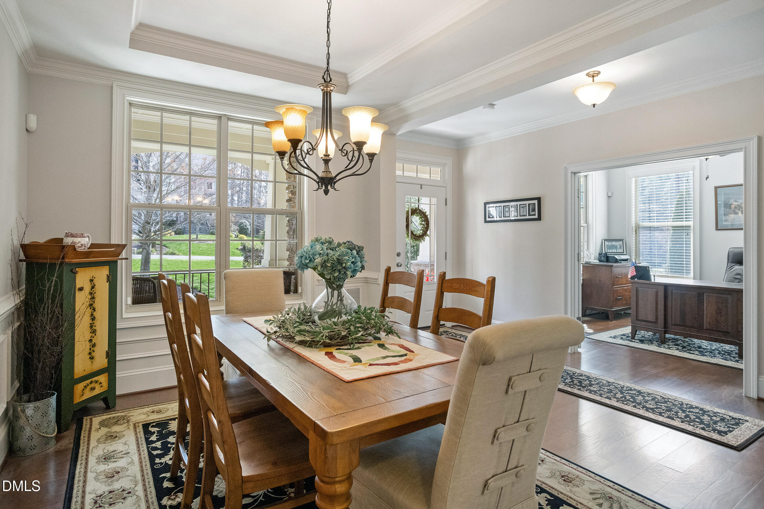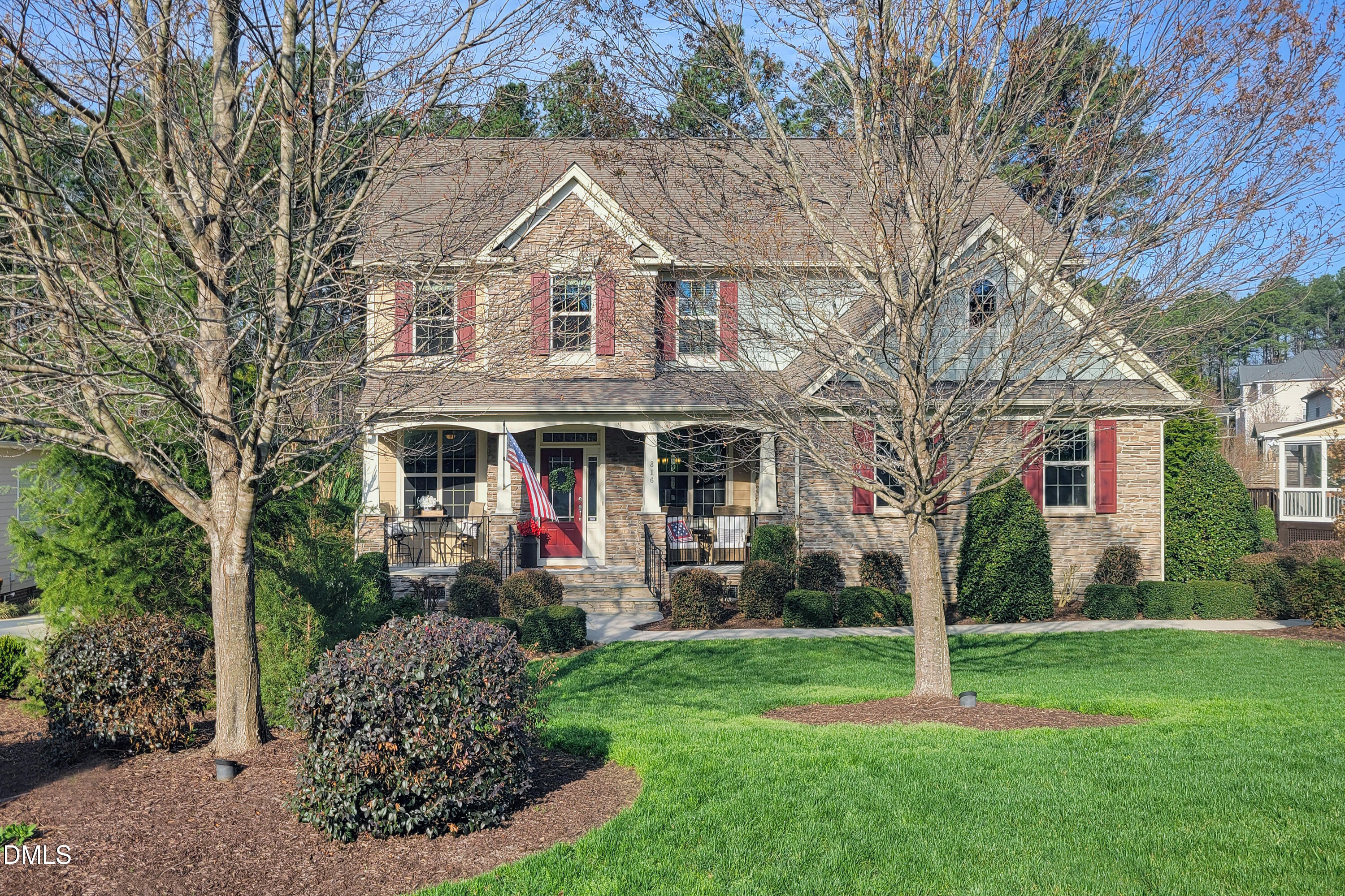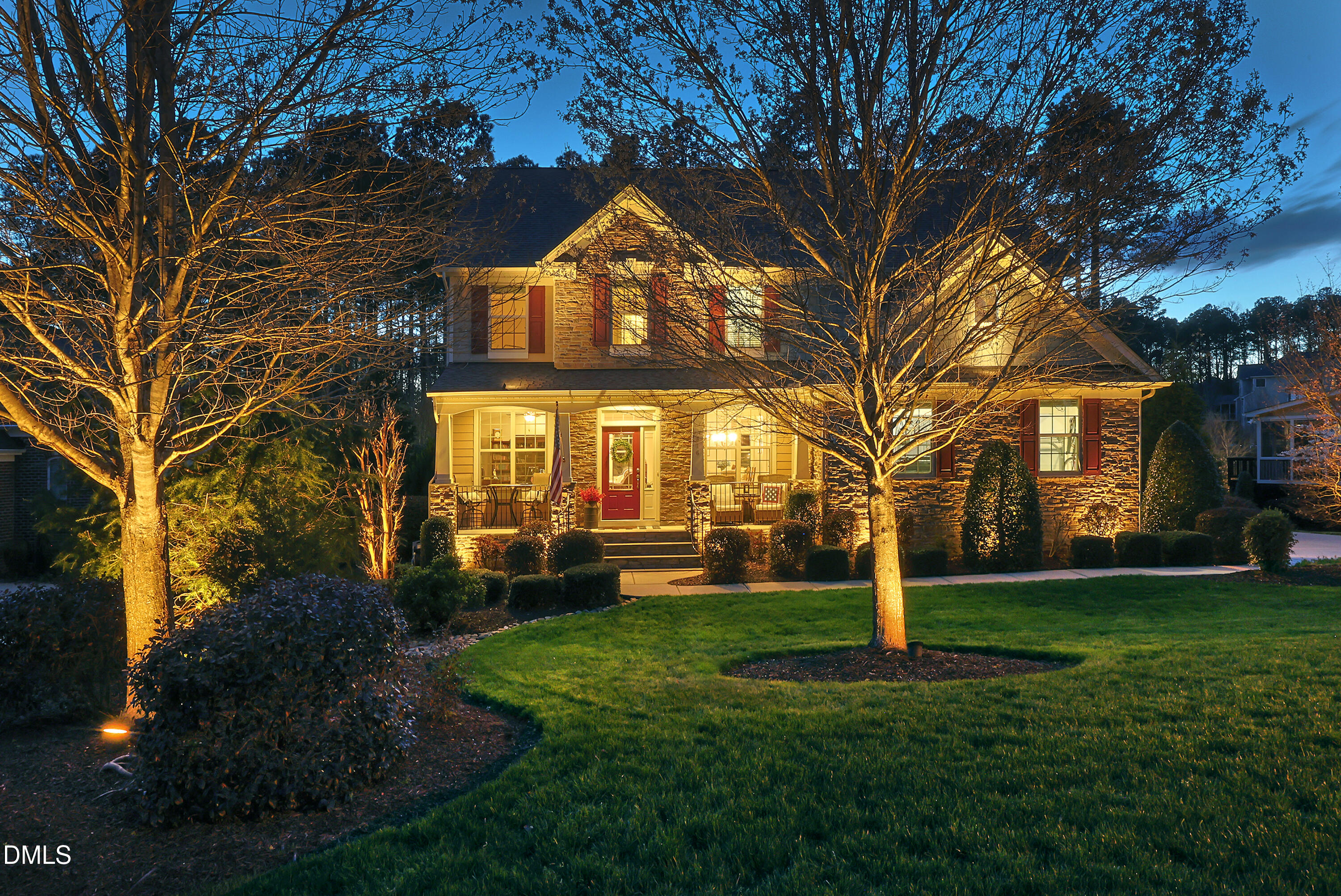 A house is a tangible asset. Home is the intangible feeling. Home is a sense of comfort, security, and belonging. Home is a place where memories are made. From the moment you arrive, you will know this house is home. Starting with the curb appeal of meticulously-kept grounds and friendly Craftsman-styling, this home welcomes you with open arms. The east-facing rocking-chair-style covered front porch greets you and your guests with space to sit and enjoy the morning sun. Step into the gracious foyer flanked by the elegant dining room with trey ceiling and wainscot, and a convenient home office with French doors. Site-finished hardwood flooring graces the first level of the home. The open-concept floorplan was thoughtfully designed. Perfect for entertaining or for quiet times with family, the family room, kitchen, breakfast area, and sunroom flow seamlessly together. The family room features a cozy gas-log fireplace, and a wall of windows overlooking the verdant backyard. The kitchen is a chef's delight with 5-burner gas cooktop, double wall ovens, plenty of cabinet and counter space, and a generously-sized pantry. The large central kitchen island with pendant lighting provides additional space for food prep and seating for your more informal meals. Beautiful staggered-height solid-wood cabinets, natural granite countertops, and stainless-steel appliances all add to the classic look of elegant warmth. The delightful sunroom provides a special space, surrounded by bay windows, for entertaining, enjoying quiet conversation, or bird watching. Dine inside or out. The 15x20 screened porch has ample room for a seating area and a dining table. The home's staircase is tucked away from the front door and adds an interesting architectural element to the family room. Also tucked away, behind the kitchen, is a broad hallway with convenient drop zone, a closet, a powder room, and the door to the garage. Upstairs you will find four generously-sized bedrooms. One is approximately 18x18 and would make a great bonus-flex room, game room, or second home office. The primary bedroom suite is truly a retreat with large bathroom, huge walk-in closet, and another cozy sitting room with bay windows. Pamper yourself in the primary suite bathroom with leaded glass windows, oversized soaking tub, separate shower with custom tile, and separate water closet. Other features of this well-thought-out floorplan include the large second-floor laundry room and the Jack-and-Jill-style bathroom accessed from bedroom 2 and bedroom 3. There is a spacious walk-in attic on the second floor. Kingsley Estates is a lovely neighborhood with large homesites. The home features a sideload oversized 20x29 two-car garage, and lots of driveway space for extra parking or outdoor sports. The backyard of this home is large and level and features room for a garden and a peaceful patio area perfect for relaxing. There is a large lawn area as well which is great for play or pets. Awesome location less than 10 minutes from The Streets at Southpoint with its cornucopia of shopping, dining, and entertainment options. Downtown Durham is an easy drive and features museums and vibrant night life including numerous award-winning restaurants, the Durham Performing Arts Center, and the Durham Athletic Park home to minor league baseball's fabled Durham Bulls. The Raleigh-Durham International Airport, the major employers of the Research Triangle Park, and B. Everett Jordan Recreational Lake are all within 15 miles. Duke and UNC Chapel Hill hospital and campuses are also both an easy drive. Don't miss this opportunity to make this house your home.