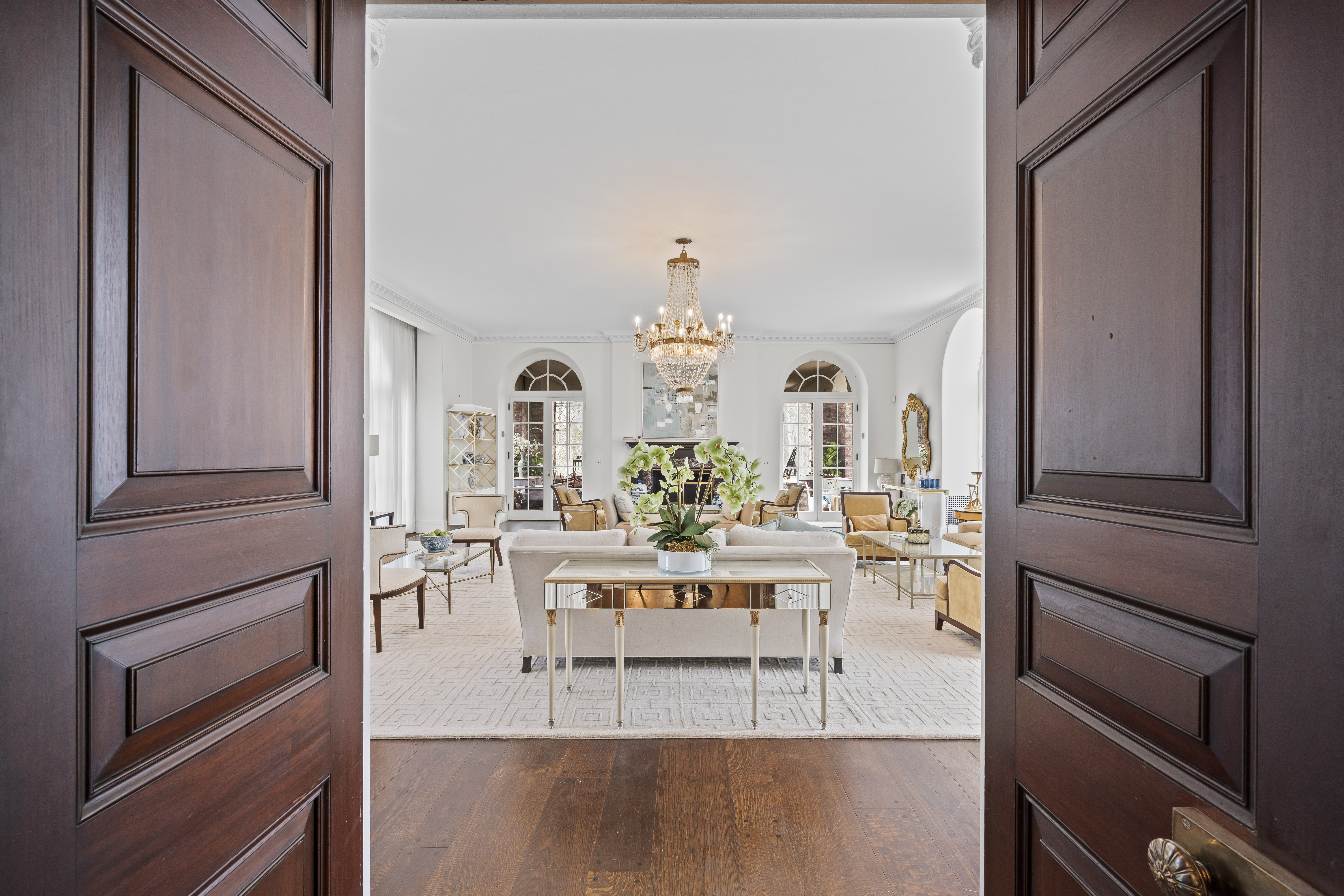 Magnificent Brick and Limestone Gold Coast Mansion, Set On 5.41 Acres w/Water views of Lake Francis. Renovated w/Gourmet Kirchen and Baths. 12" Ceilings, Elliptical Stairway, Mahogany Library, 8 Fireplaces, Bordering 24 Acres Preserve. CAC. Pool and Tennis Court.