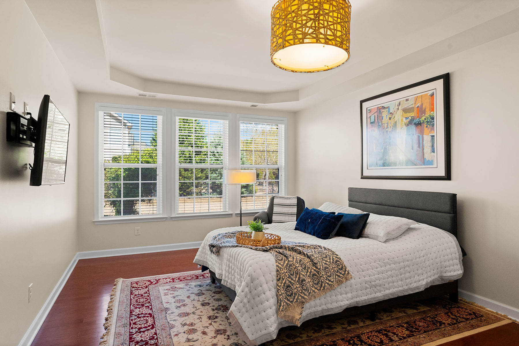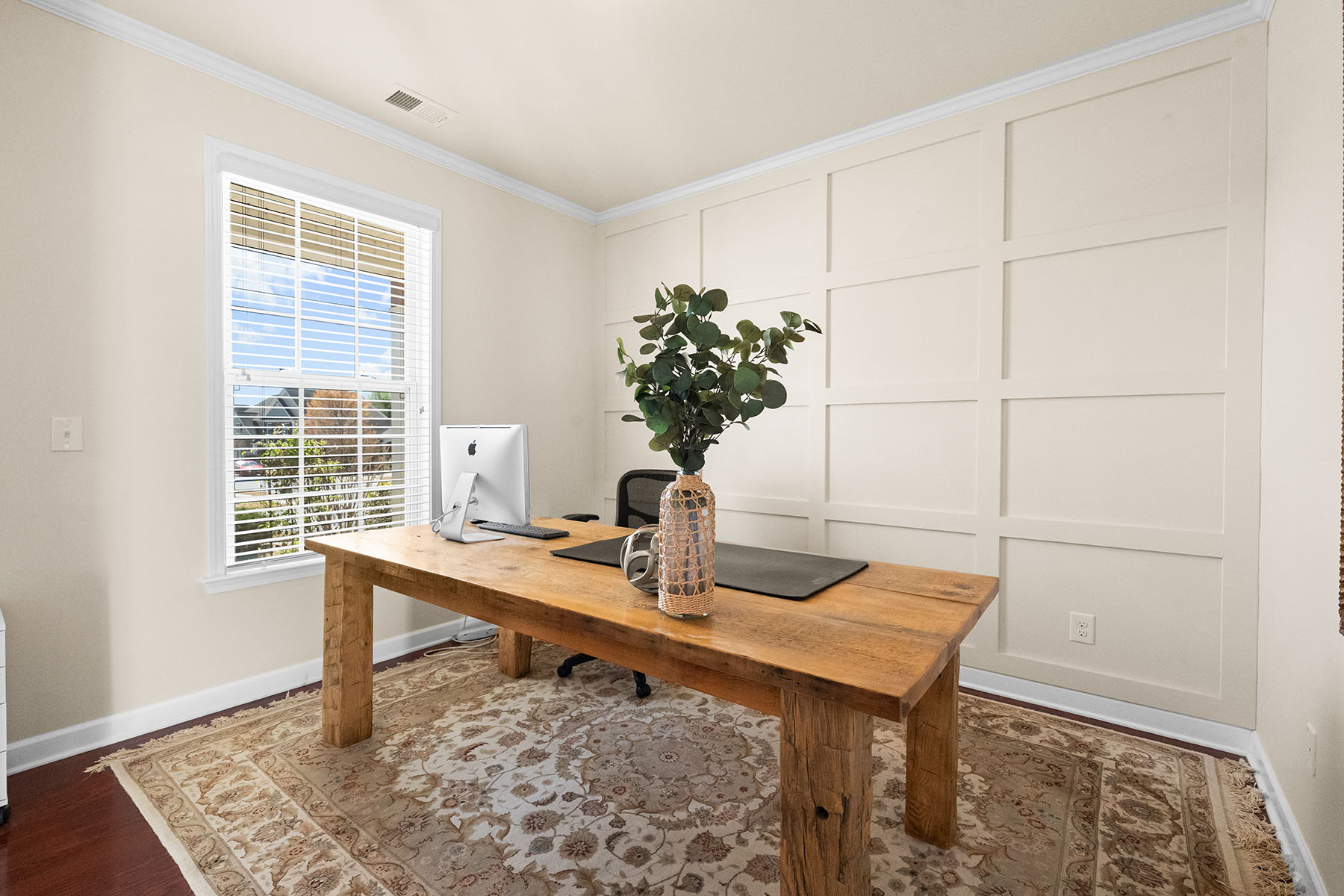 Built in 2010 and fully move-in ready, the home features a primary bedroom on the main level with wood flooring, dual vanities, a renovated primary bath with quartz countertops, frameless glass walk-in tile shower and soaking tub.