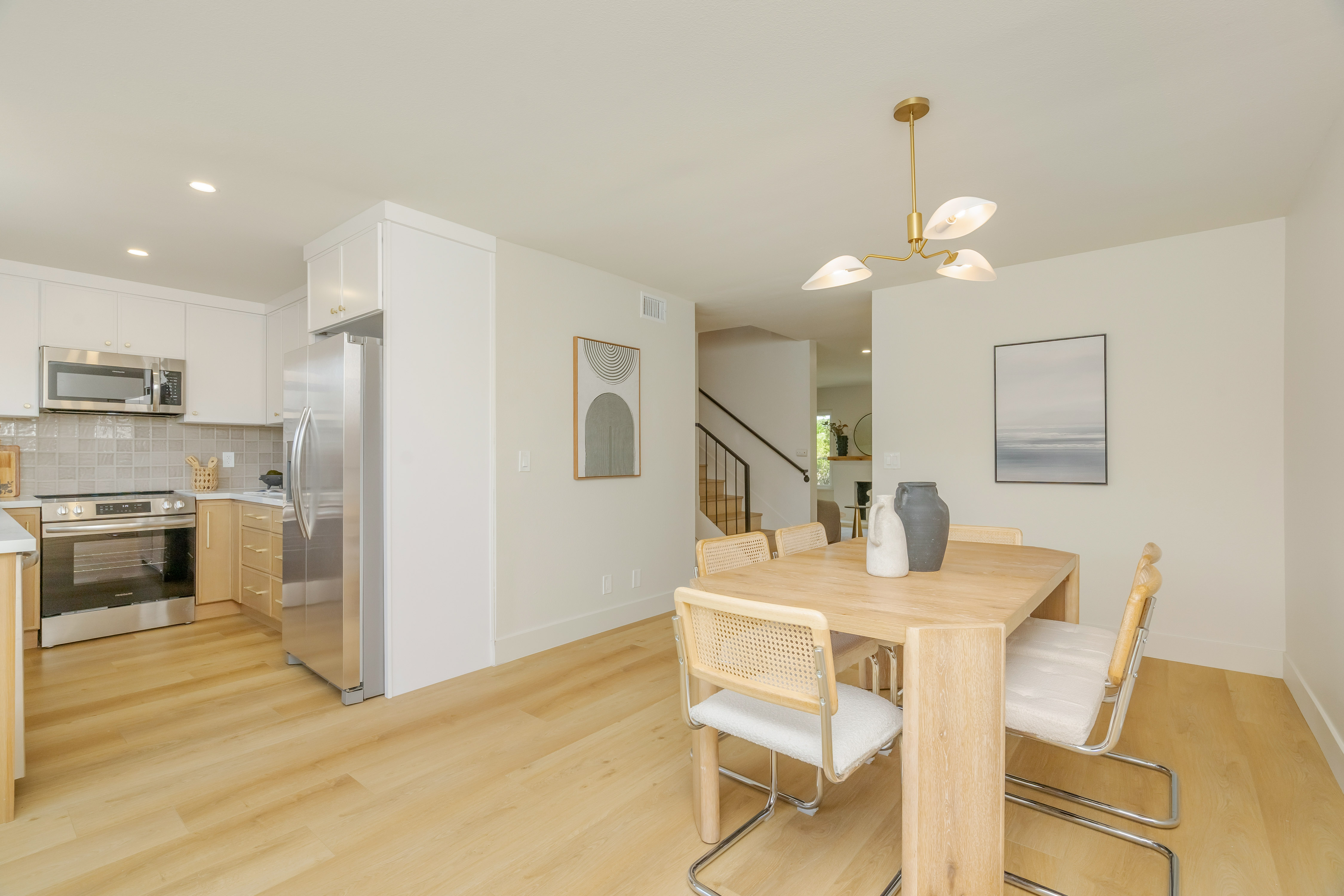 Discover this fully renovated townhome in Ridgegate’s gated community, where modern style meets everyday comfort. Light-filled interiors showcase new luxury flooring, a smooth-stucco fireplace, and a designer kitchen with quartz countertops, custom cabinetry, matte gold hardware, and stainless steel appliances. Upstairs, the primary suite offers a walk-in closet and a spa-inspired bath with dual vanities and a spacious walk-in shower, with refined finishes. Two additional bedrooms feature peekaboo ocean views and provide flexible space for guests, office, or creative use, complemented by beautifully updated bathrooms. Enjoy a private patio with direct access to a spacious two-car garage with laundry hookups, along with the added comfort of new windows and central A/C. Residents of the gated Ridgegate community enjoy resort-style amenities including multiple pools, tennis and pickleball courts, and lush greenbelts, all moments from beaches, hiking trails, Terranea Resort, Golf Club, and highly regarded local schools.
