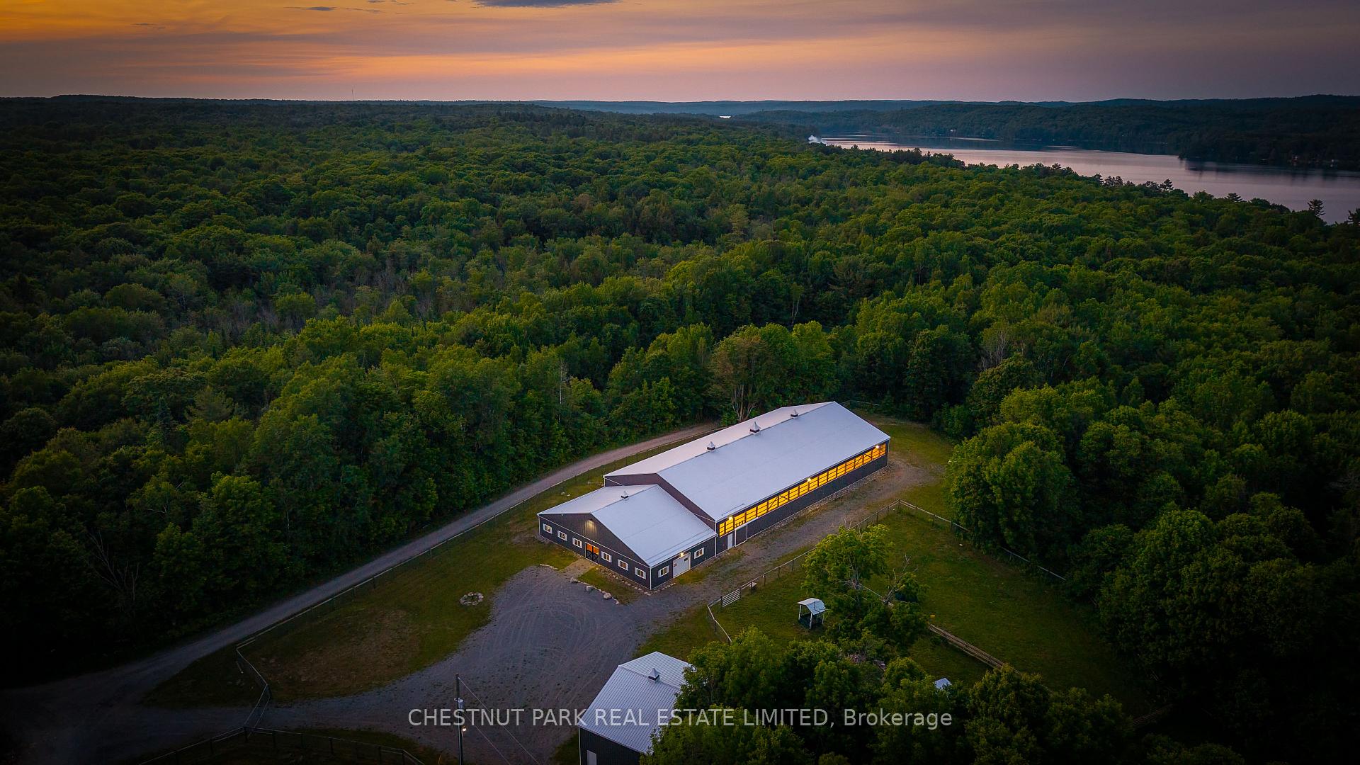 Exceptional 100-acre estate opportunity in the Haliburton Highlands, offering unmatched privacy, scale, and versatility in one of Ontario's most sought-after four-season destinations. Ideally suited for equestrian use, a hobby farm, or a private country retreat, this property delivers a rare combination of infrastructure, acreage, and location. Designed for year-round equestrian living, the property features a 70 x 140 indoor riding arena, 8-stall horse barn, hay barn, and multiple gated paddocks, providing a complete setup for riding, training, and horse care. Groomed wooded trails wind throughout the acreage, ideal for horseback riding, hiking, snowshoeing, and ATV use, creating a true outdoor lifestyle experience. With no existing residence, the property offers a blank canvas to design and build your custom home or country estate. Multiple potential building sites allow you to position your home to maximize privacy, views, and overall setting, while taking full advantage of the surrounding natural landscape. Conveniently located near Hwy 35 and Hwy 118, the property offers easy year-round access and is just minutes to multiple lakes, golf courses, and the amenities of Haliburton and Minden Villages. A rare opportunity to secure a large acreage parcel with established equestrian infrastructure and create your own private estate in a prime cottage country location.