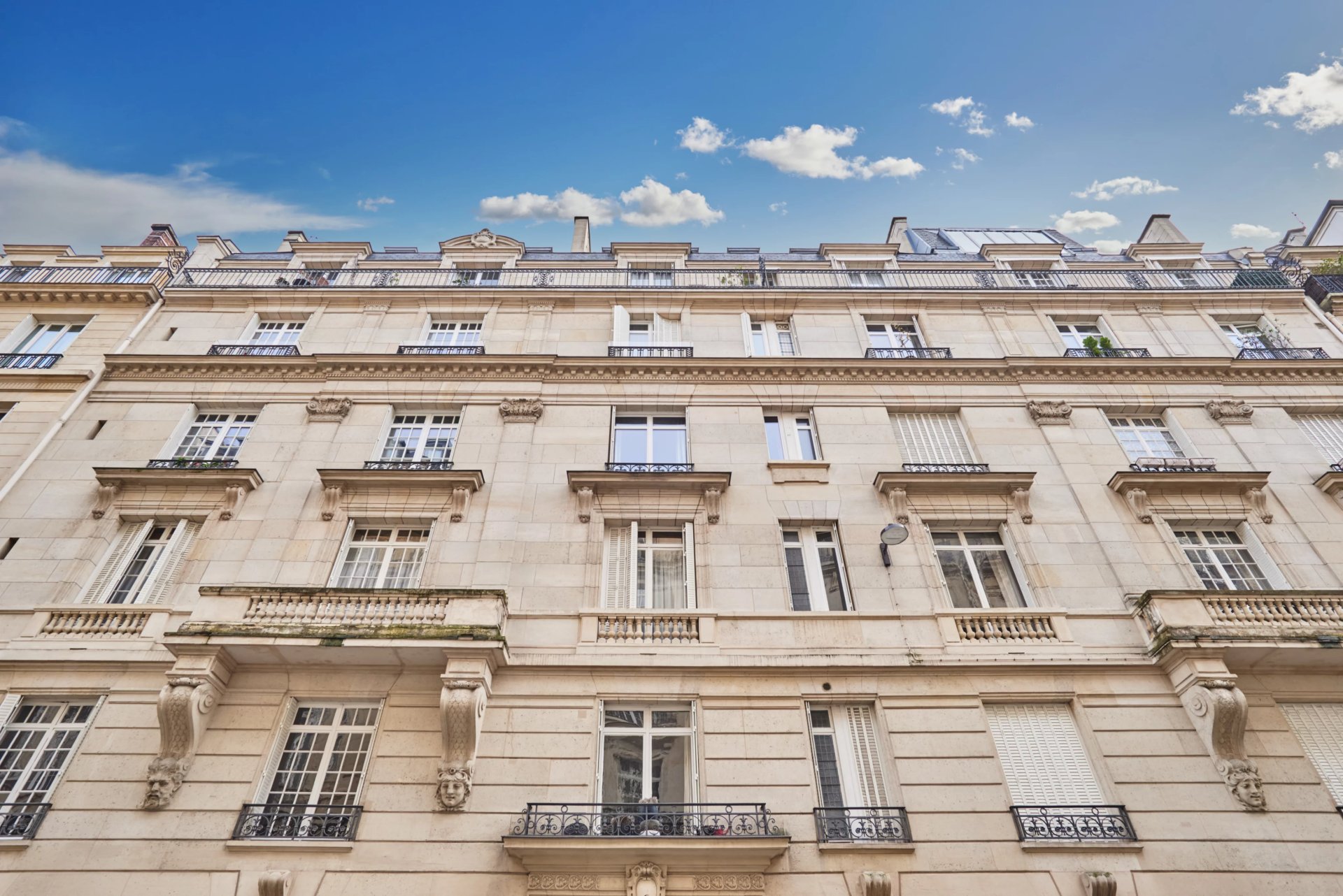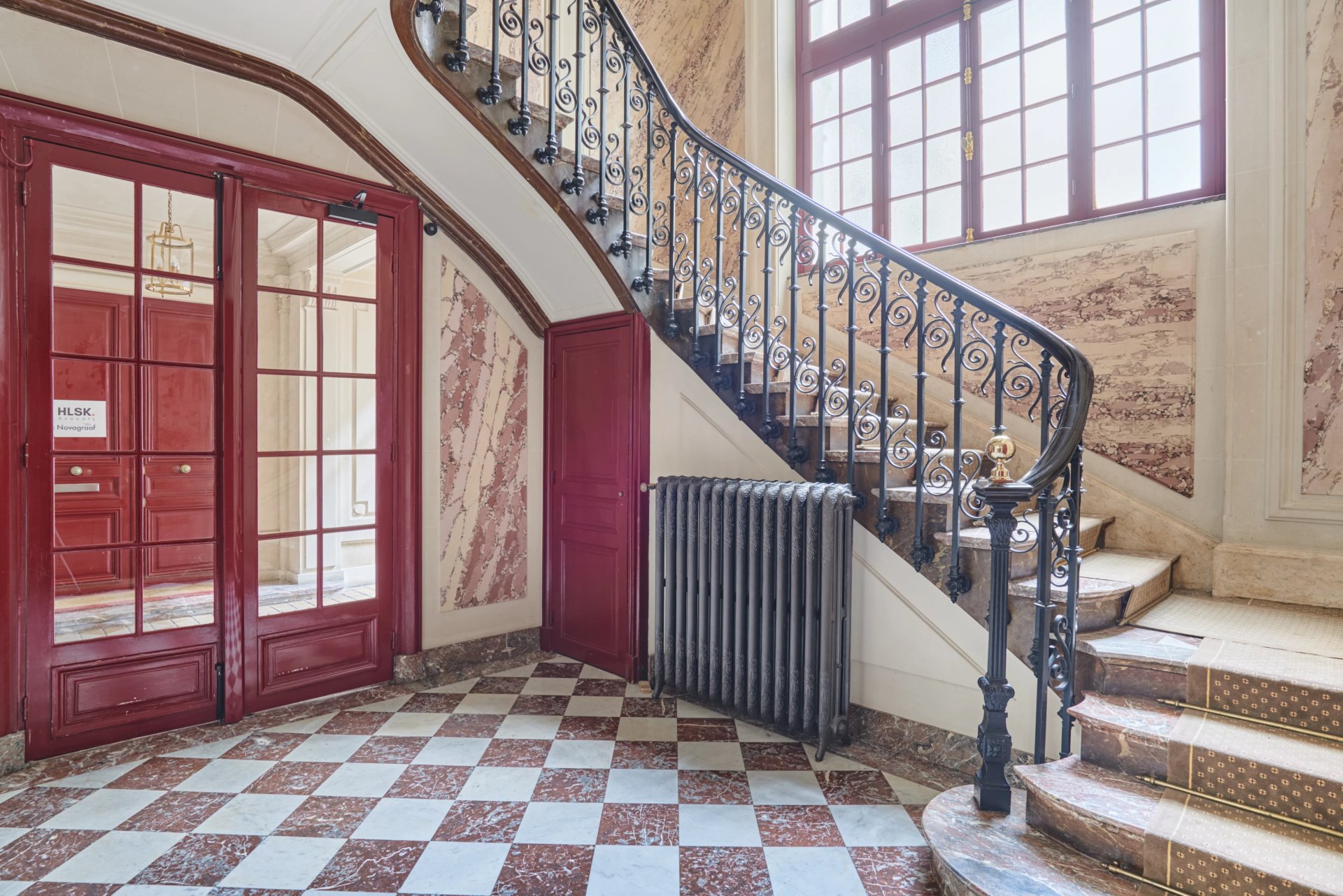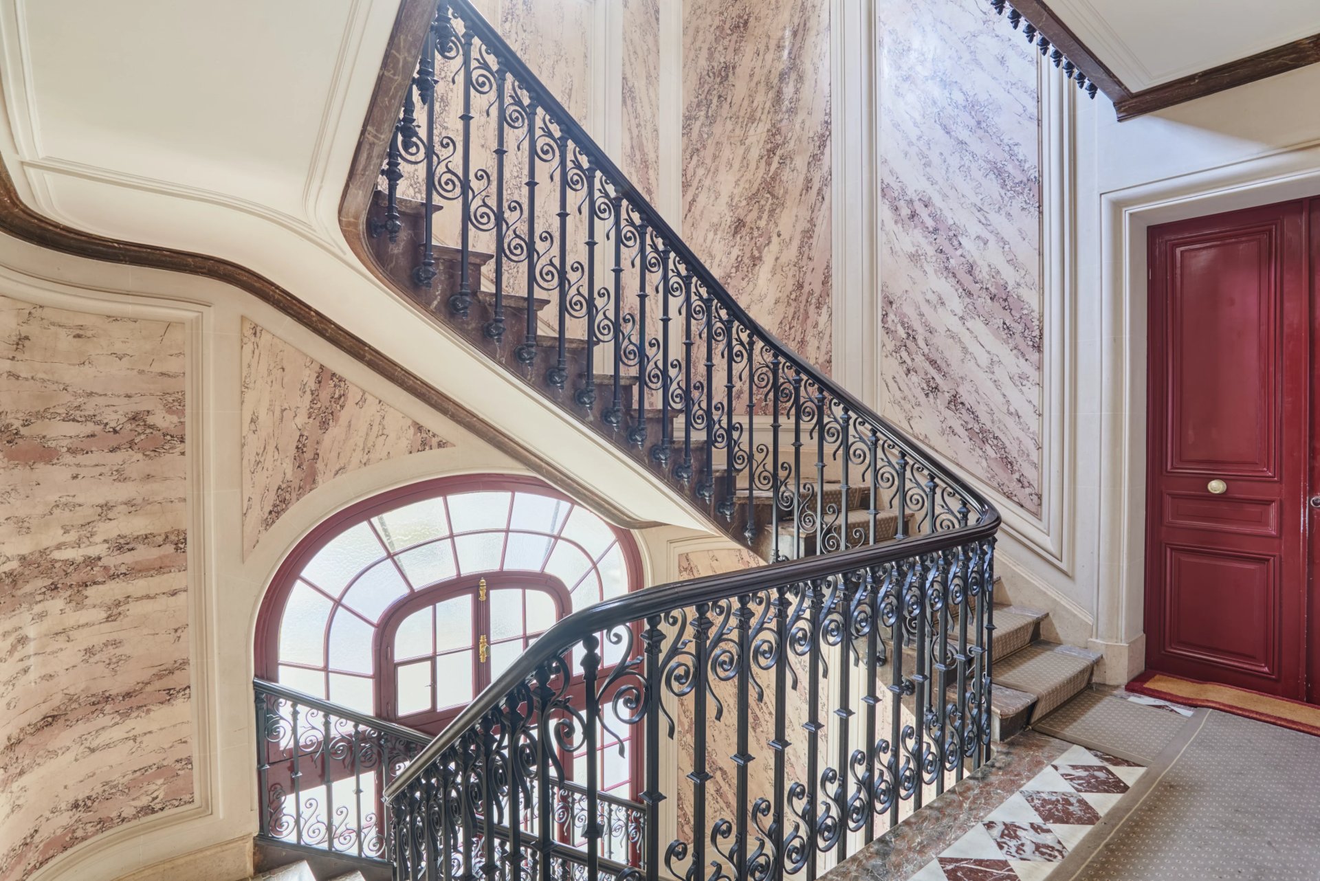 Sole Agent. Edouard Detaille-Carnot neighbourhood. This bright and peaceful apartment on the 4th floor of a luxurious late 19th century building with a lift offers 195.09 sqm of living space. It includes an entrance hall with a study area, a double living/reception room with a kitchen, a study, a master suite with a bath/shower room, dressing room and separate wc, three further bedrooms overlooking a courtyard, a bathroom/utility room, and a separate wc. A 17.50 sqm studio apartment with a kitchenette and a shower room on the 6th floor may be acquired for a further 140000€. (This is currently rented).