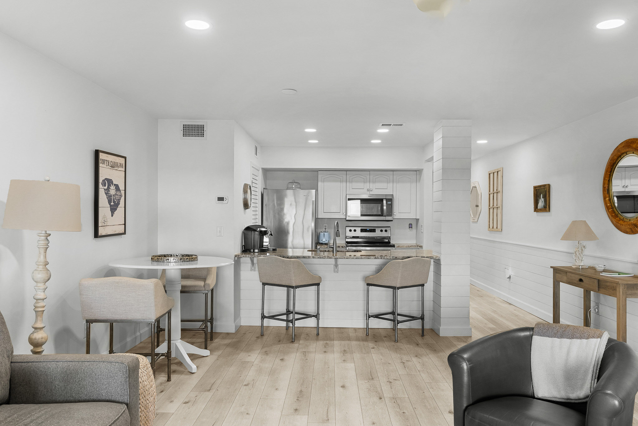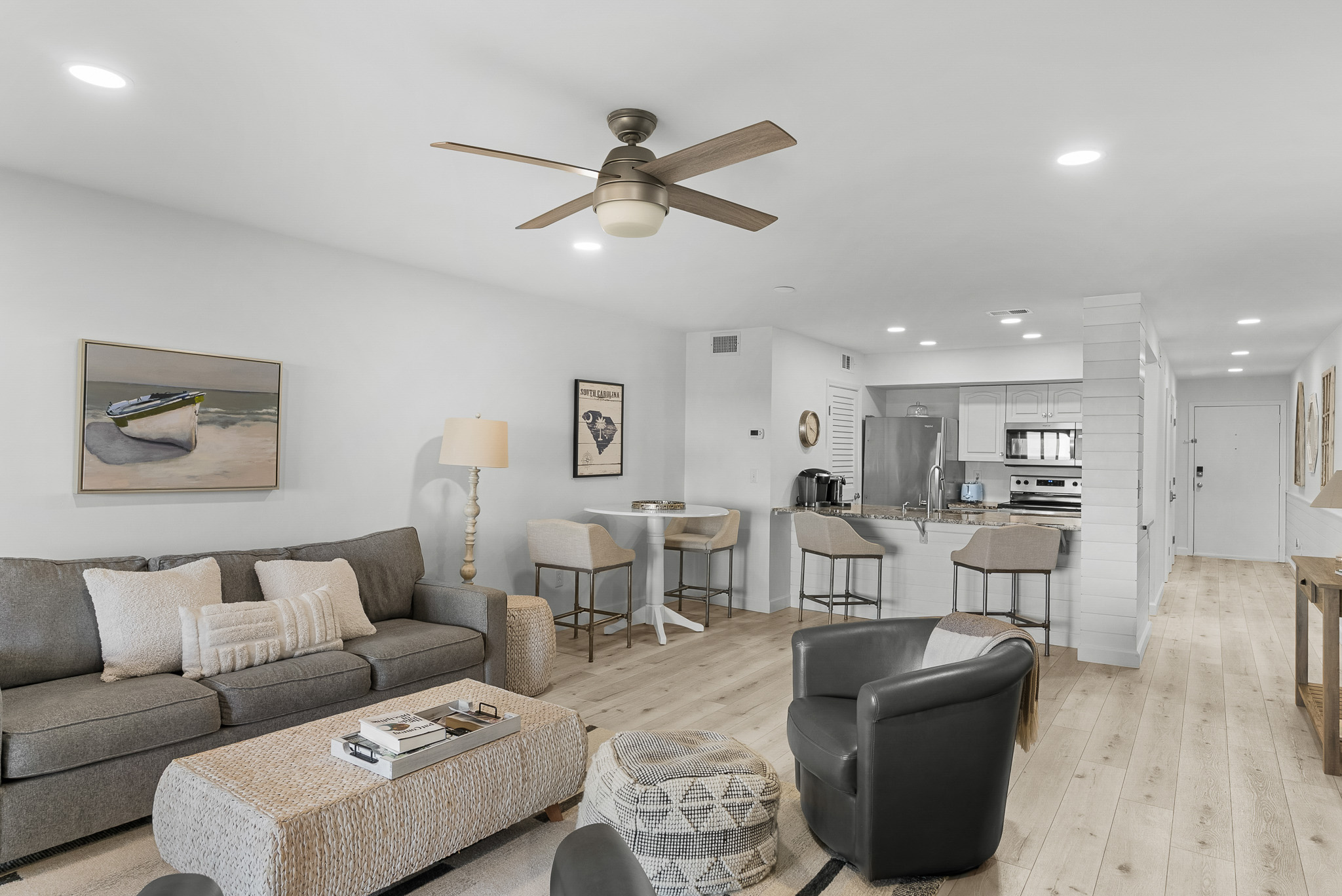 1331 Pelican Watch is a beautifully reimagined one bedroom, two full bath oceanfront villa offering effortless coastal living just steps from the beach. Thoughtfully updated, this inviting retreat is ready to be enjoyed as a primary residence, a charming pied à terre, or a successful rental property with strong income history. Wake to the soft glow of sunrise filtering through the windows and the gentle rhythm of the Atlantic just beyond your door. Here, the day begins with coffee on your private porch as the sky turns shades of pink and gold over the water. Dolphins often pass along the shoreline in the early morning, and the sound of the waves sets a peaceful tone for the day ahead. With the beach only steps away, mornings naturally begin with a walk along the sand. From your private entrance, the boardwalk leads directly to the shoreline where the tide rolls in gently and seabirds glide overhead. Some mornings, it is a quiet stroll collecting shells. Other mornings, it becomes a longer walk toward North Beach, where dolphins strand feed and the beauty of Seabrook's protected coastline feels wonderfully untouched. Back at the villa, the bright and open living space welcomes you. Sunlight fills the kitchen and living area as you prepare breakfast or gather with guests. The thoughtful layout and recent updates create a refined yet relaxed coastal retreat designed for easy living. Afternoons unfold easily here. Perhaps it is a bike ride beneath the canopy of live oaks, a round of golf or tennis at the club, or simply returning to the beach with a chair and a book. Living oceanfront means the water is always part of your day, just steps away whenever the mood strikes. As evening approaches, the porch becomes the perfect place to unwind again. The colors of the sky soften, and the sound of the surf deepens as the sun lowers over the Atlantic. Dinner might be prepared in the well-appointed kitchen or enjoyed at one of Seabrook Island's waterfront restaurants just a short ride away. At the end of the day, the spacious bedroom suite offers a quiet retreat, with the distant sound of the ocean continuing through the night. Pelican Watch Villas are among the most sought-after oceanfront locations on Seabrook Island, offering direct beach access and an easy lock-and-leave lifestyle. With regime fees under one thousand dollars per month covering exterior maintenance, landscaping, and building insurance, ownership here is designed to be simple and carefree. At 1331 Pelican Watch, life unfolds at the edge of the ocean, where every day begins and ends with the beauty of the coast just steps from your door.