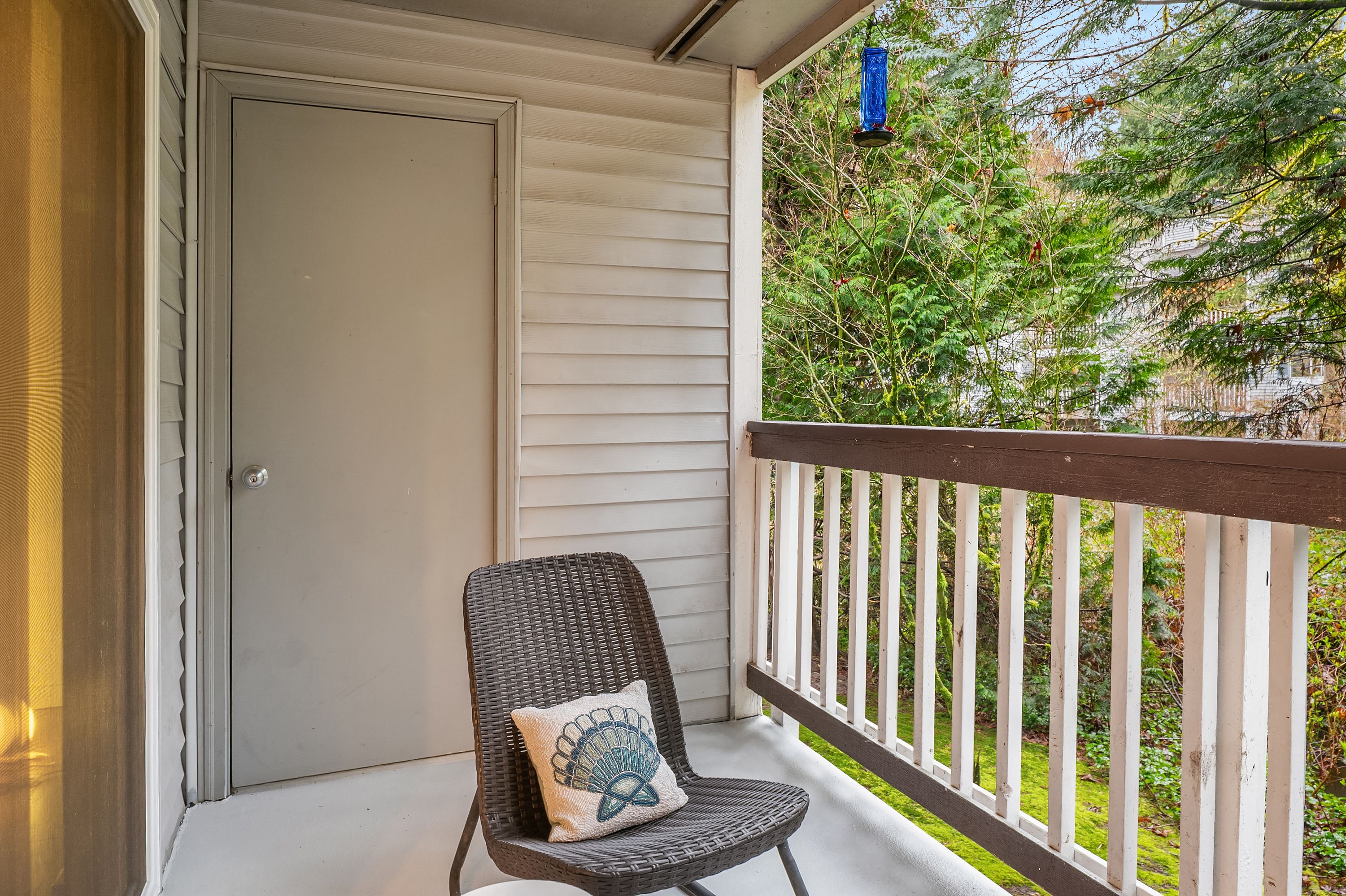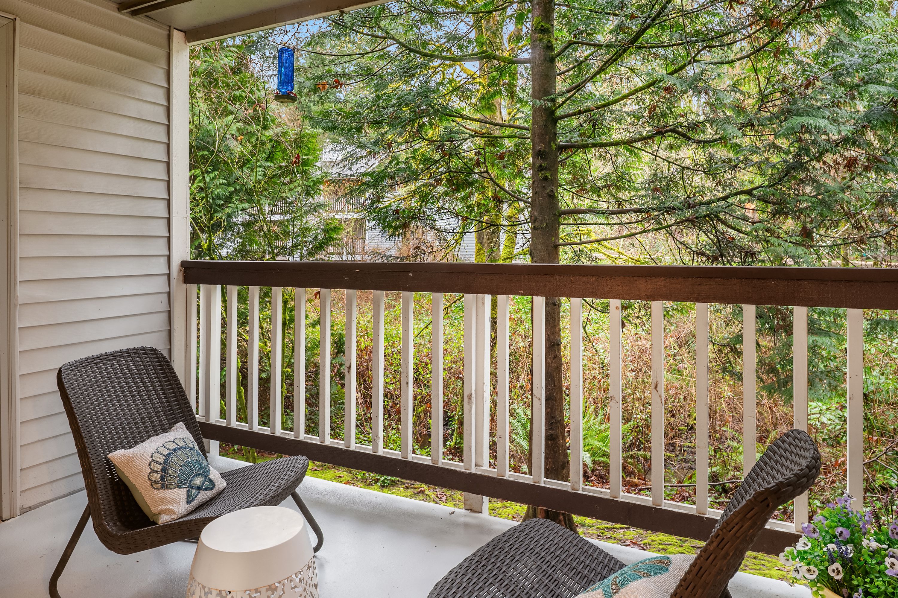 FRESH in Markland Woods! Step Up! Ready to Move-in 3 bedrooms, 2 full bathrooms with marble countertops throughout, durable Luxury Vinyl Flooring, updated fireplace surround and peaceful outlook to nature from oversized balcony with secure storage. Don't miss the private large 1 car garage with new opener and keypad! PLUS a covered parking spot steps from your door to R102. The new lighting keeps things bright. A charming bay window adds a level of sophistication rarely found in condominiums. Pets allowed with restrictions. Work out area! Outdoor Pool! Unit is in the back of the community - quiet, peaceful, tranquil. R 102 offers everything! Lives like a house yet affordable as only a condominium can be. Imagine entertaining friends poolside then retreating to your cozy fireplace in your very own home with babbling brook right outside - enjoy nature as backdrop. Reserve your own sunny garden spot for the freshest ingredients. Snohomish taxes offer big savings over King County too! Convenient transit and freeway access make it the epitome of convenience. Mom or Dad would be proud.