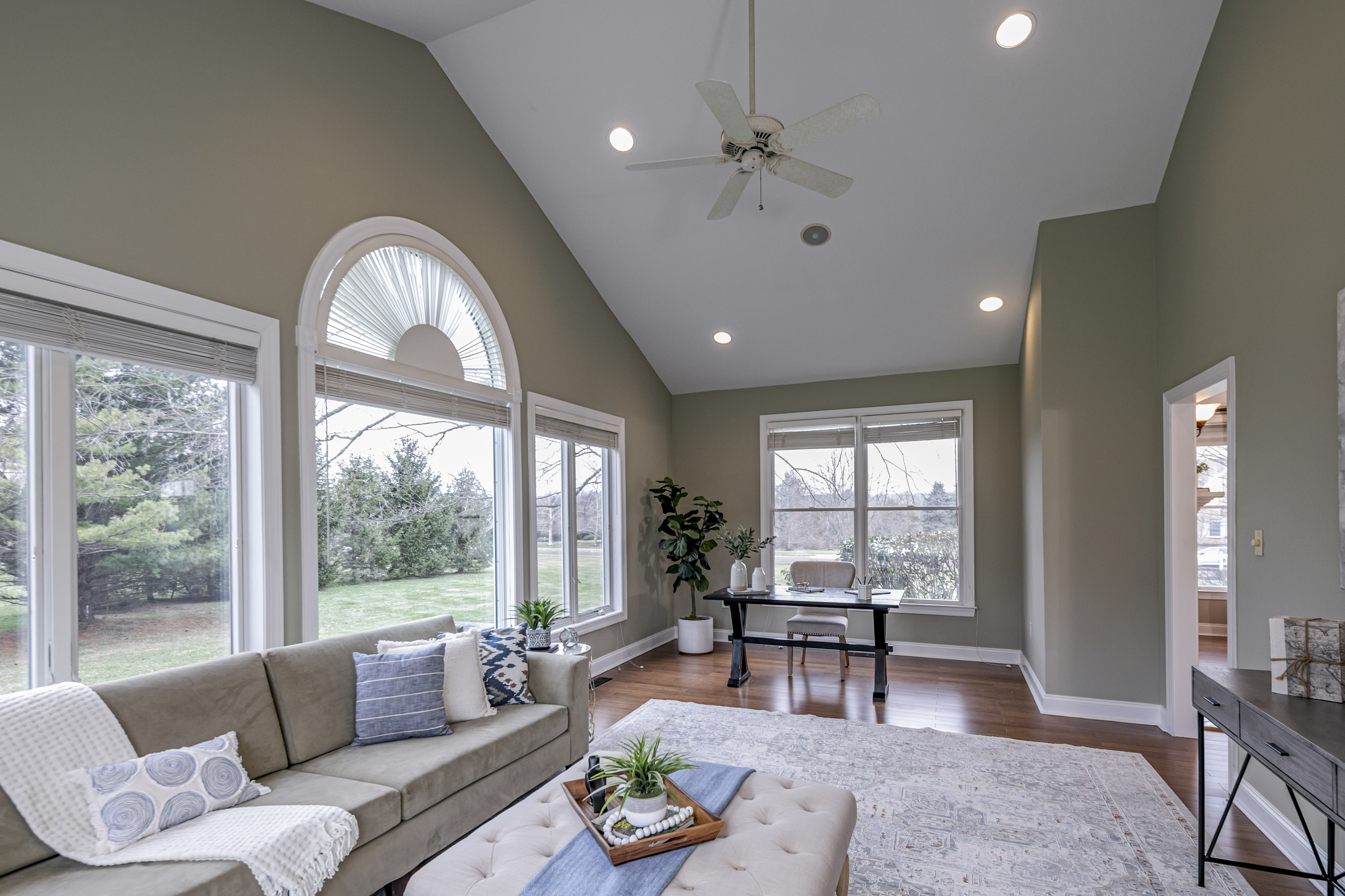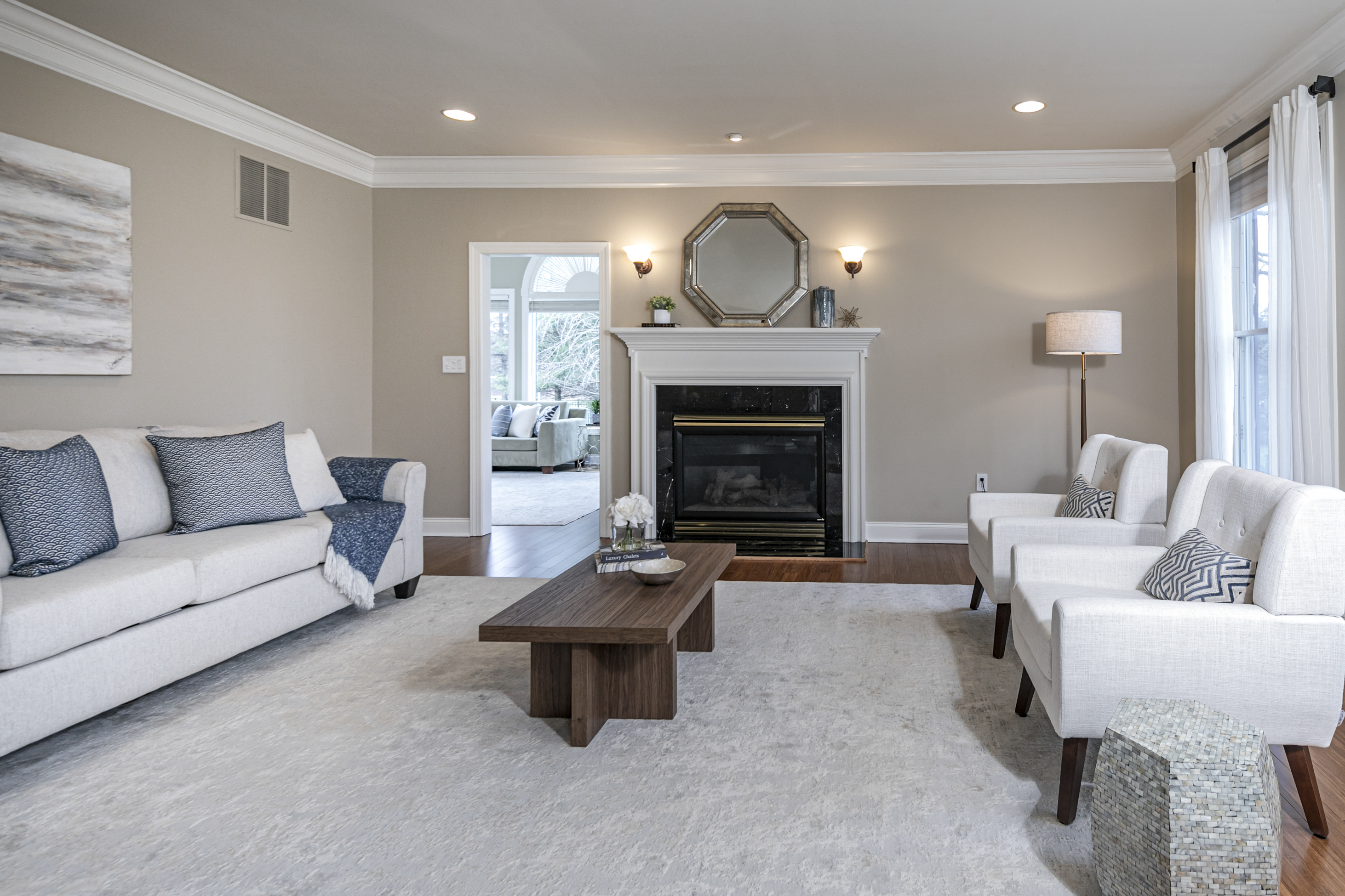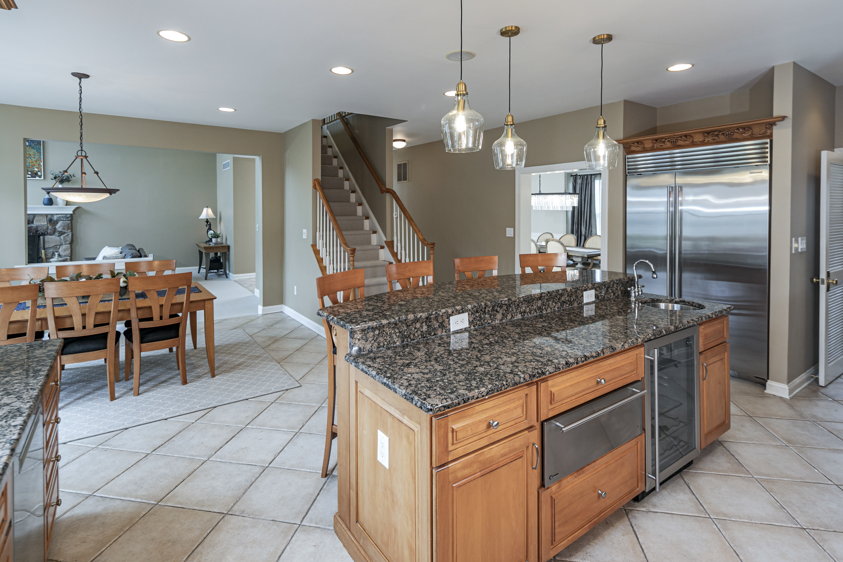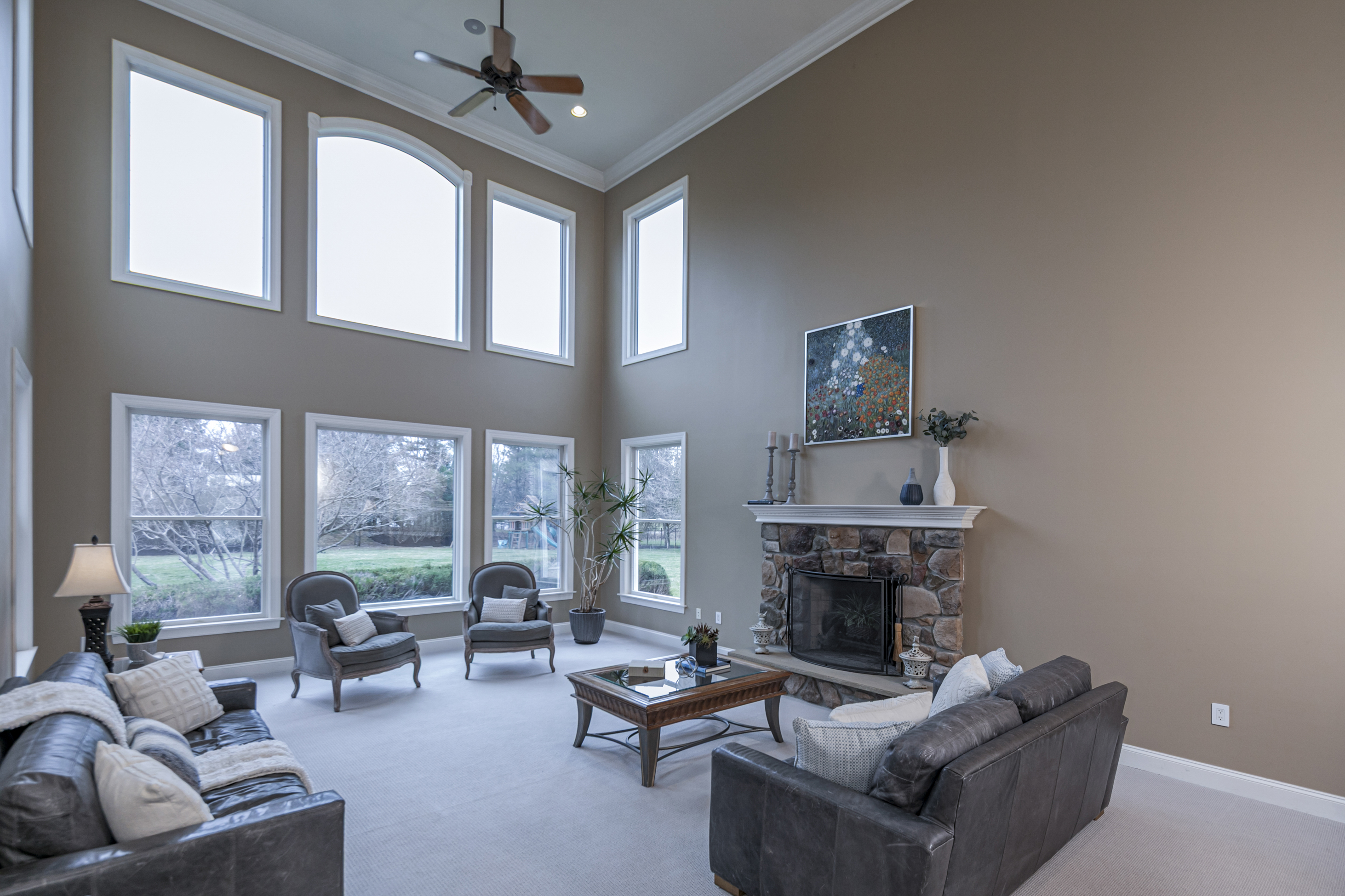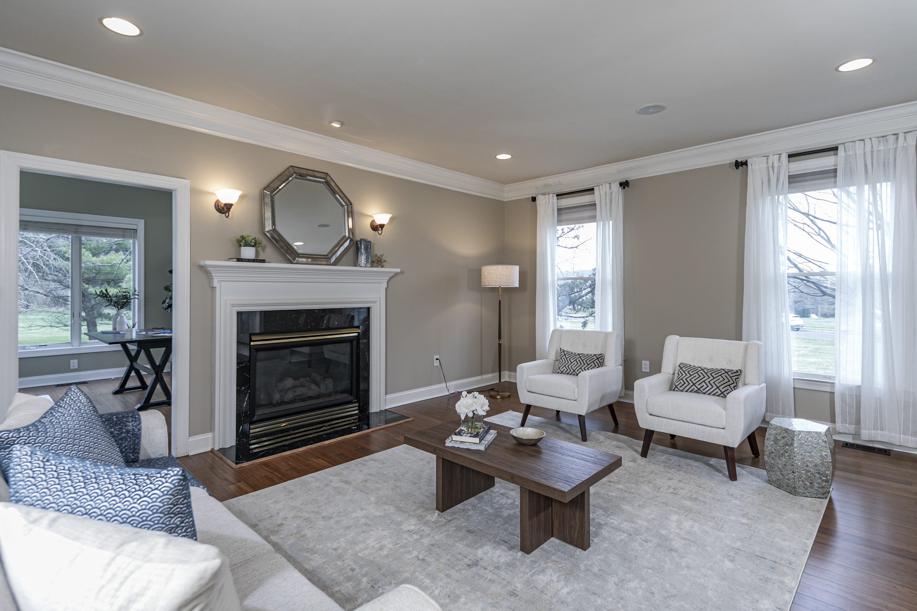 This is a house that understands how to live well! Set on more than two acres in a distinguished enclave of fine homes, this expansive home unfolds with ease and polish. Surrounded by some of the area’s most coveted golf clubs, close to acclaimed public and private schools, and just a short drive from Princeton, the setting offers prestige and practicality in equal measure. Inside, the atmosphere is warm, gracious, and beautifully composed. A stylish entry opens to an impressive foyer, where the living room and dining room stand on either side, each enriched by tasteful millwork and a sense of timeless proportion. In the Great Room, soaring windows rise to the ceiling and draw in an abundance of natural light, creating a bright and welcoming centerpiece for daily life. A wood-burning fireplace brings character here, while the living room offers its own gas fireplace. Just beyond, a luminous conservatory extends the home’s entertaining capacity when gatherings grow. Tucked nearby are a den and a powder room. The sunlit kitchen is designed to be as functional as it is attractive. It features a generous central island with seating for four and a prep sink, an oversized Sub-Zero refrigerator, and a Dacor six-burner cooktop crowned by a professional hood. The adjoining dining area, laundry, and mudroom, along with a secondary staircase to the bedroom level, make the choreography of daily life feel seamless. Upstairs, the newly carpeted second floor offers spacious rooms and a landing that overlooks both the foyer and Great Room below. Two bedrooms share a bath, while a guest suite enjoys its own private bathroom. The main suite is a true sanctuary, indulgent in both scale and design, with three large walk-in closets, a kitchenette, a private home office or sitting room, bathroom, and a serene bedroom with a window seat. The walk-out lower level continues the home’s effortless sense of luxury, offering an array of spaces dedicated to leisure. A home theater, gym, recreation room, full bath, and wine cellar create a destination all their own. Outdoors, the home opens onto an inviting paver patio and a resort-inspired backyard with an outdoor kitchen, pool, and spa, all set within a large, fenced expanse of lawn. The well-manicured neighborhood with sidewalks provides a peaceful sense of community without the additional fees or restrictions of a homeowners association.
