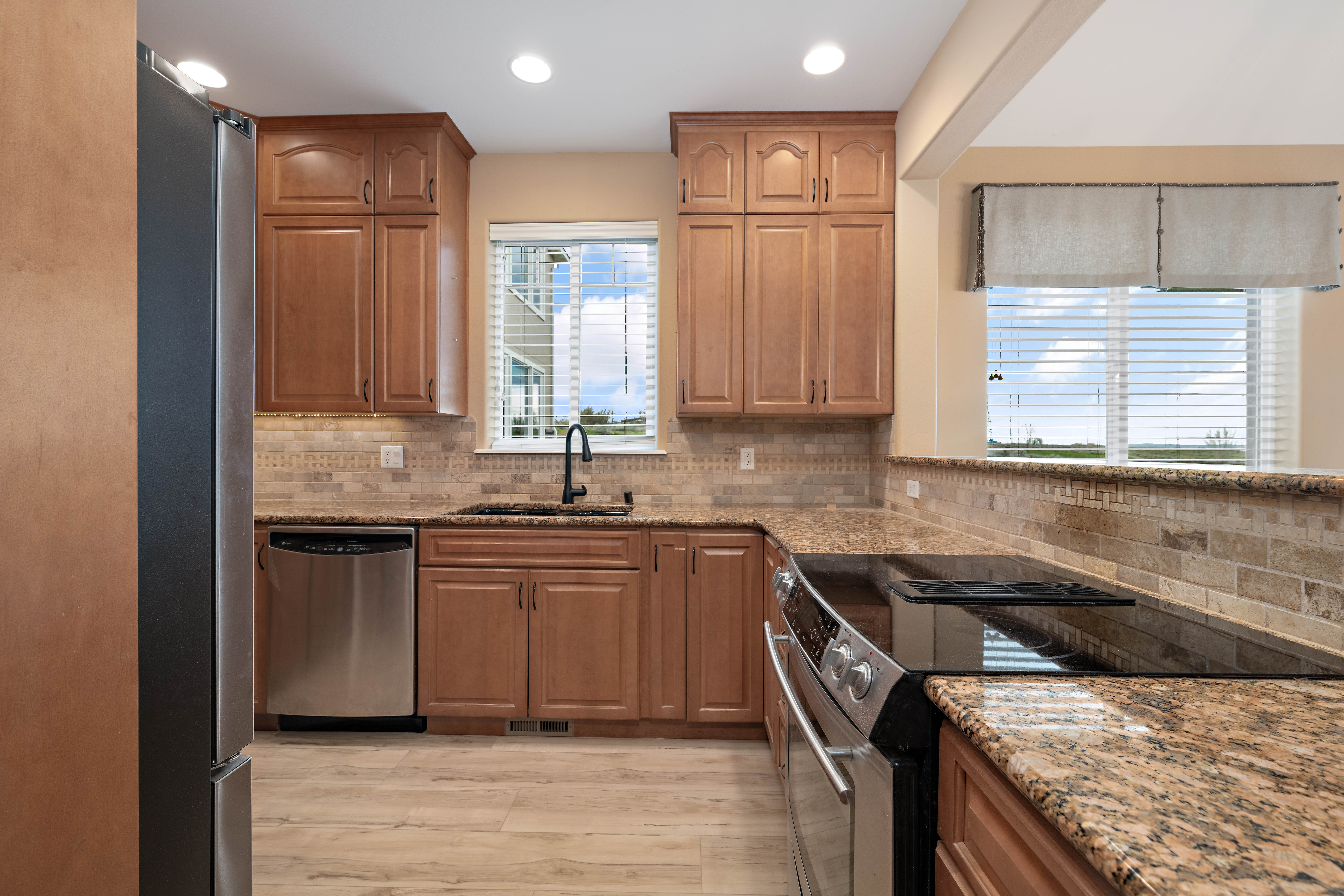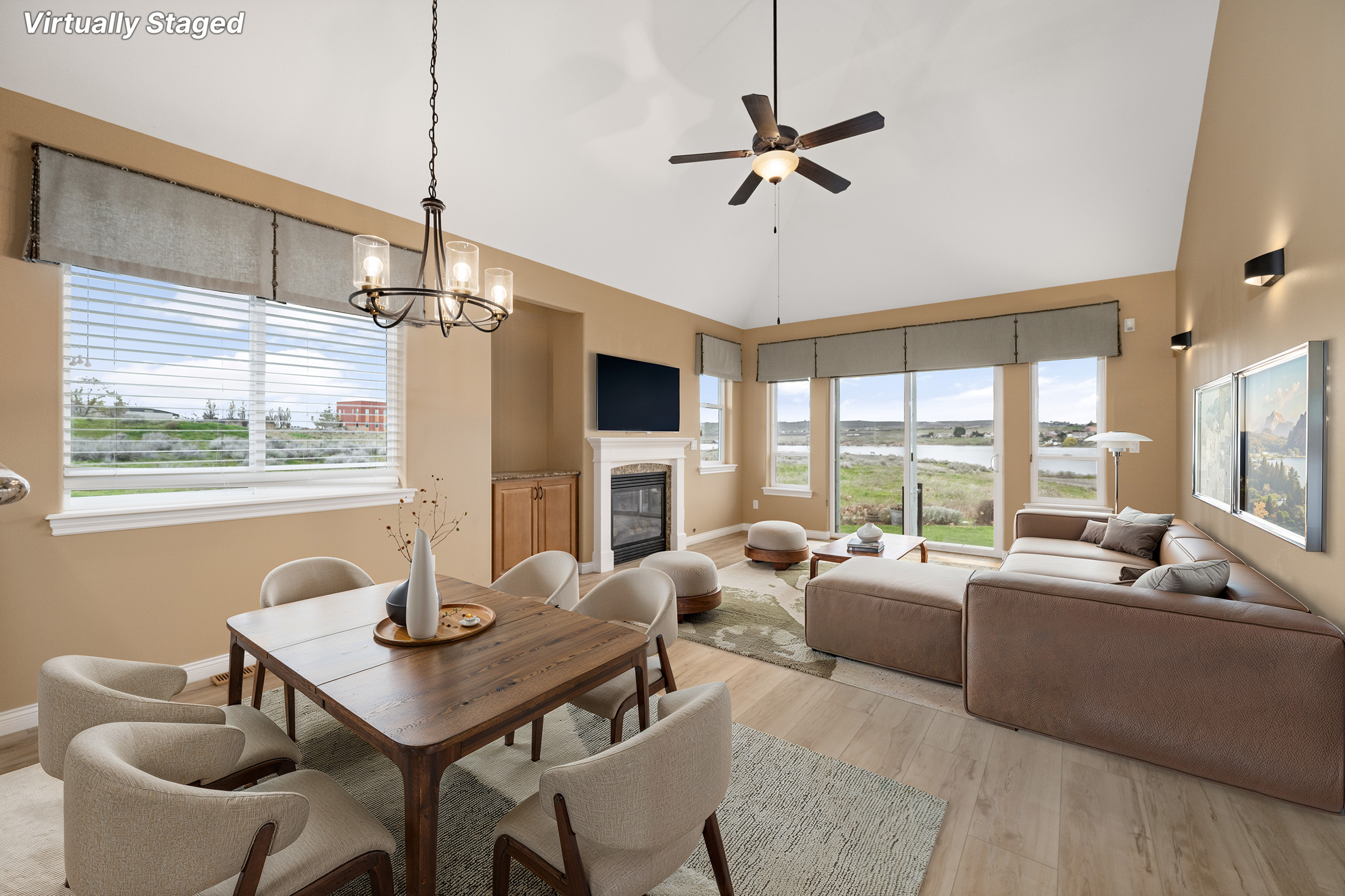 Beautifully positioned riverfront townhome with views of the Columbia River right in your backyard, offering 4 bedrooms, 3baths, and 2,396 square feet of thoughtfully designed living space that blends comfort, function, and scenery. The main level features a spacious primary suite designed for everyday ease, complete with a walk in closet, soaking tub, and tiled shower, creating a private retreat to unwind. The open concept living areas are filled with natural light and perfectly positioned to capture the river views, making both daily living and entertaining feel elevated. Upstairs you will find three additional generously sized bedrooms, a full bath, and a versatile bonus area that can easily serve as a second living space, home office, or guest retreat. Updated LVP flooring runs throughout the home with no carpet anywhere, offering both style and easy maintenance, while granite countertops, stainless steel appliances, and elegant wrought iron stair details bring a timeless, upscale feel throughout. Step outside and enjoy direct access to your own walking path along the river, where morning coffee, evening sunsets, and peaceful waterfront living become part of your everyday routine. Complete with a two car garage and ideally located near schools, shopping, dining, and more, this home offers a rare opportunity to enjoy low maintenance living with beautiful river views.