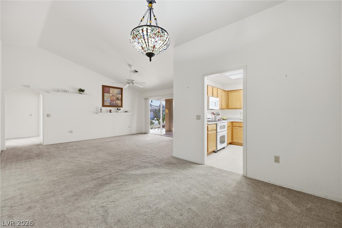 Sun City Summerlin's Award-Winning 55+ Community & Golf offers every amenity you can dream of. This popular Sandalwood model is situated on an oversized corner lot, boasting tasteful desert landscaping w/mature trees, bushes & decorative rock, without the high maintenance. 2 Bed, 1.75 bath & versatile flex room perfect for a home office or hobby space. Double door entry leads inside to an open living room w/vaulted ceilings & a slider leading to a large covered patio. The spacious kitchen is a chef's delight w/a garden window, breakfast nook, a plethora of tile counter space & ample cabinetry & tall pantry w/roll-out drawers. All appliances stay including the gas range w/double oven, washer, dryer & refrigerator. The formal dining area sits adjacent to the living room & kitchen perfect for entertaining. The primary bedroom is large with an ensuite bath & walk-in closet. While relaxing on your front or back covered patios you will experience quail, rabbits, lizards & a variety of birds.
