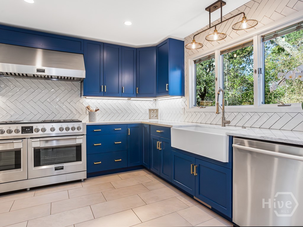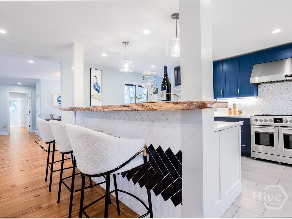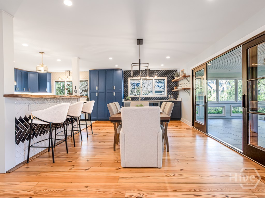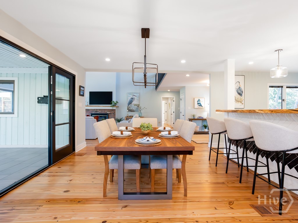 Double lot premium, move-in ready Landings home recently remodeled by Josh Waters Building & Design. The residence sits on over a half-acre of John Glenn landscaped property with quiet views of #2 Terrapin Point tee box & lagoon. A Monaco paved driveway circles the entry to an art deco homesite surrounded by ancient live oaks. The floorplan features heart pine floors throughout a renovated main level with new kitchen & wet bar, laundry room, powder room, guest bedroom with full size bath + an oversized primary suite with its own ensuite bathroom. Kitchen highlights include ceiling height backsplash tile, 48 Fulgor gas range, warming oven, Monogram refrigerator, marble & red oak tops & custom cabinetry; ensuite highlights include walk-in steam shower, standalone tub, Marsh brand double vanity and walk-in closet with quartzite topped island. 2 additional ensuite bedrooms upstairs complete the floor plan. A sunroom and 2 Timbertech laced porches (covered & non) extend hospitality space with views. All major home maintenance (roof, HVAC, 2 tankless gas water heaters, encapsulated crawlspace, paint) and bonuses (landscape lighting, irrigation, well) are new. Within the gated Landings community, the location provides daily lifestyle opportunities: 5 minute golf cart ride to Palmetto club for dining & club sports or to Delegal Marina and the iconic Intercoastal Waterways.
