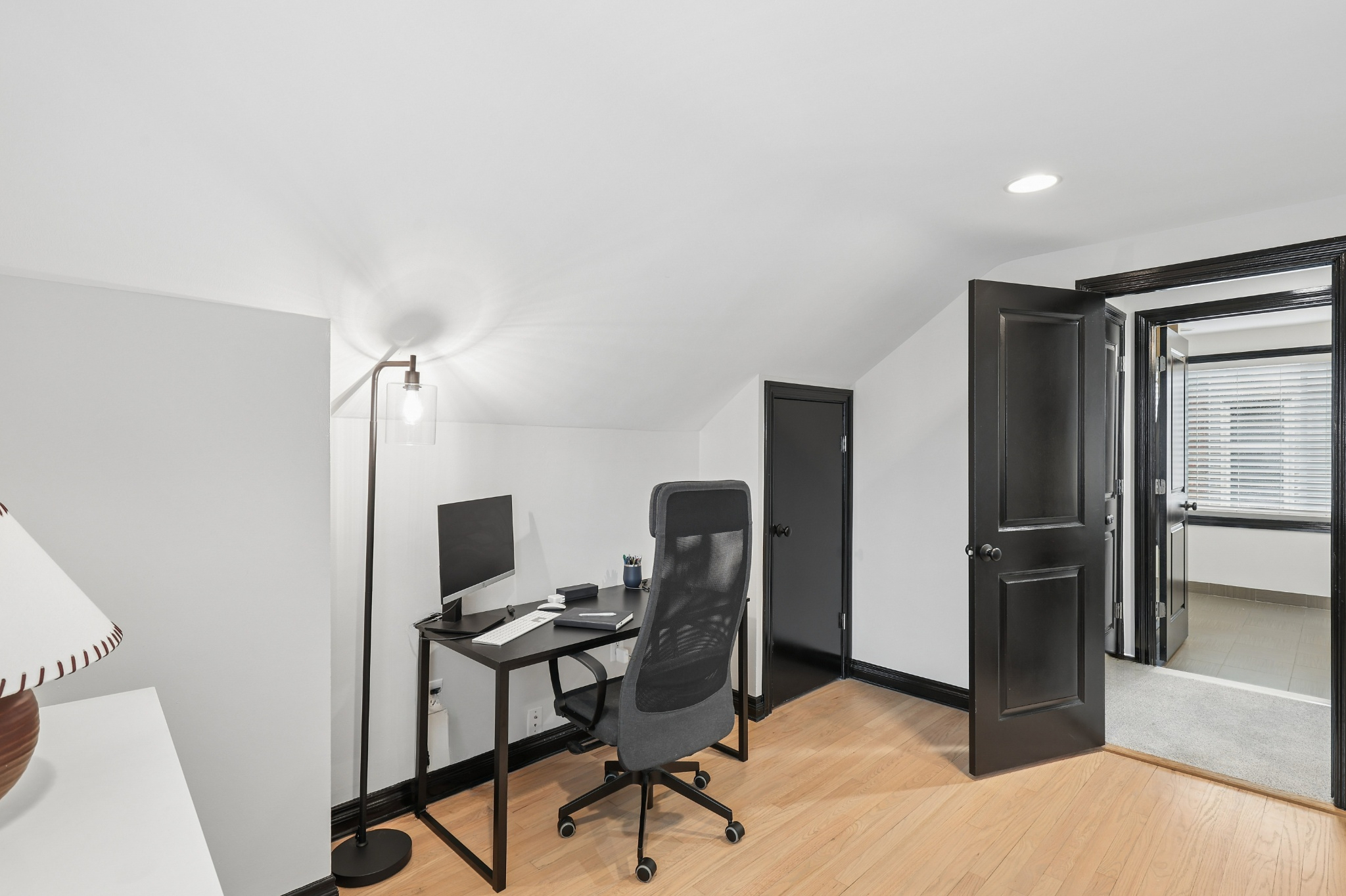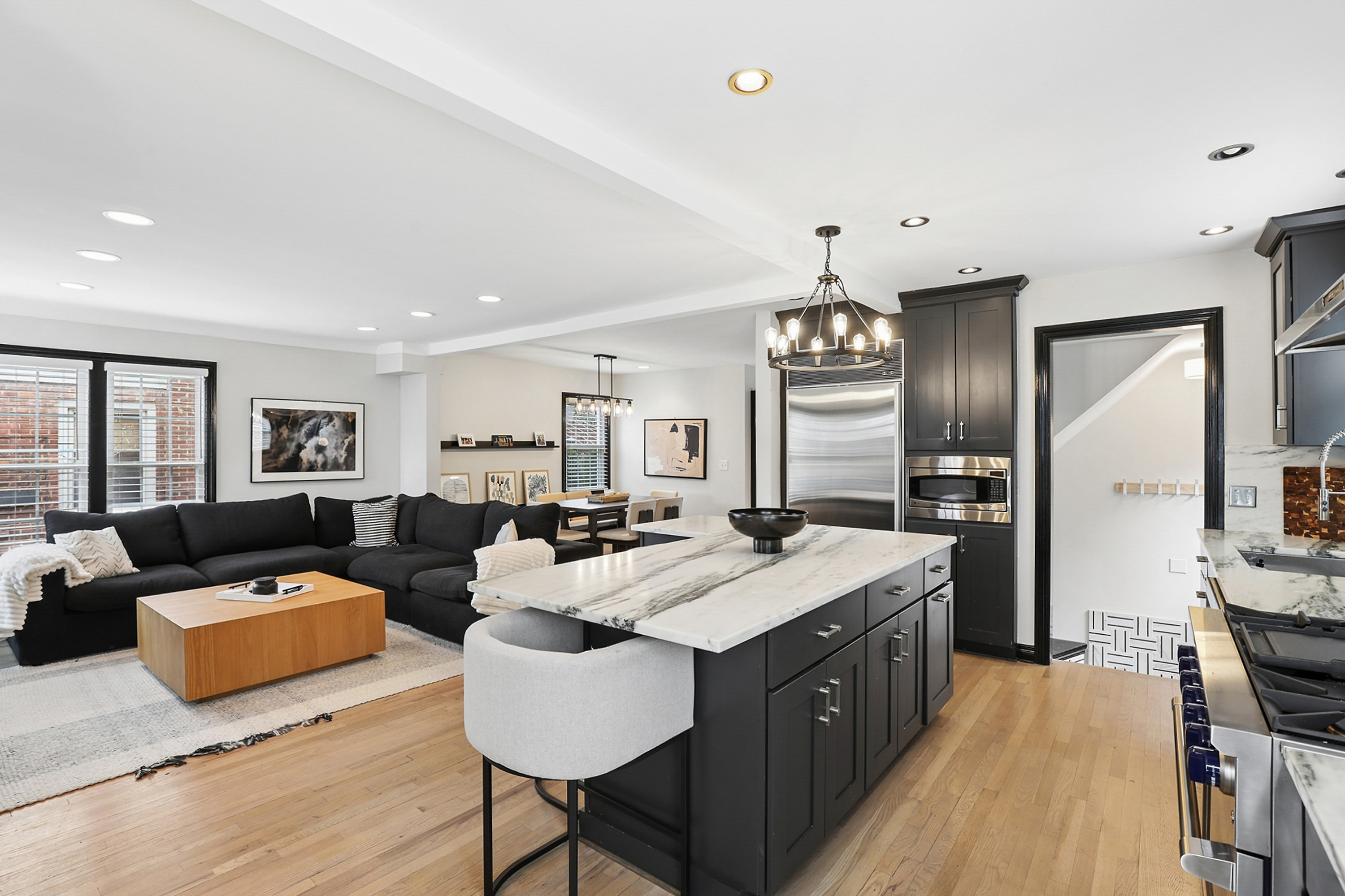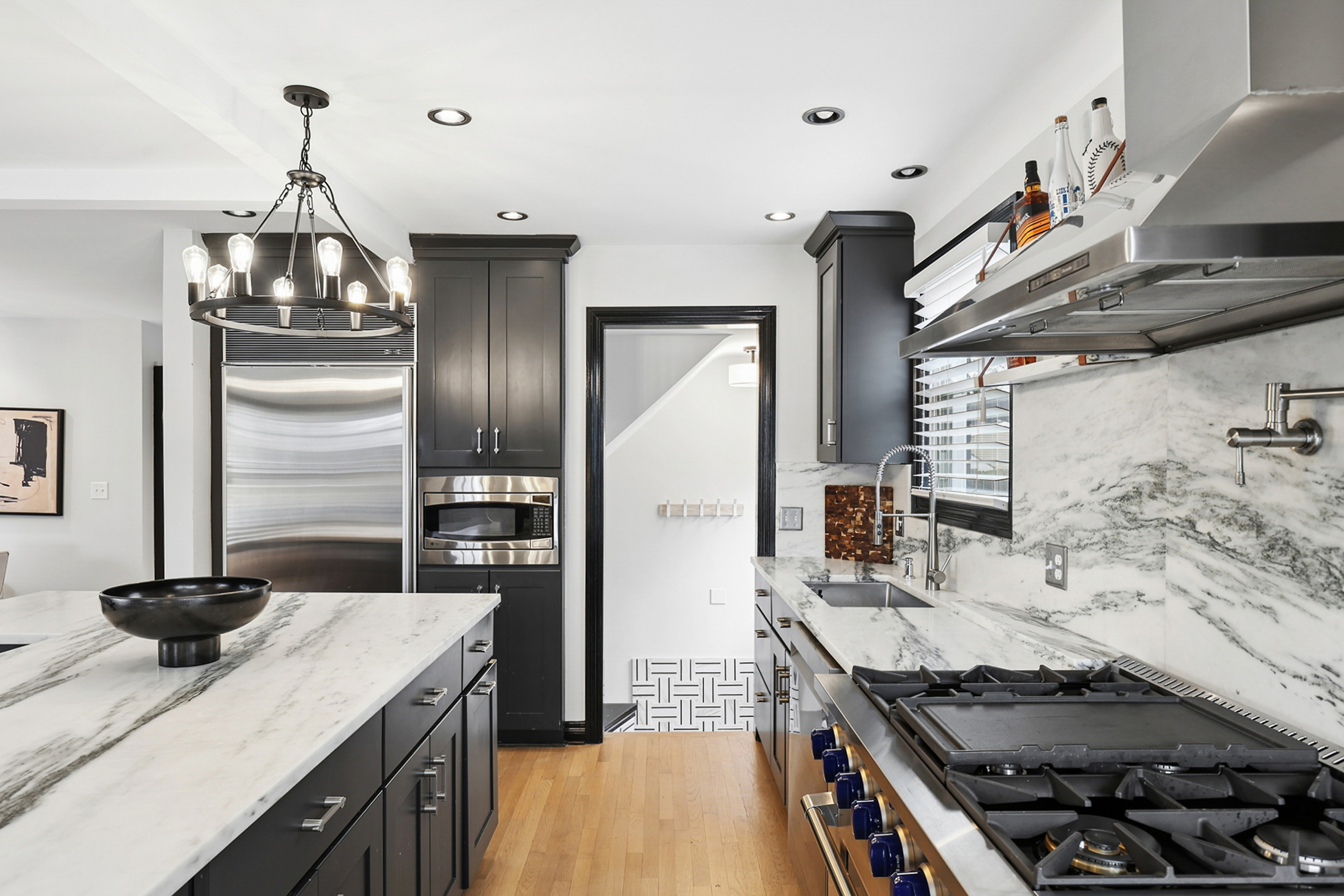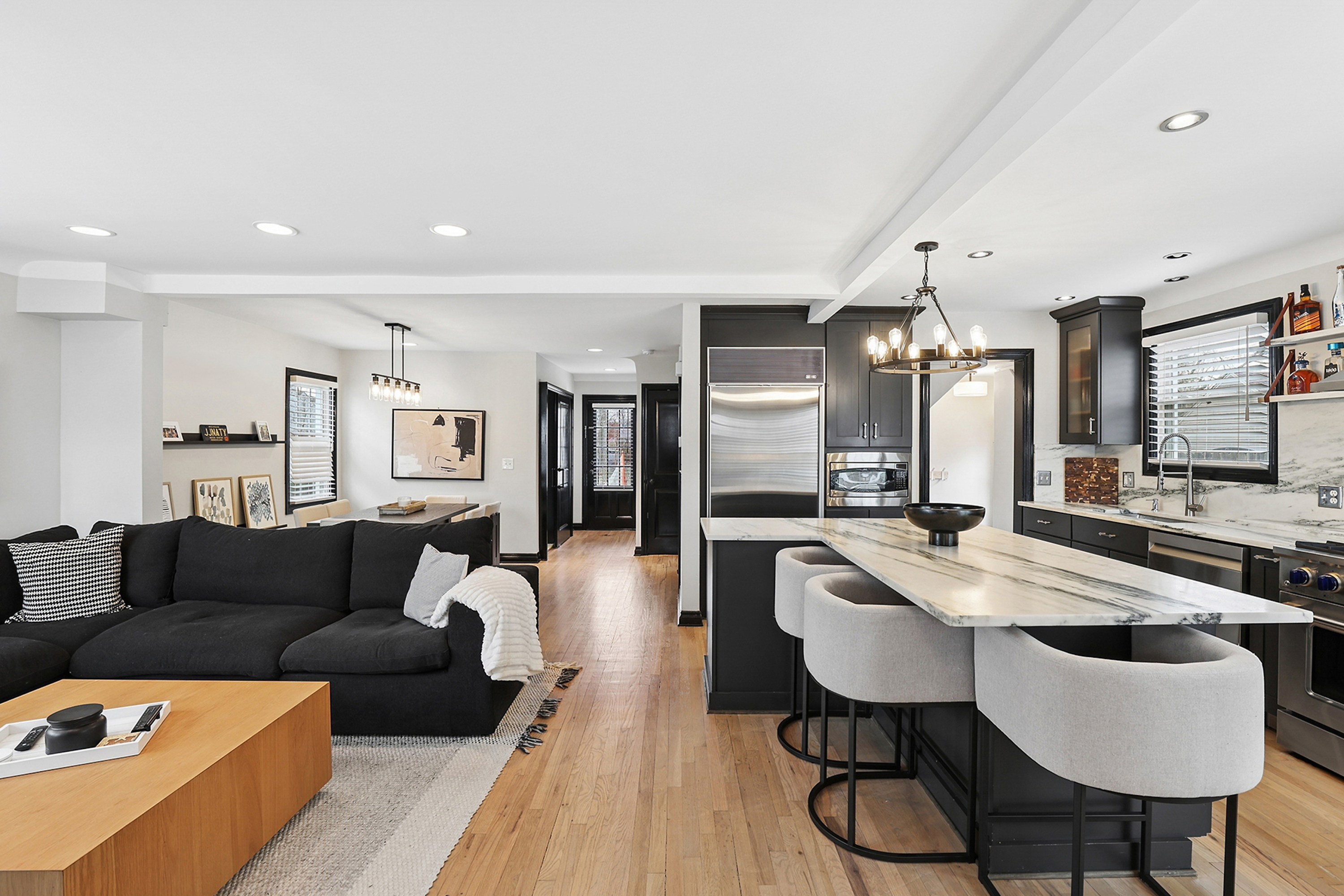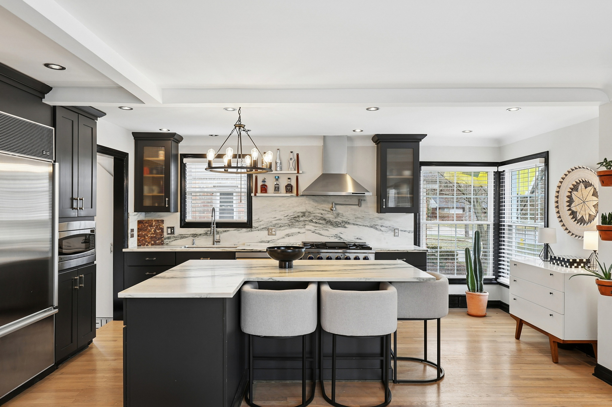 Completely renovated in 2025, this 1,537 sq ft home offers 3 bedrooms and 2 full bathrooms with a thoughtfully designed open floor plan. Clean architectural lines and a cohesive material palette create a modern, functional living environment. The kitchen is anchored by a stone island, complemented by a full-height stone backsplash and dark-toned cabinetry that adds contrast and depth. A Sub-Zero refrigerator is paired with a new range and dishwasher, while the island provides generous seating and prep space. The kitchen flows directly into the main living and dining areas, creating a natural, connected layout enhanced by hardwood flooring and updated lighting throughout. Upstairs, a renovated loft has been converted into two well-proportioned bedrooms, maximizing flexibility and usable space. Both of the bathrooms in the home have been fully updated with refined, contemporary finishes. The newly finished basement has been fully waterproofed, offering additional space for recreation, workspace, or fitness. Additional improvements include select window replacements and new blinds throughout. Located within walking distance to Pierce Elementary, nearby parks, and Birmingham Country Club, this home offers a well-balanced combination of location, design, and thoughtful updates.