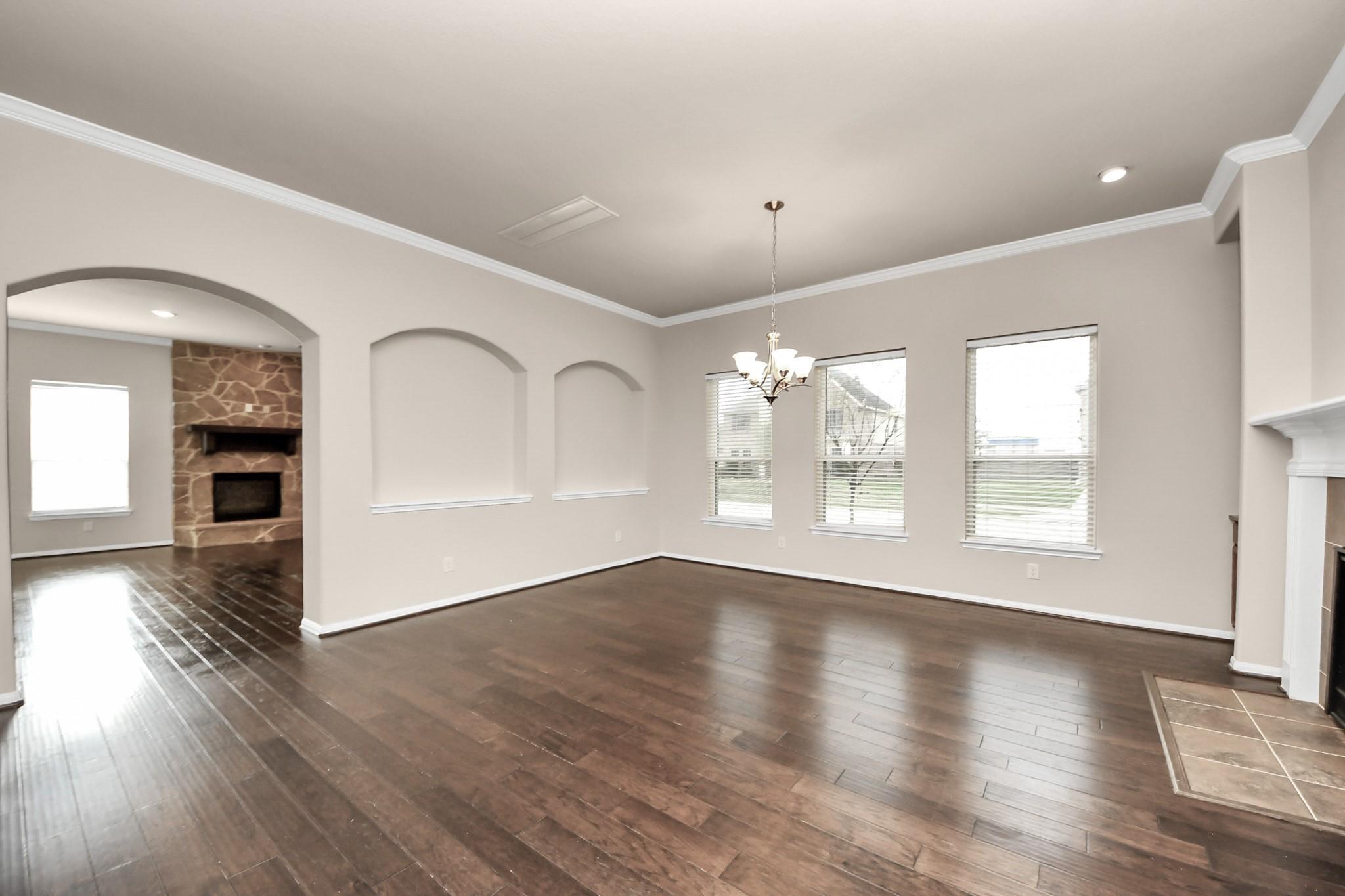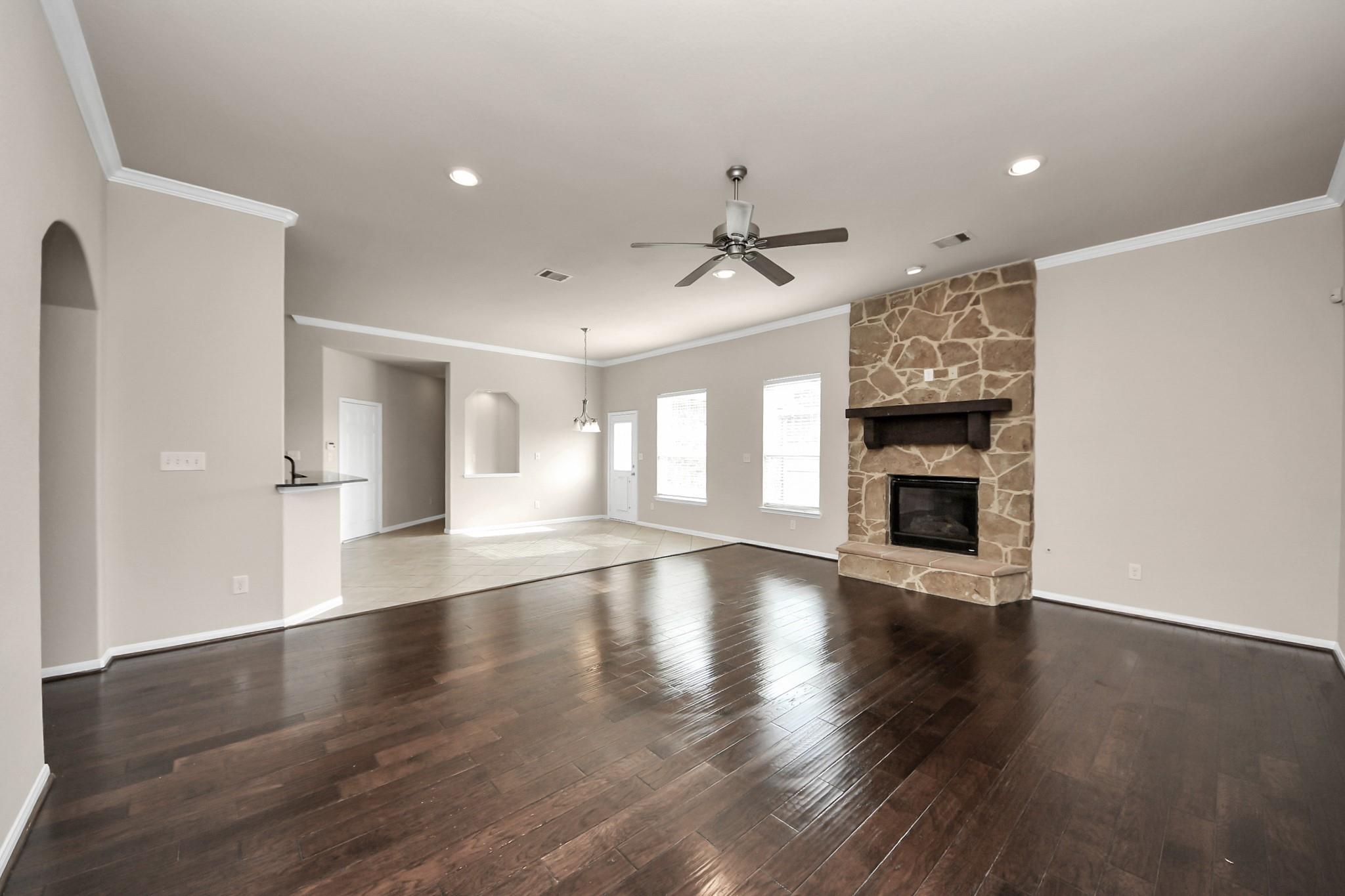 Welcome to this expansive 5-bedroom, 3-bathroom home located in the highly desirable Wilburn Ranch subdivision on the north side of I-10 in Mont Belvieu. Offering one of the largest floor plans in the area, this home showcases fresh interior paint, new carpet, and rich hardwood flooring throughout the main level. Three fireplaces on the first floor create inviting and cozy living spaces. The kitchen is designed for both function and style, featuring stainless steel appliances, double ovens, a new microwave, and a refrigerator for added convenience. The spacious primary suite provides a relaxing retreat, while generously sized secondary bedrooms and an oversized game room offer flexibility for any lifestyle. A 3-car garage and prime corner lot add to the home's appeal, providing ample space for parking, outdoor enjoyment, and entertaining. This property blends comfort, space, and location - an excellent opportunity you won't want to miss.