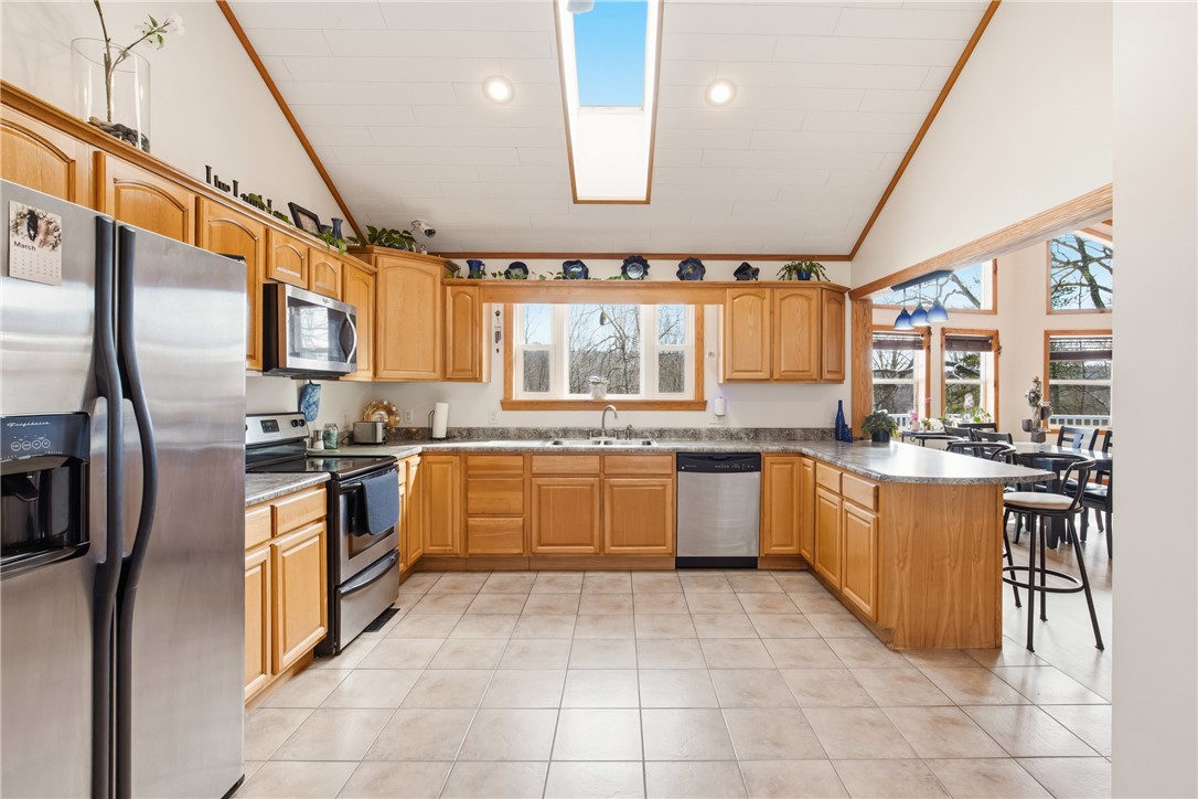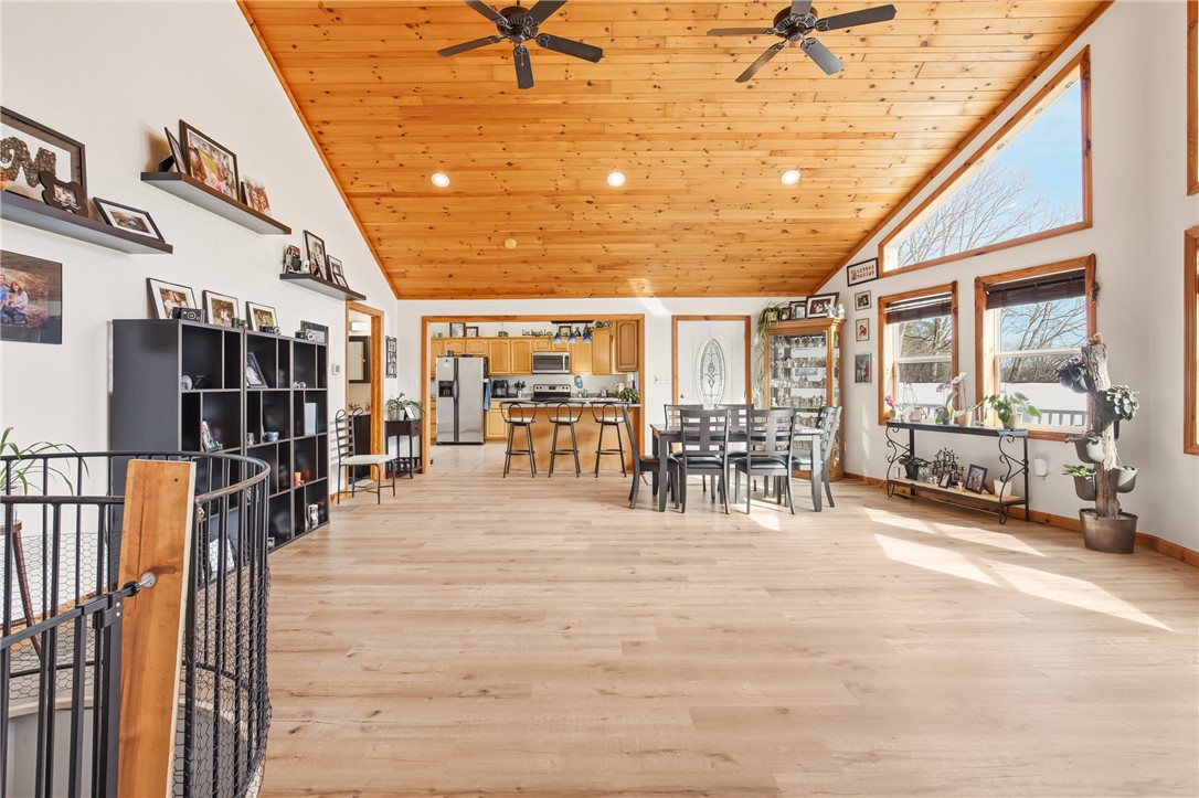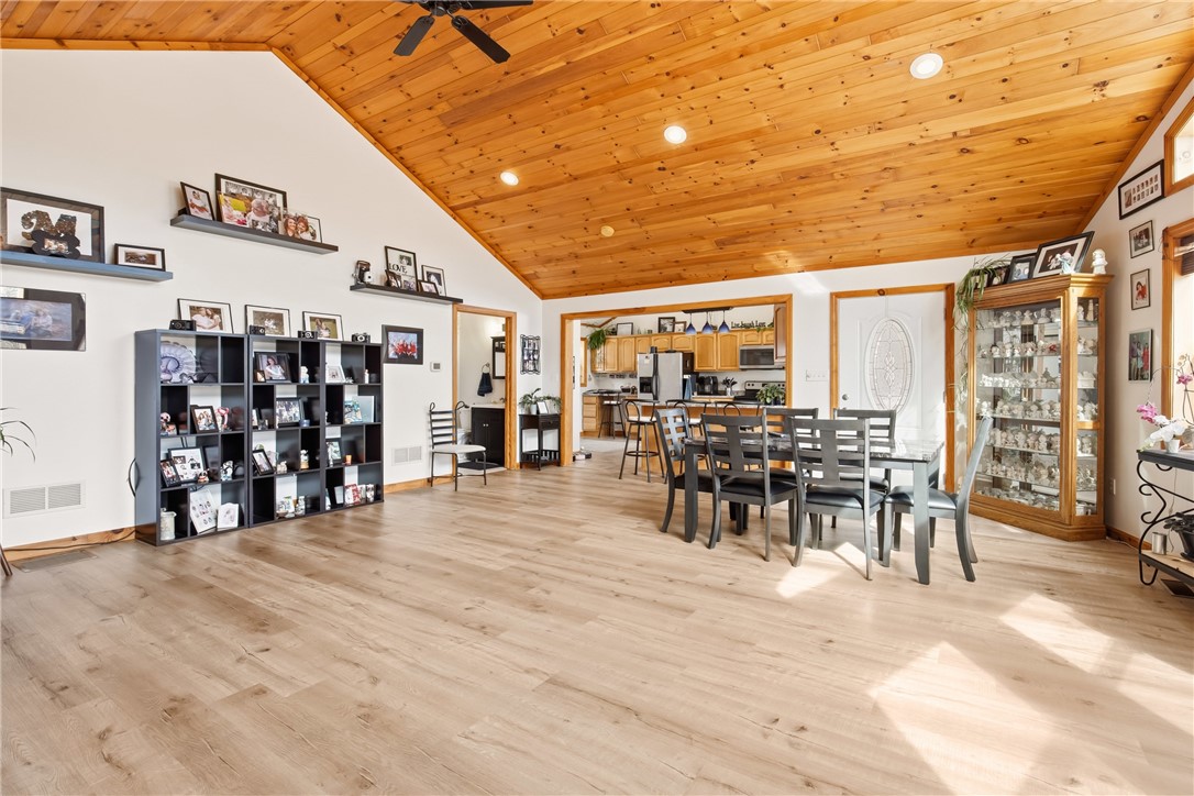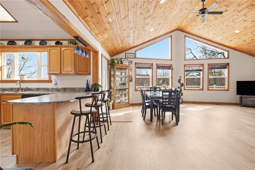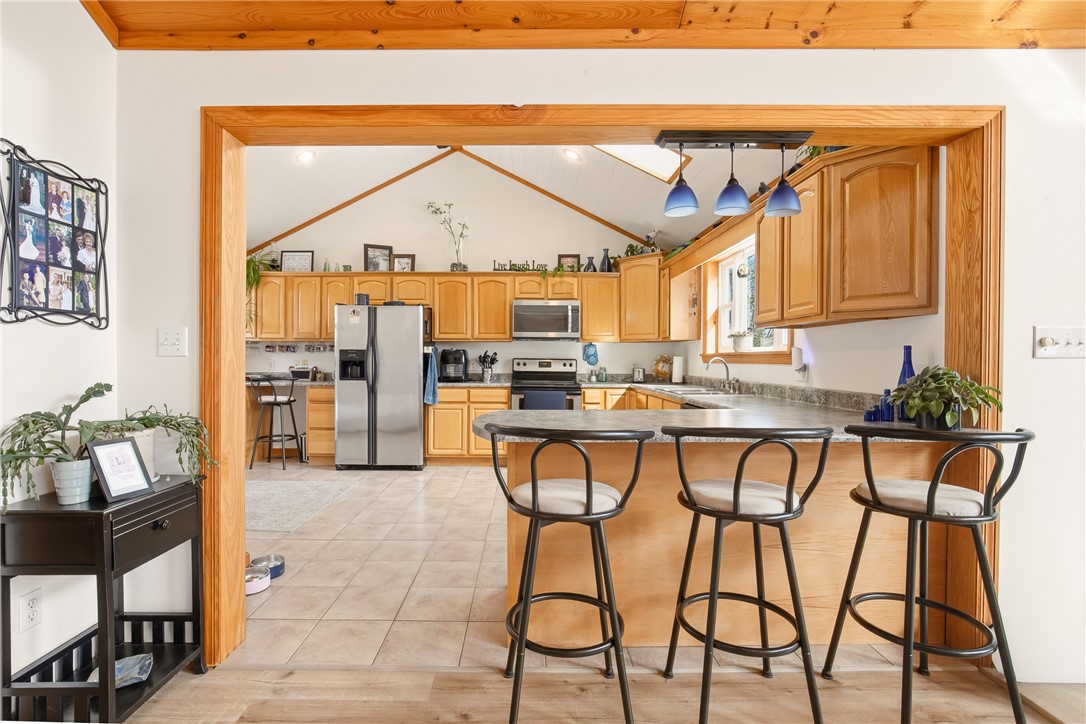 Custom constructed in 2007 on nearly an acre in the Lake Stonycreek corridor, this 3-bedroom home delivers the kind of layout that just works. The main level features an open floor plan, a great room with oversized lake-view windows, a well-appointed kitchen, and natural light throughout. The large primary suite offers a walk-in closet with the added convenience of main floor laundry. The wraparound front deck is exactly where you'll want to be with your morning coffee. Walk right out to a private backyard with an above-ground pool. The walkout lower level opens the home all over again with a family room, custom-built bar, two bedrooms, and a half bath. A heated 5-car garage with dedicated workspace plus a standalone storage garage rounds it out. Room for every toy, every tool, every project. Four-season recreation is minutes a way: Lake Stonycreek, Indian Lake, and Mountain Ridge ATV Park, all with town conveniences just down the road.