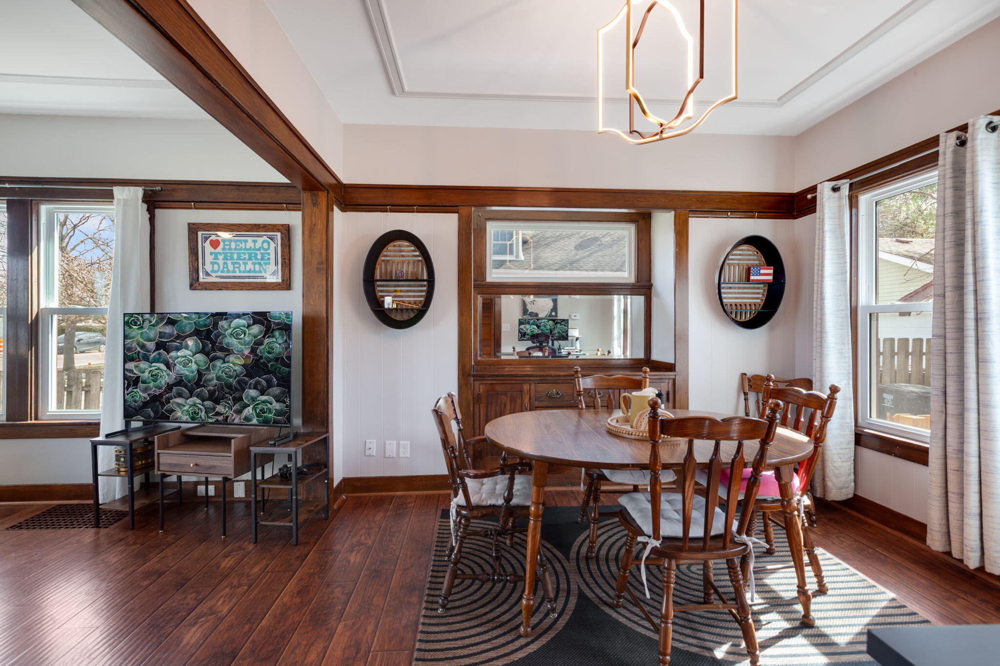 Welcome to this beautifully updated 3-bedroom Farmhouse in the heart of Walworth, just steps from schools, restaurants, and downtown! Entering through the front three-seasons room, elegant French doors lead into a home perfectly blending modern updates with historic charm. The living room, featuring a decorative (non-functional) fireplace, flows into a formal dining room showcasing gorgeous original built-ins. You'll love the bright, open kitchen with its bay window overlooking the backyard, complete with a new wood fence! Upstairs features three generous bedrooms boasting beautiful original woodwork, plus a full bathroom with classic built-in cabinets. With fresh touches complementing its historic soul, this move-in-ready gem is a must-see. Showings begin March 23rd.