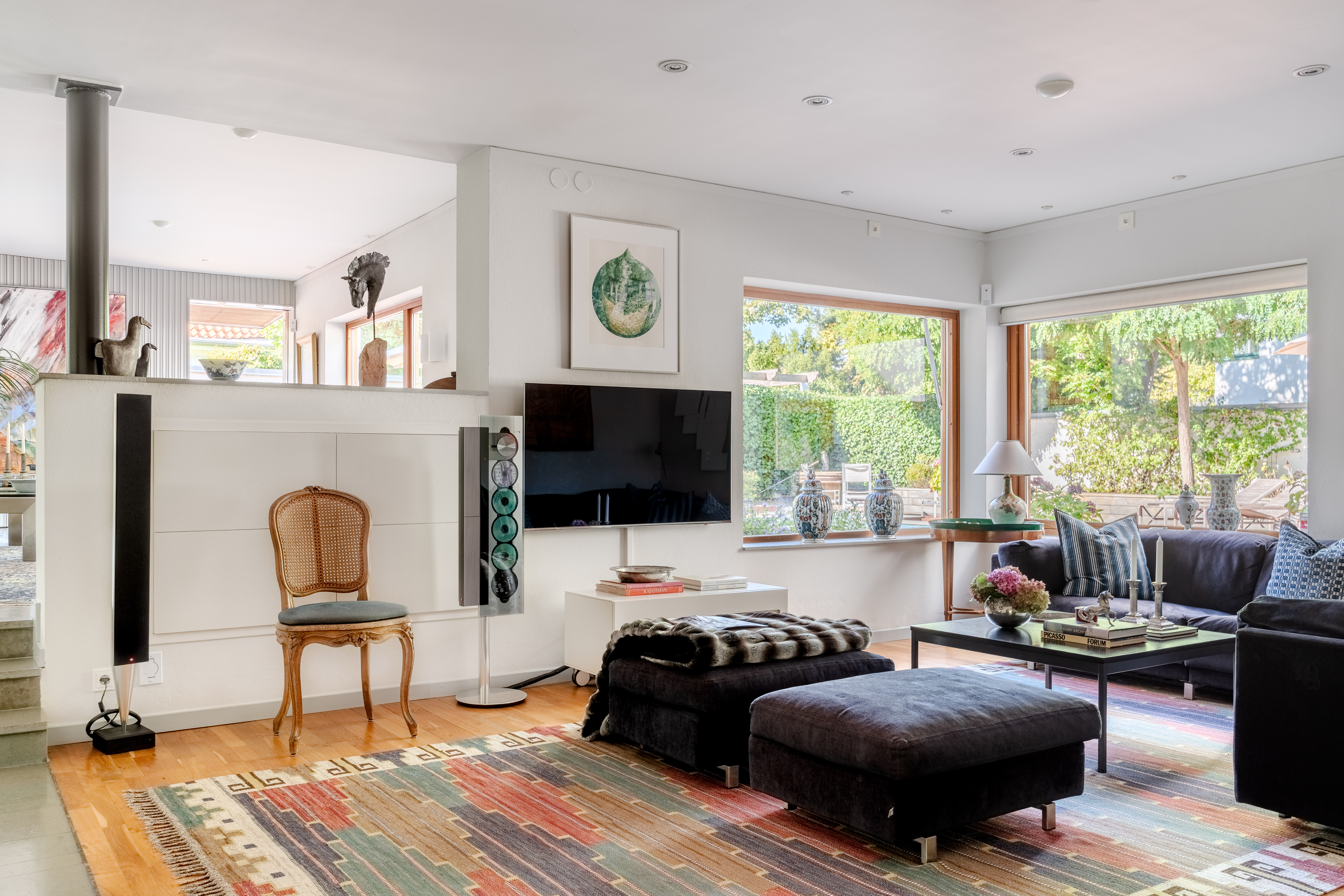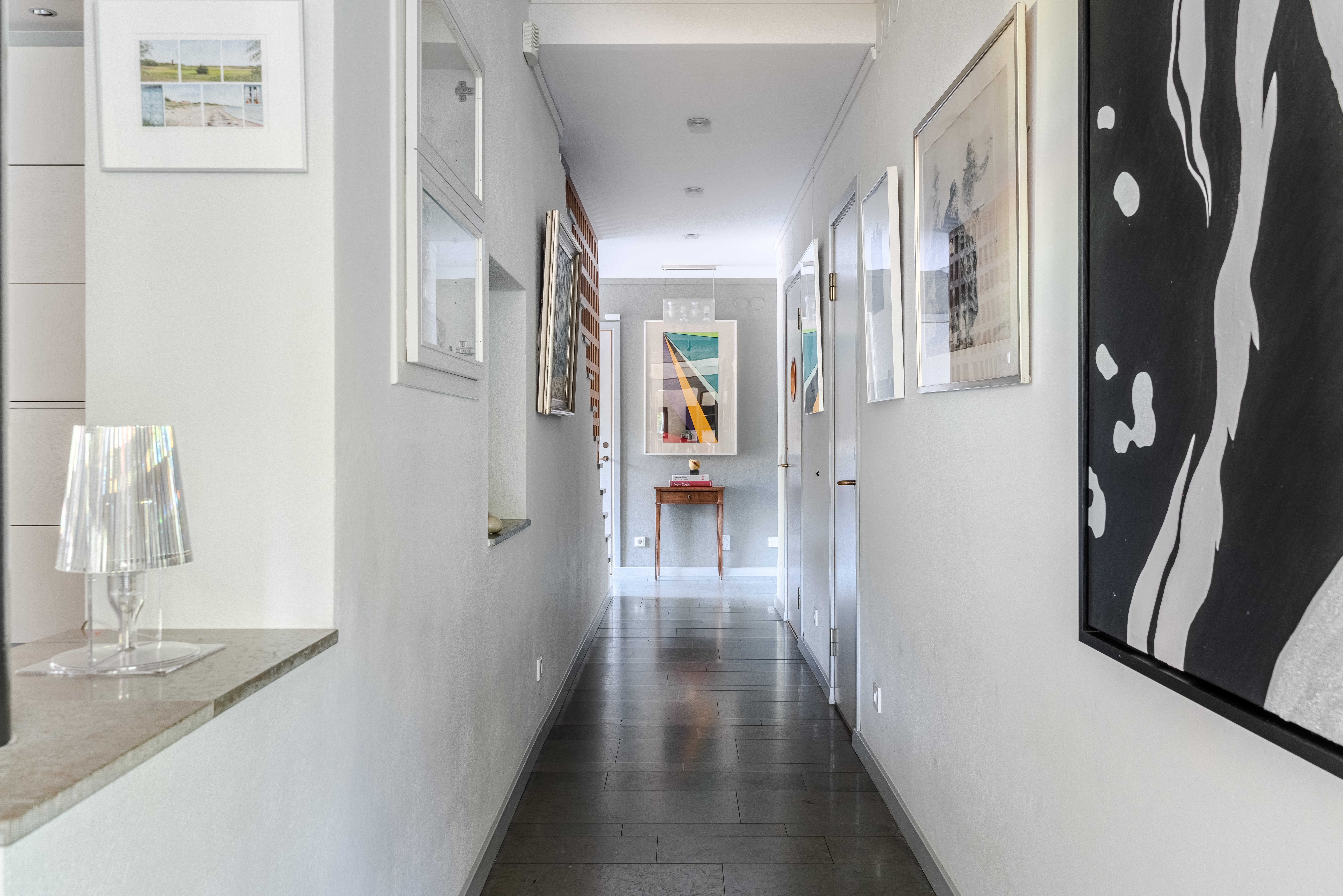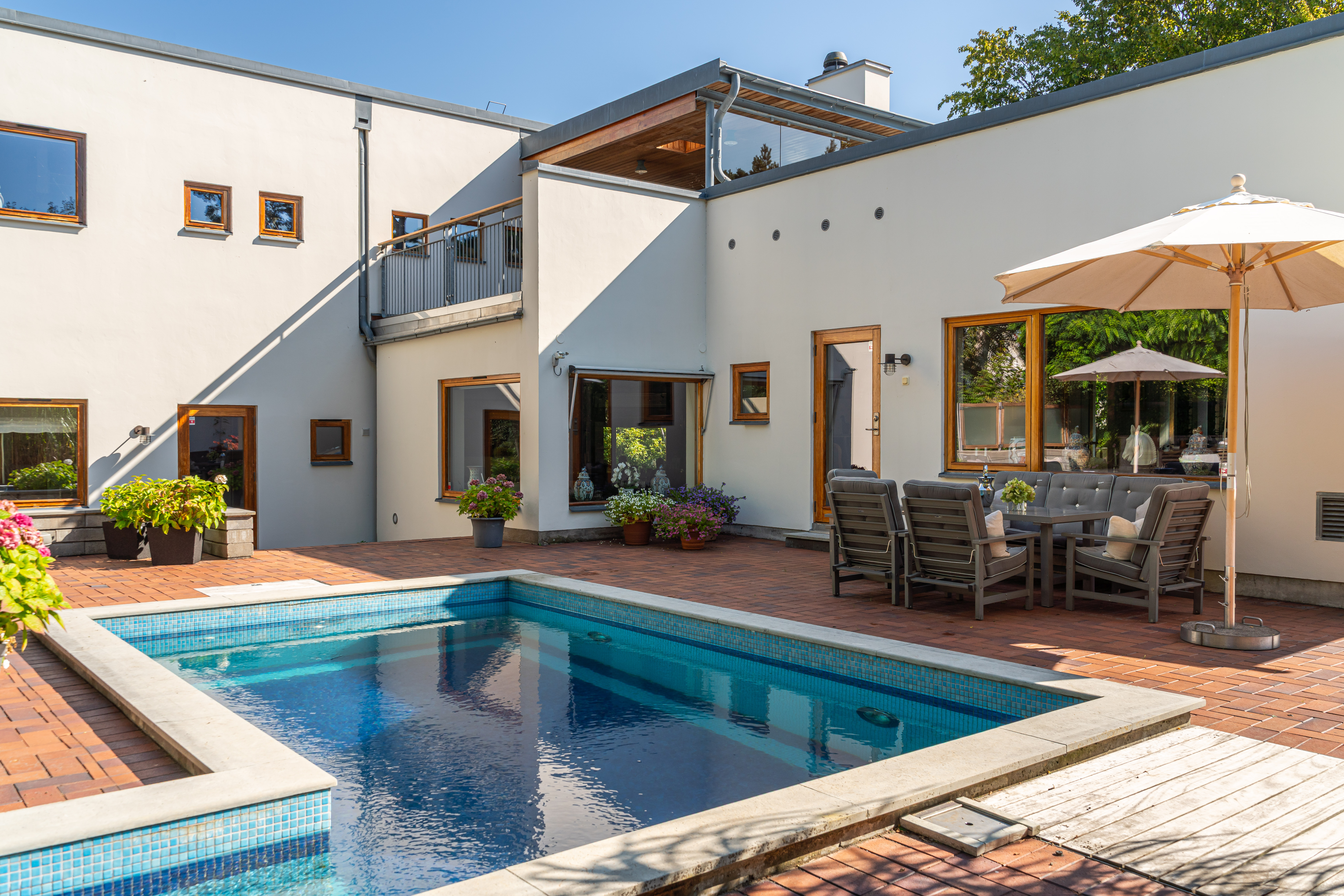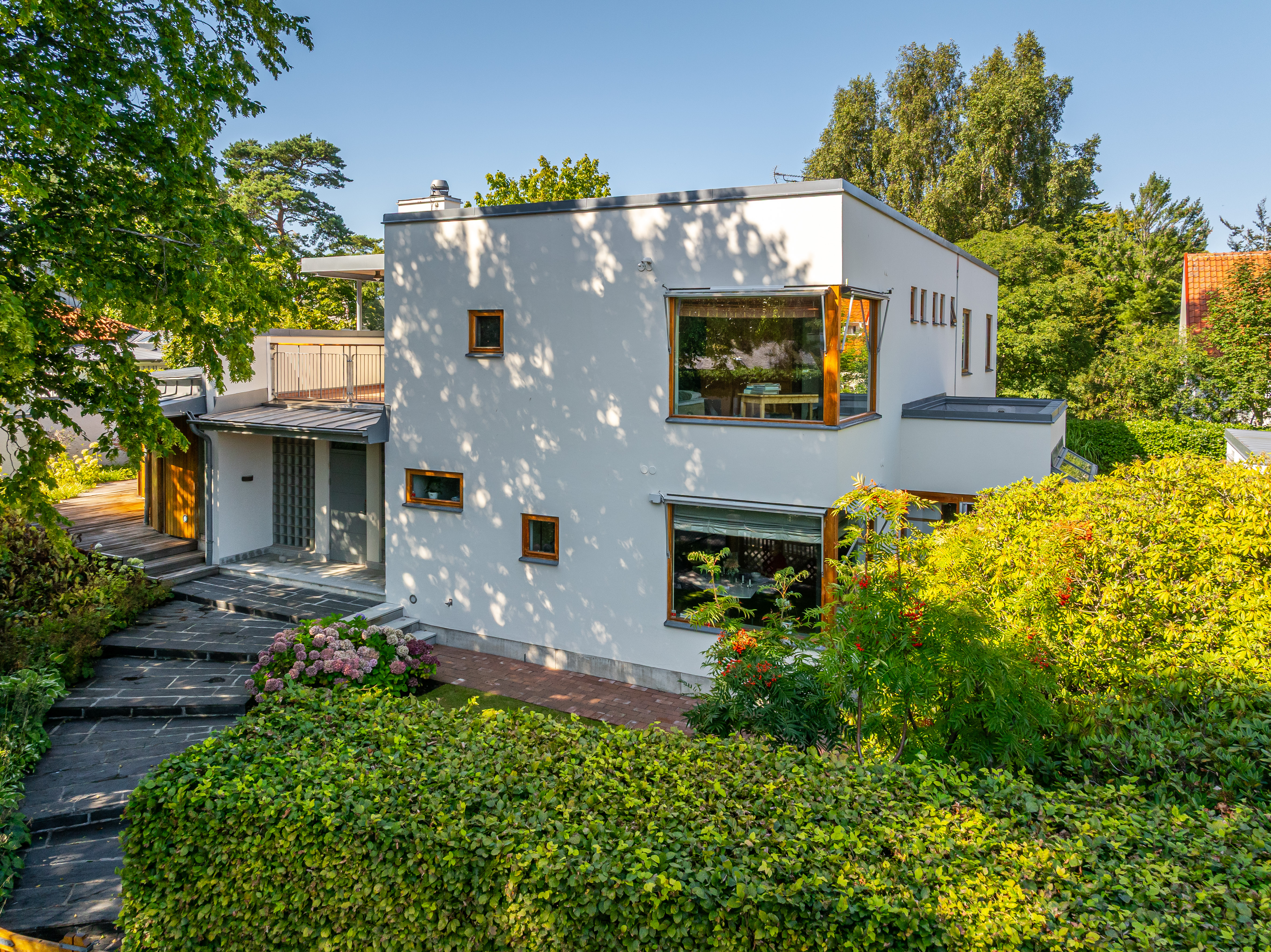 Situated on one of Falsterbo’s most coveted addresses—on Anklamvägen, a distinguished and more private parallel street to Sjögatan—this impressive modern villa stands as a refined example of architecture where the precision of functionalism meets a more humanistic expression. The architect’s brief was to create a home where form and function merge with effortless elegance—where the architecture speaks the same language as the surrounding nature. The undulating façade, timeless materials, and light-filled interior flow give the house a sense of movement, adaptability, and enduring appeal. It is one of Falsterbo’s most characterful examples of Nordic modernism, alongside the functionalist villas of Josef Frank.