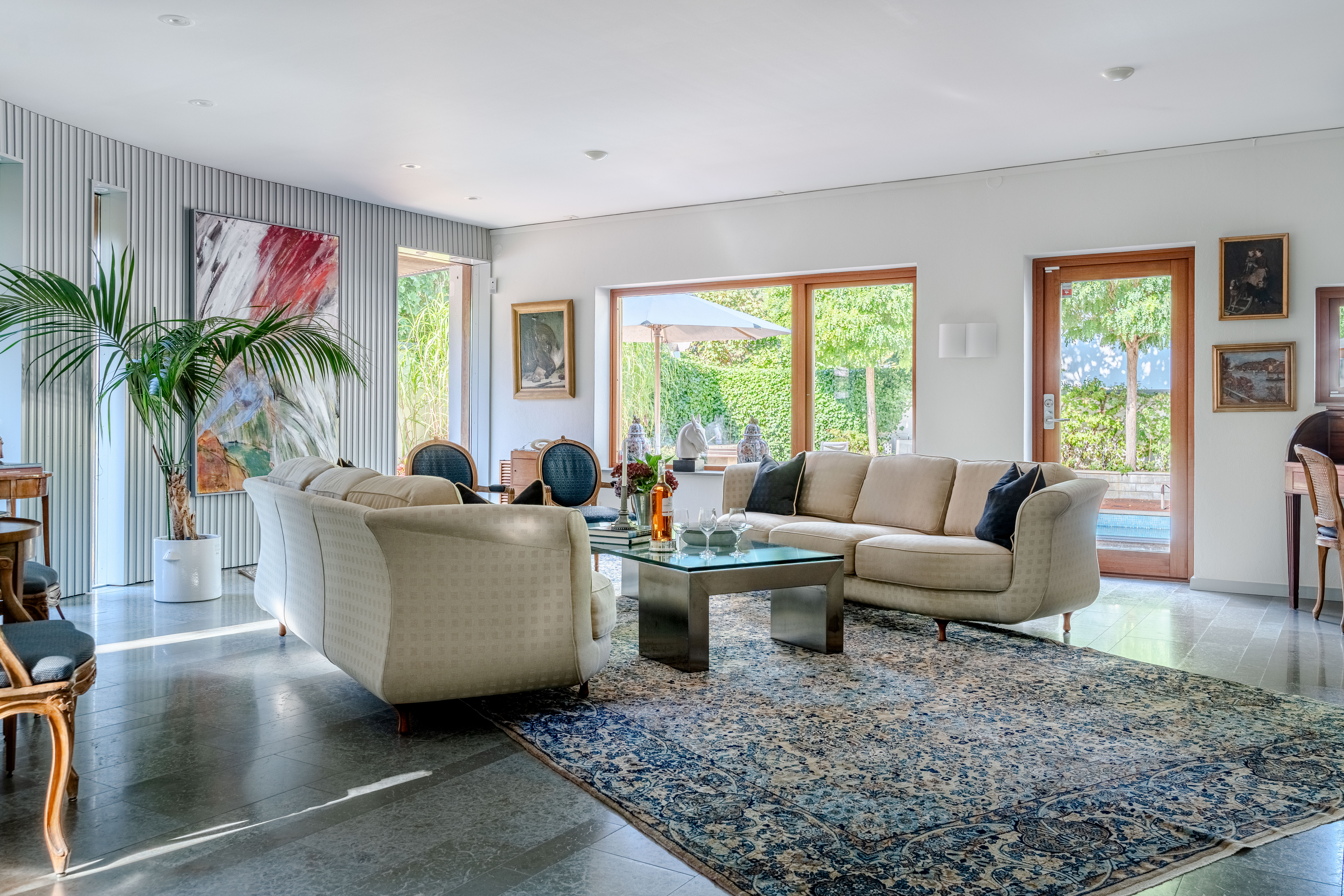 The living areas feel as though they are taken straight from the pages of Architectural Digest , while the pool area evokes the world of Slim Aarons’ iconic photography—“attractive people doing attractive things in attractive places.” A sense of glamour and refinement defines everyday life in this home, yet the simplicity and rawness of its restrained architectural language resonate on a deeper level.