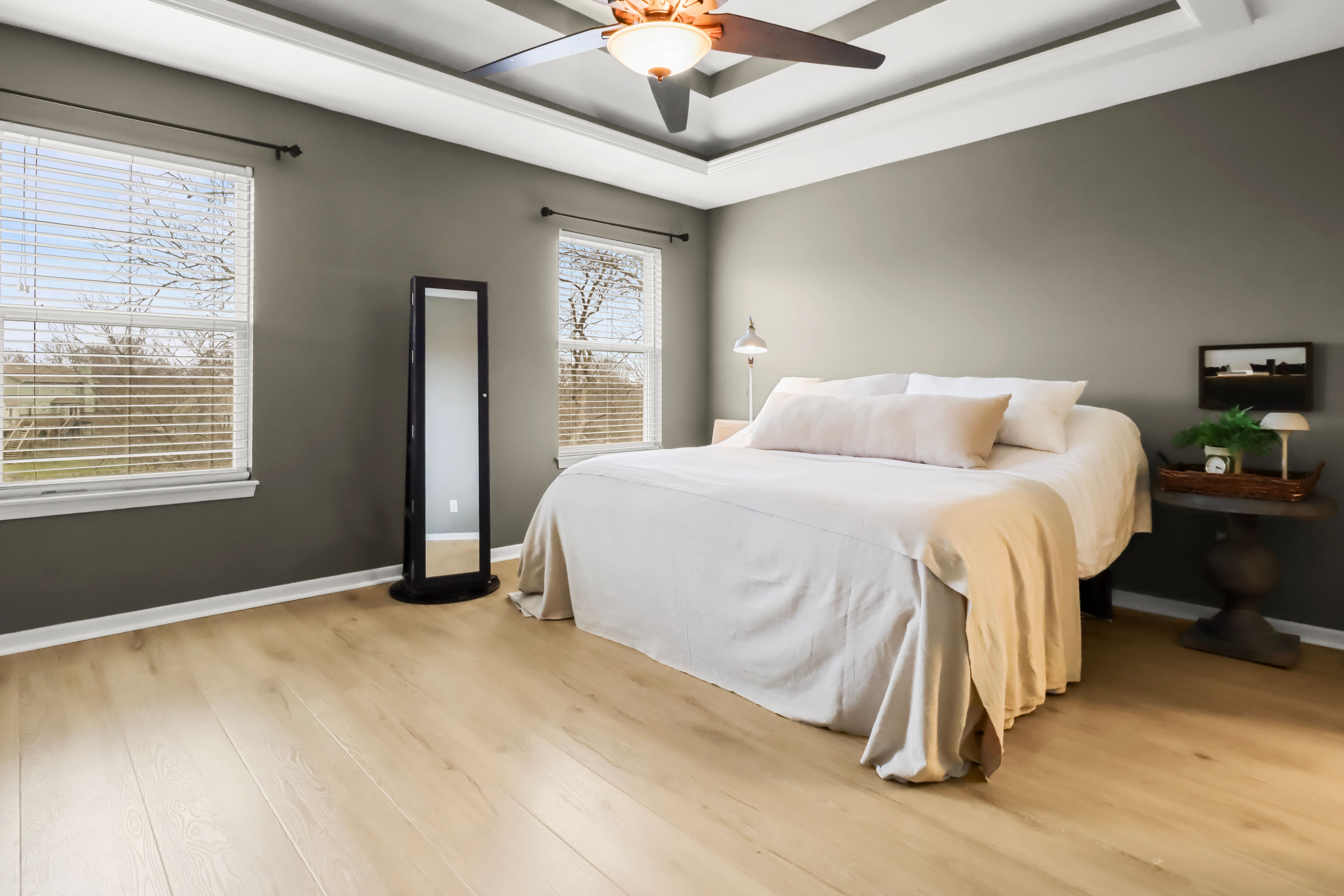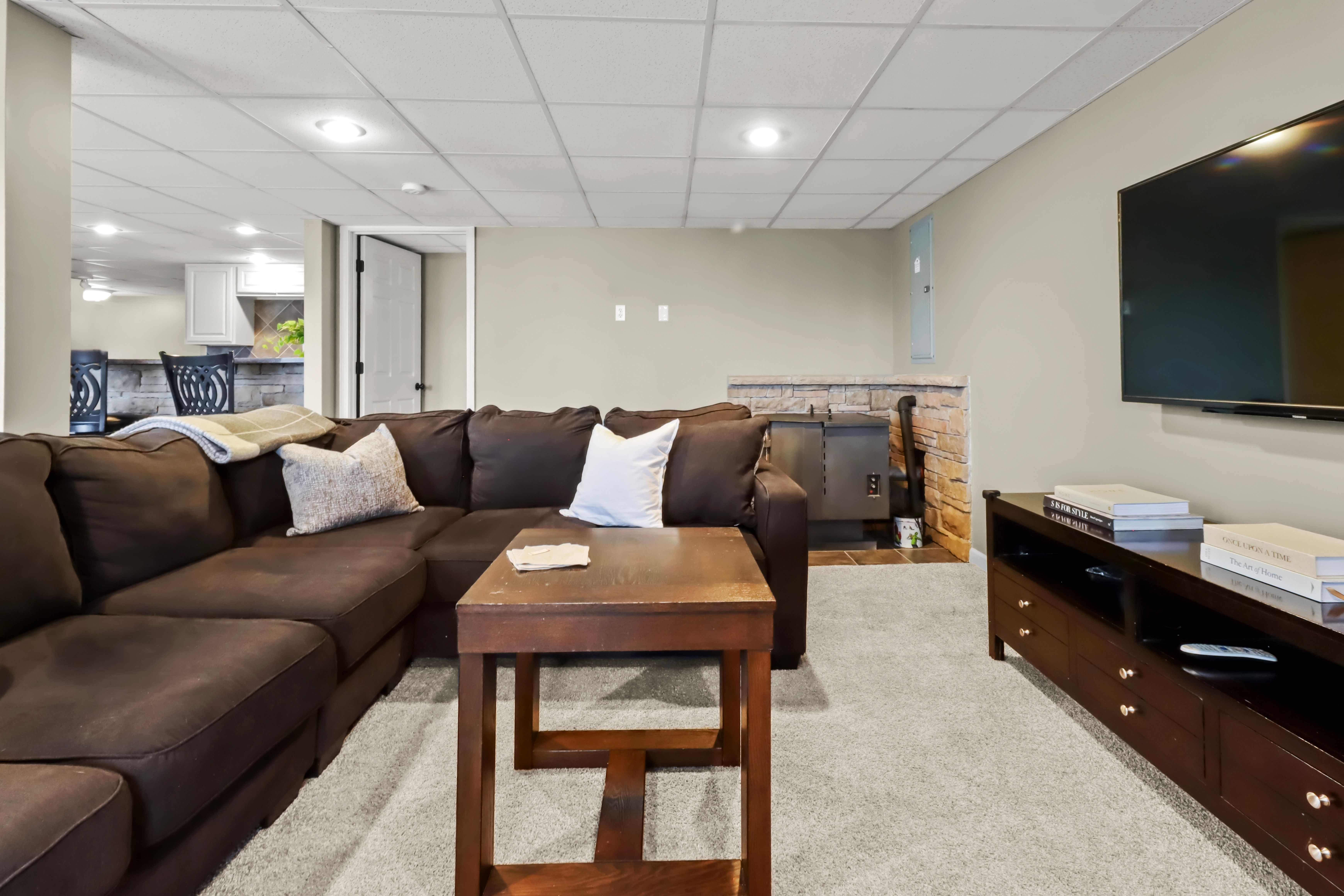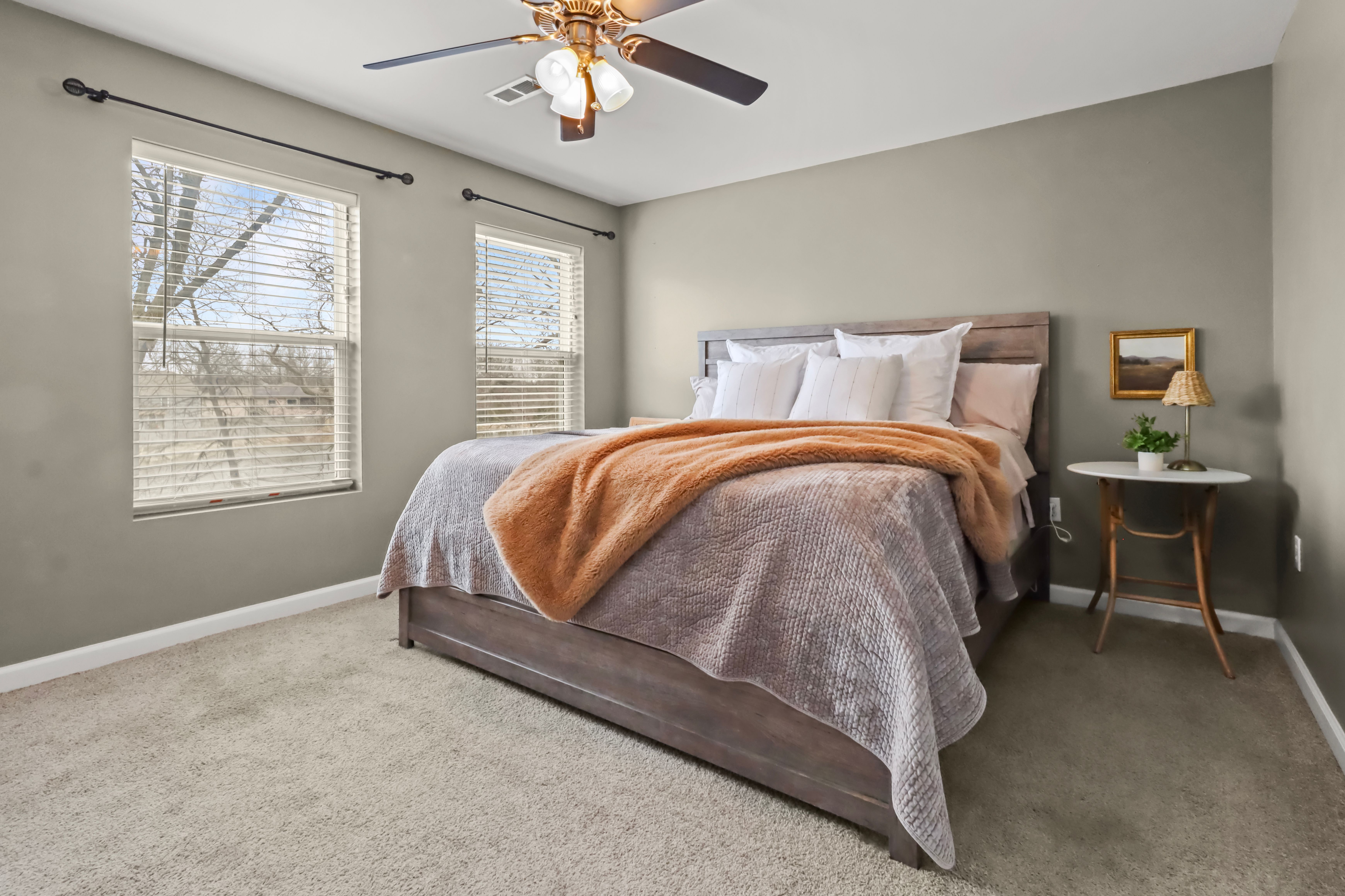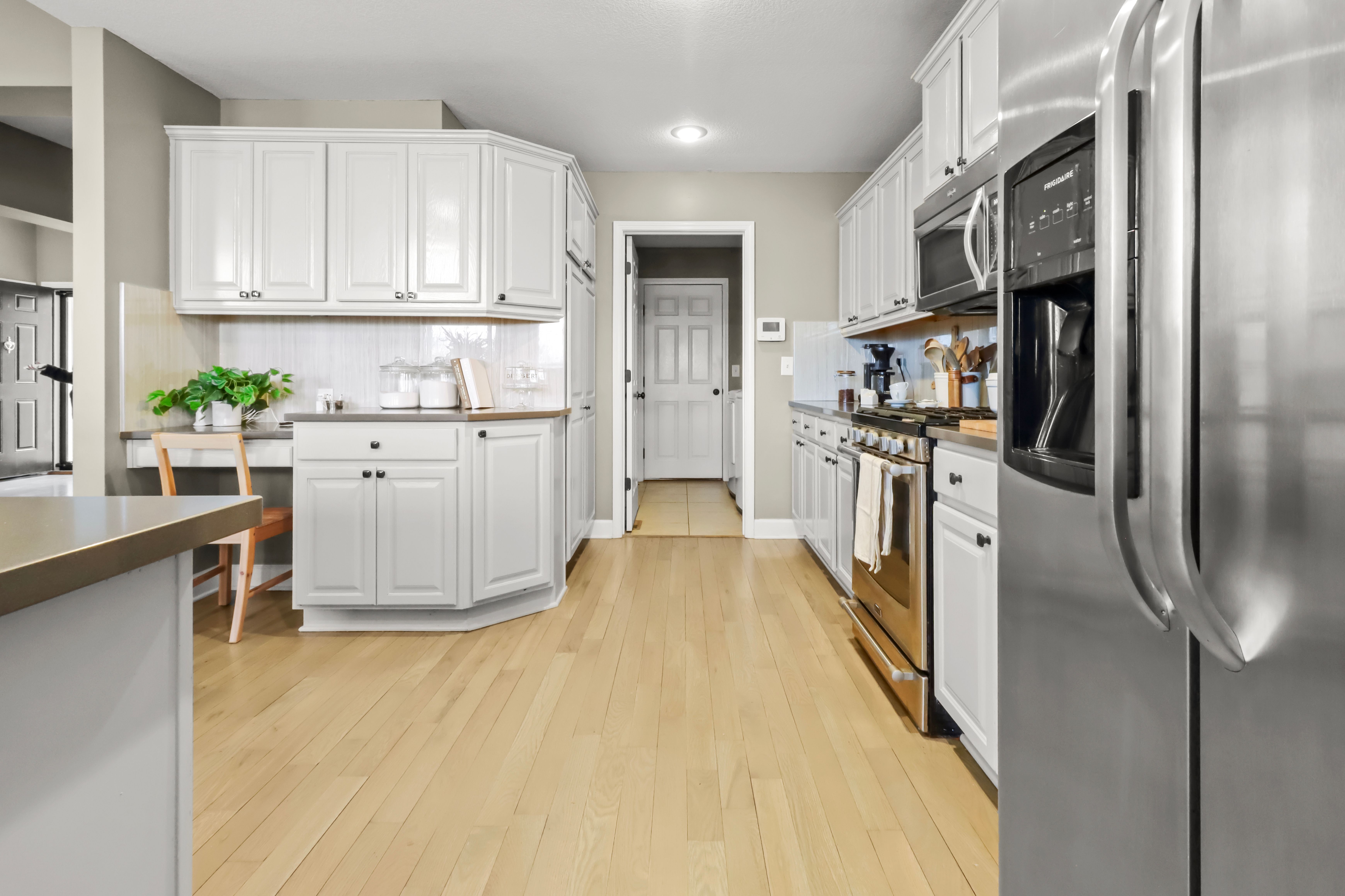 An open, light-filled floor plan welcomes you with a timeless neutral palette, creating a warm yet refined atmosphere throughout. Expansive windows frame serene water views while inviting natural light to pour into the living spaces, enhancing the home’s effortless elegance. The kitchen and all bathrooms are appointed with solid-surface countertops, complemented by tile flooring in each bath and at the wet bar. In the primary suite and lower-level landing, newer wide-plank, wood-look flooring adds a modern touch while offering both durability and ease of living. The walk-out lower level extends the home’s versatility with a spacious recreation room, inviting wet bar, two additional bedrooms, and a flexible bonus space ideal for a home office, fitness studio, or creative retreat. Beyond the home itself, the community offers an equally inviting lifestyle—enjoy access to a neighborhood pool, scenic walking trails, and peaceful pond surroundings that create a sense of connection and calm just outside your door. Thoughtfully updated and truly move-in ready, with a newly installed AC, this home blends comfort, style, and setting—an exceptional opportunity for those seeking both beauty and functionality in a picturesque lakeside environment.